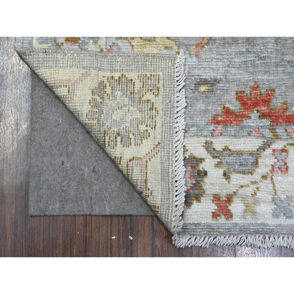 3'x8' Spanish Gray, Vegetable Dyes With Soft Wool Weft, Hand Knotted Angora Oushak, Vibrant And Colorful Rural All Over Motifs Design, Afghan Runner Oriental Rug FWR536760