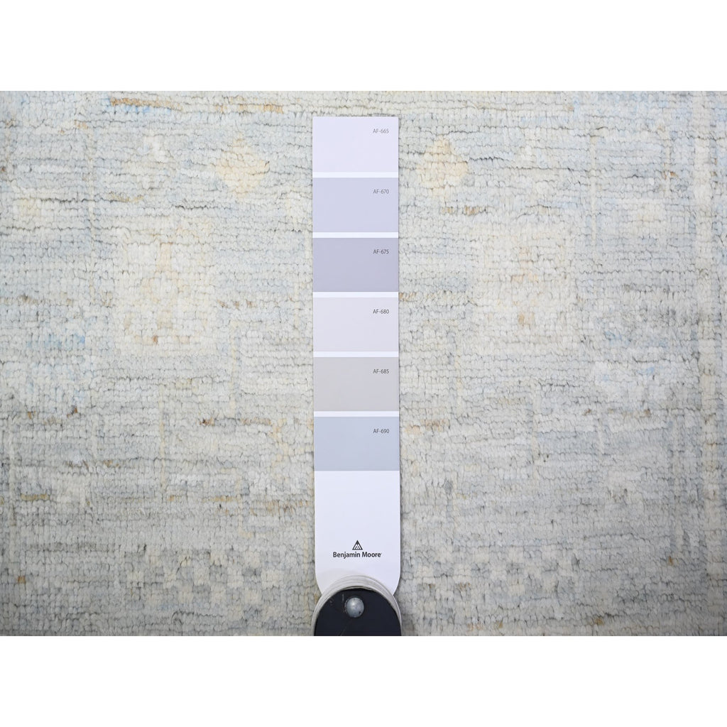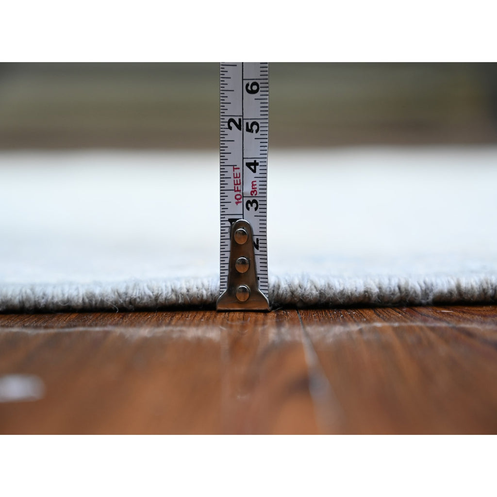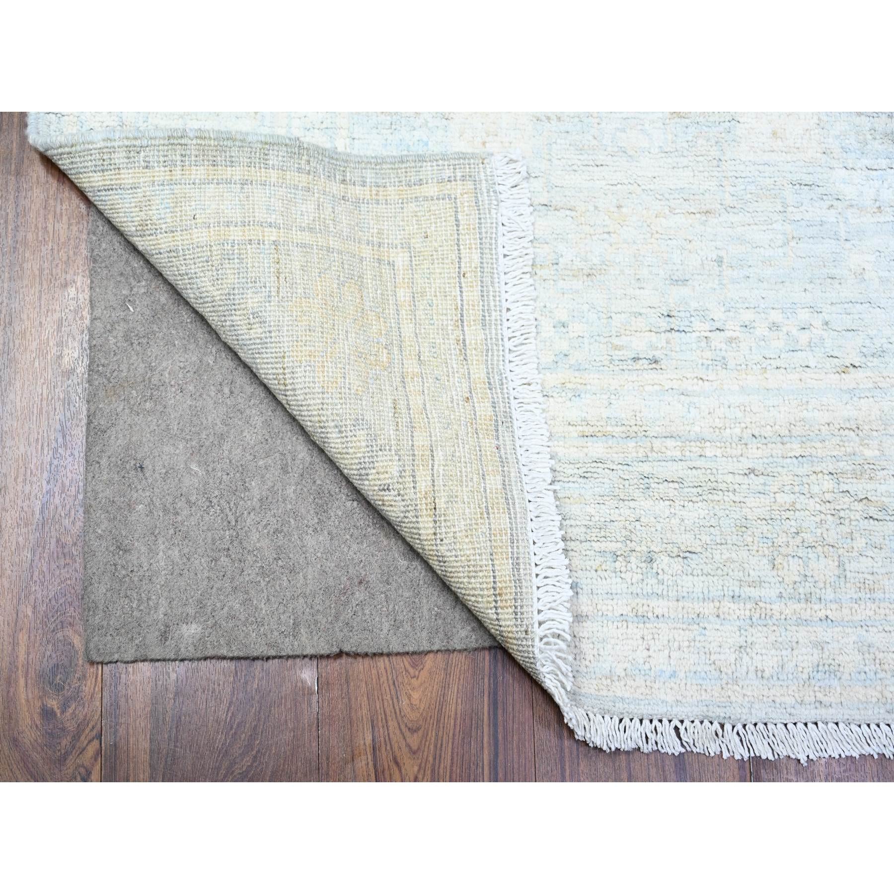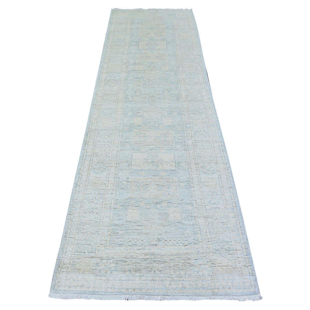 3'x9'10" Glaucous Gray With White Dove, Natural Dyes, Washed Out Peshawar With Faded Colors, 100% Wool, Hand Knotted, Runner Oriental Rug FWR449778