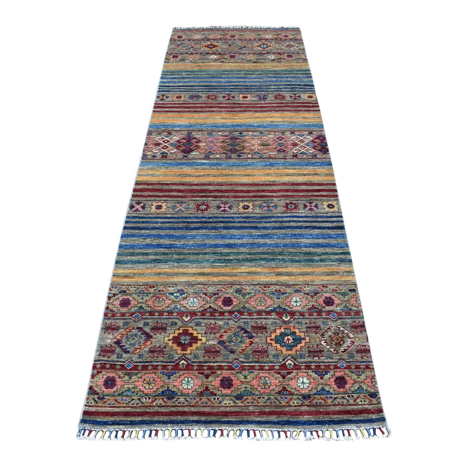 3'x9'3" Red Super Kazak Khorjin Design Pure Wool With Pop Of Color And Colorful Tassles Hand Knotted Oriental Runner Rug FWR402264