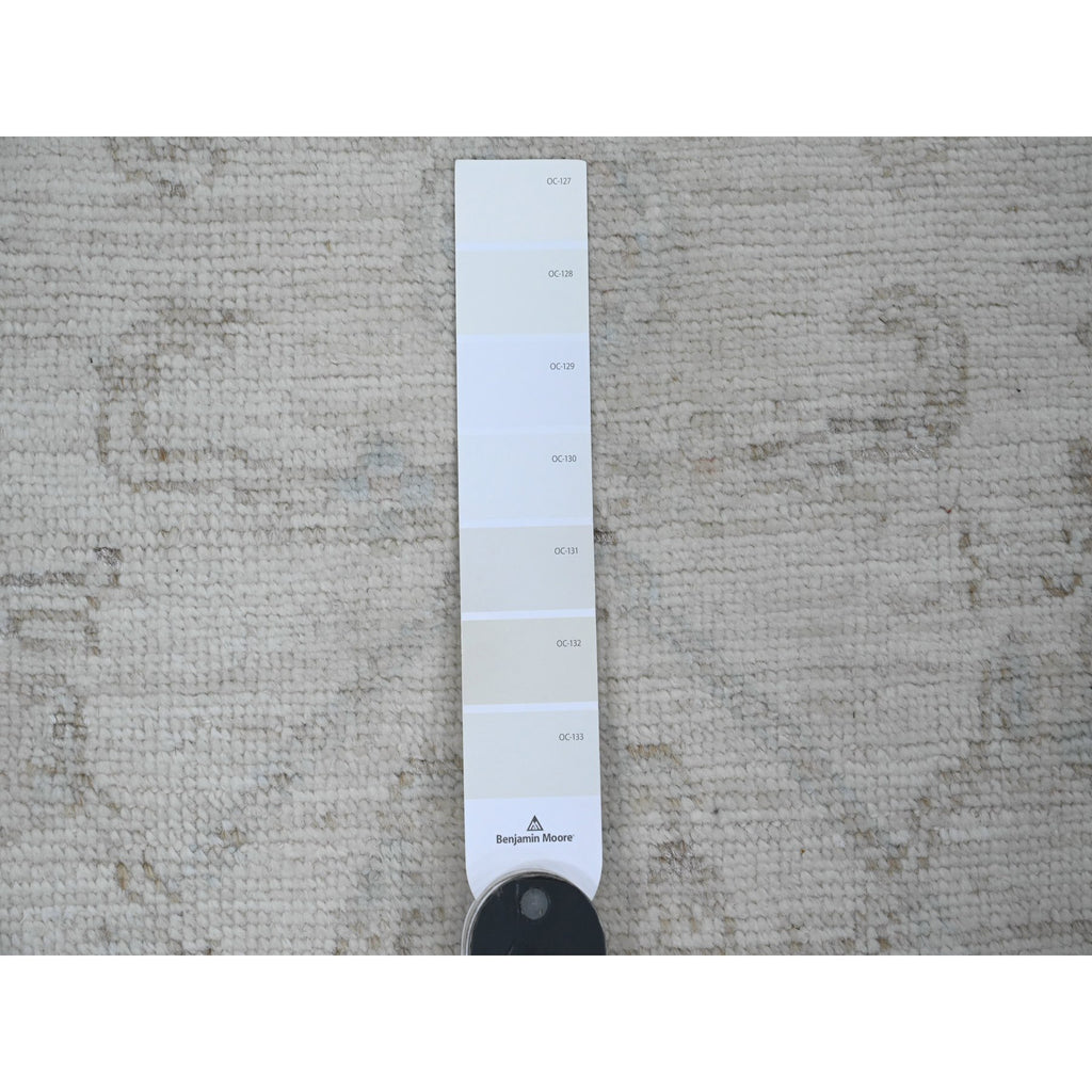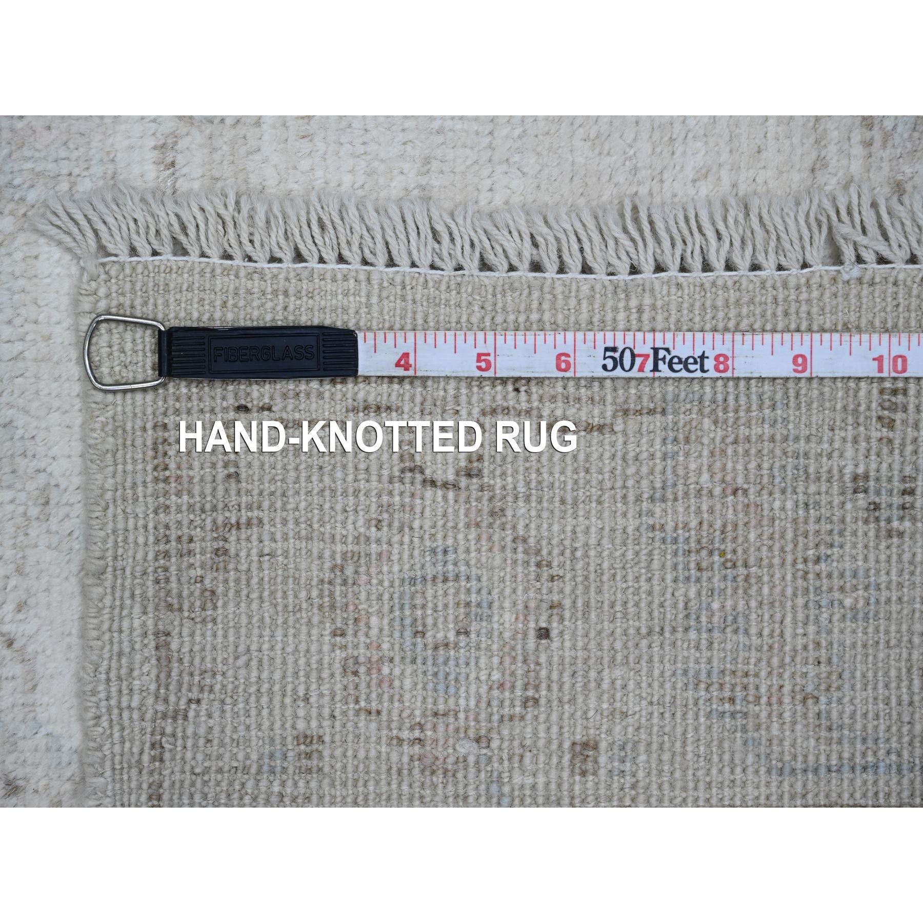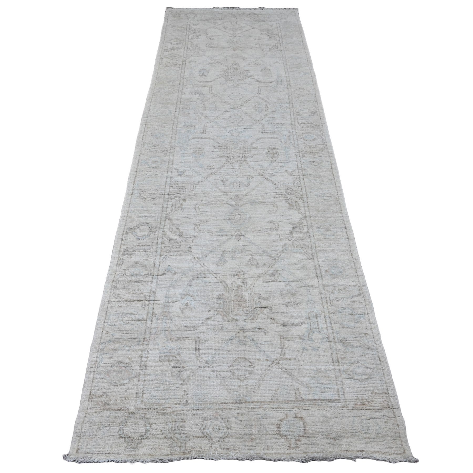3'x9'5" Lace White, Hand Knotted, Afghan Angora Oushak With All Over Vines Design, Natural Dyes, 100% Wool, Oriental Rug FWR121776