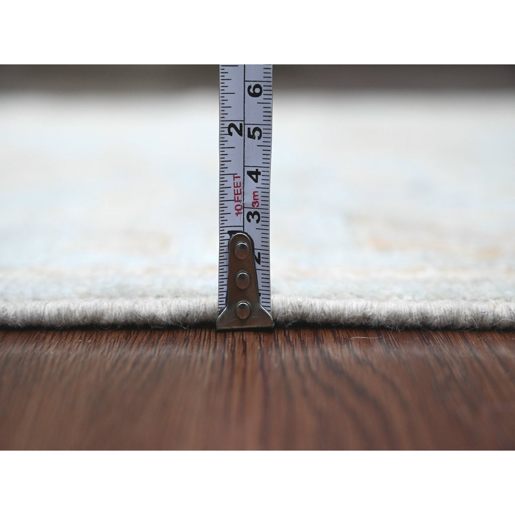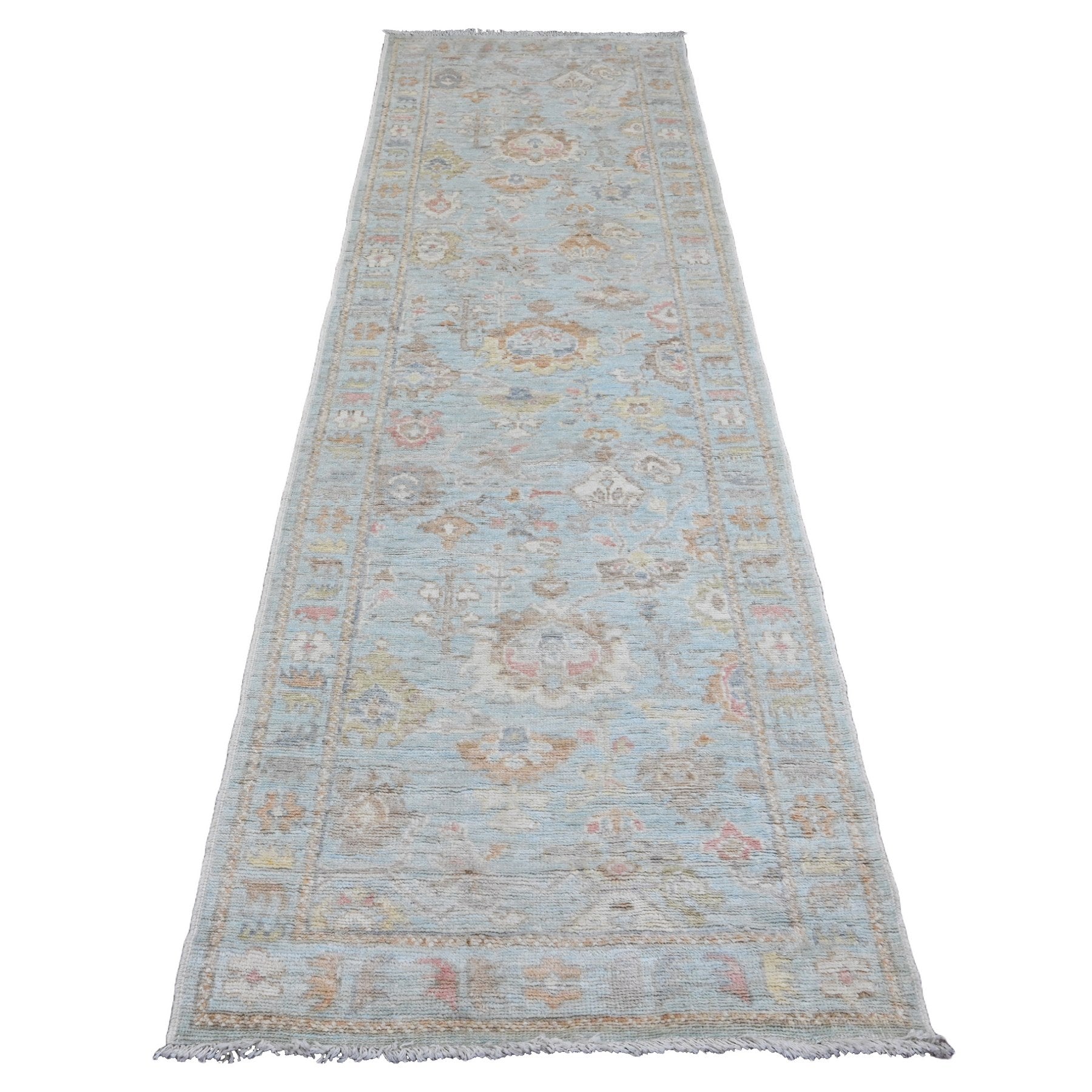 3'x9'6" Cerulean Blue, Hand Knotted, Afghan Angora Oushak With All Over Leaf Design, Vegetable Dyes, Pure Wool, Runner, Oriental Rug FWR124752