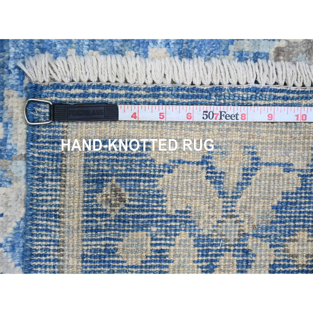 3'x9'7" Bayern Blue, 100% Wool, Afghan Angora Oushak With Leaf Design, Natural Dyes, Hand Knotted, Runner, Oriental Rug FWR539280