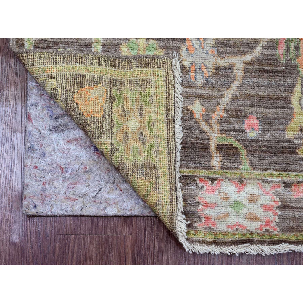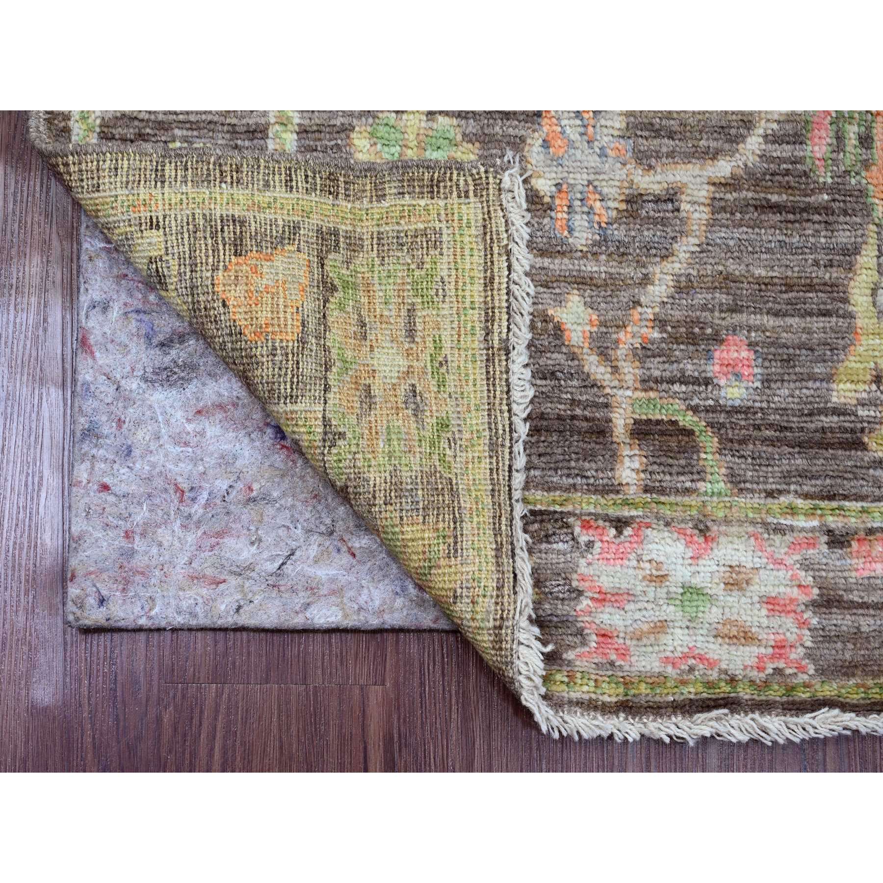 3'x9'8" Mocha Brown, Afghan Angora Oushak With Colorful Leaf Design, Vegetable Dyes, Hand Knotted, 100% Wool, Runner, Oriental Rug FWR120168