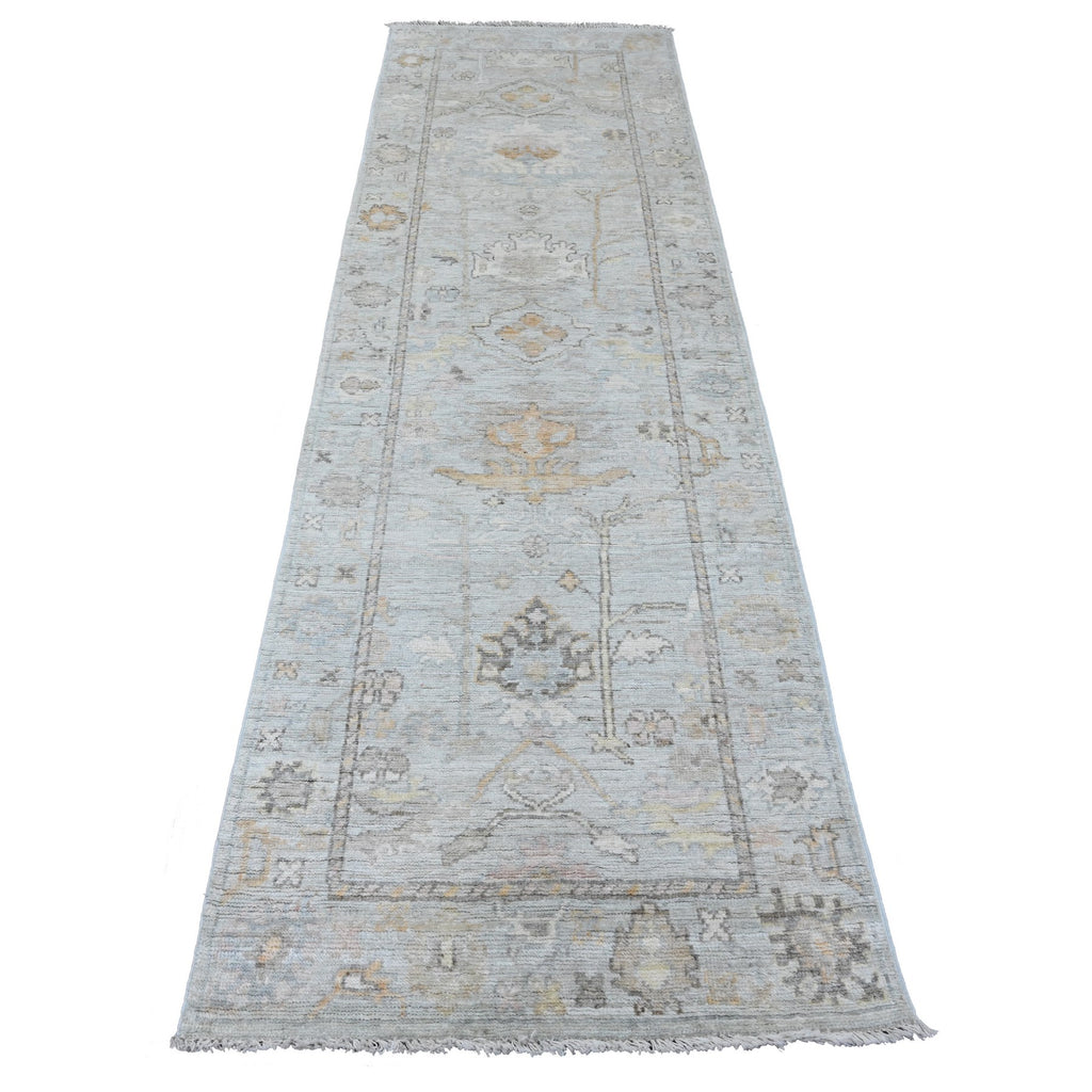 3'x9'9" Cloud Gray, Afghan Angora Oushak With Leaf Design, Natural Dyes, Pure Wool, Hand Knotted, Runner, Oriental Rug FWR539244