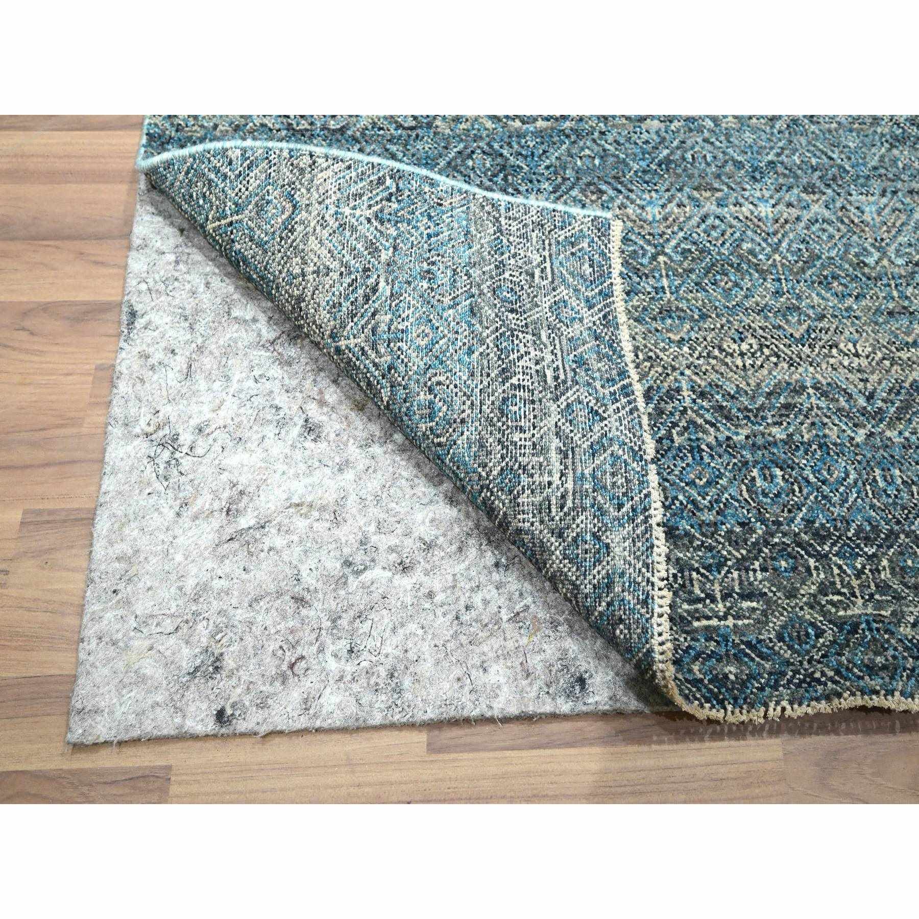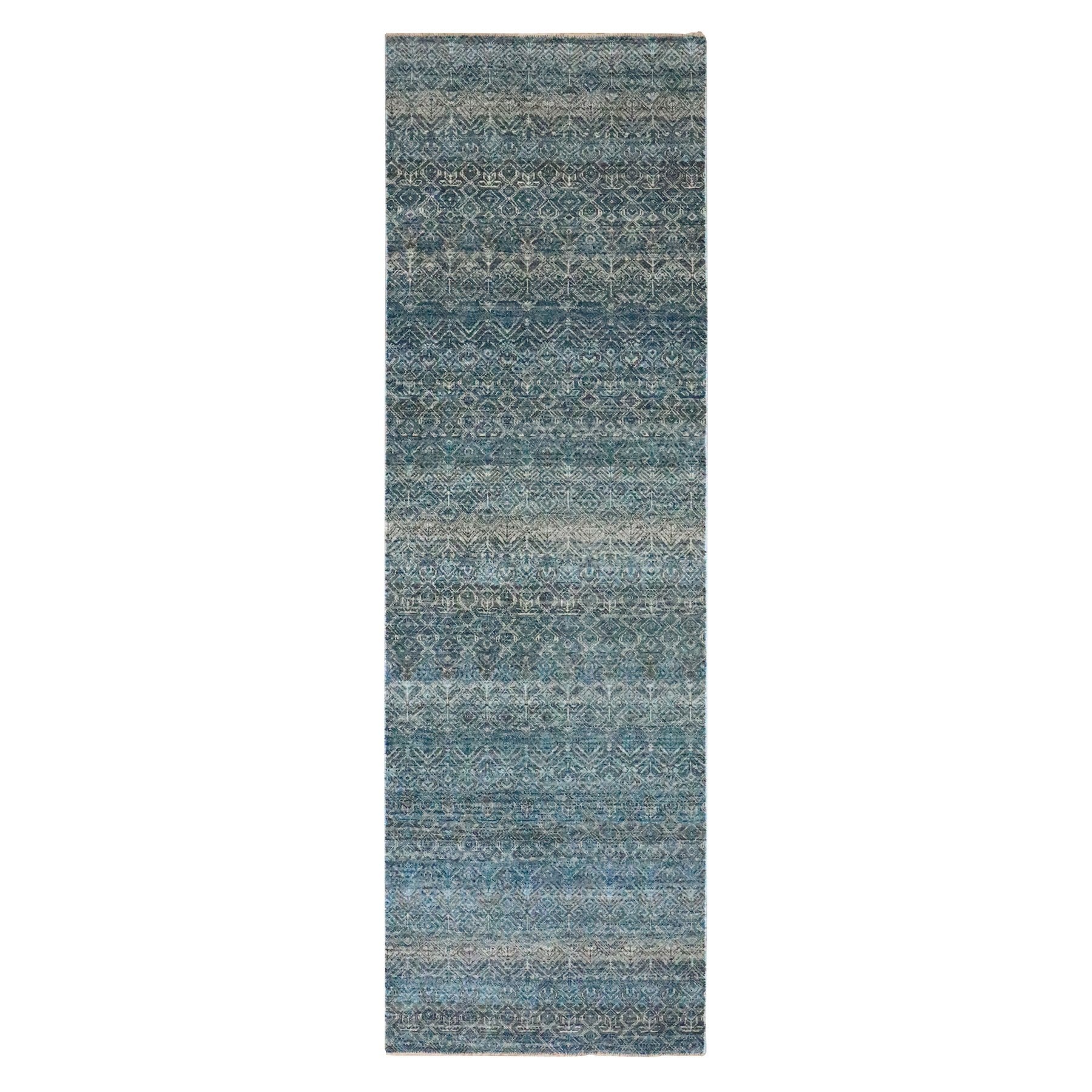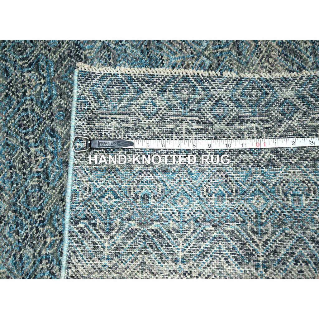 3'x9'9" Jasper Blue, Kohinoor Herat Pattern, Small Geometric Repetitive Diamond Design, Soft Wool, Tone On Tone, Hand Knotted, Runner, Oriental Rug FWR458514