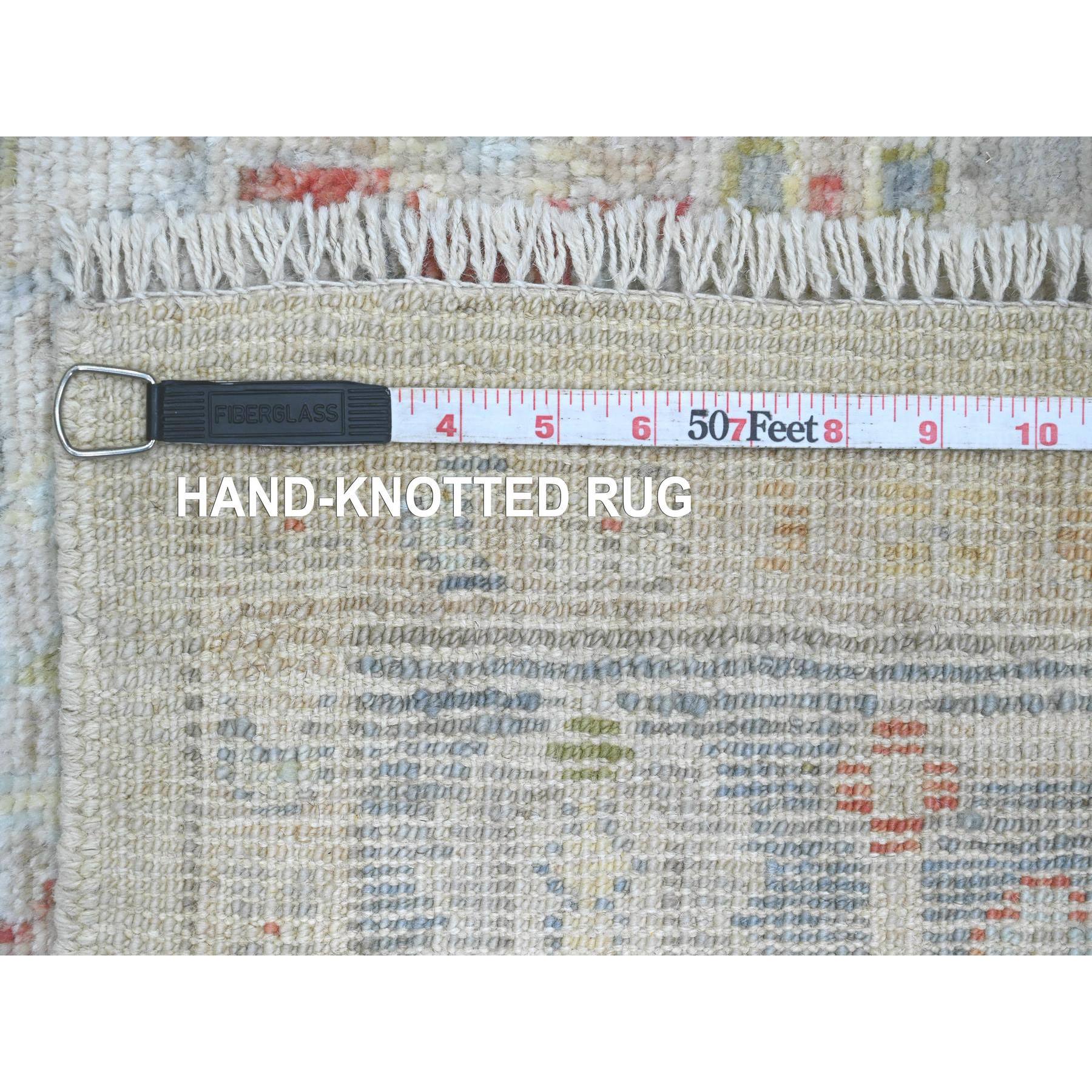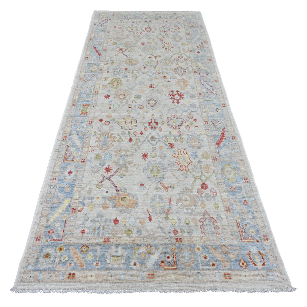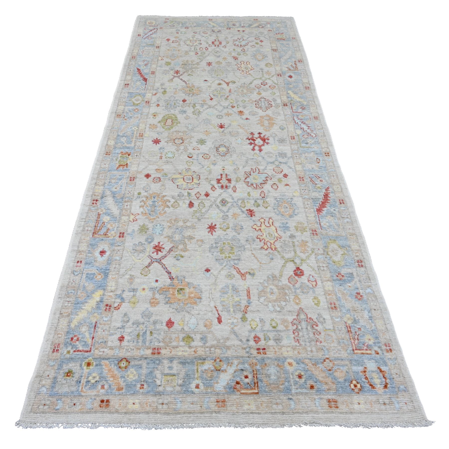 4'1"x10'1" Cascading White, Hand Knotted, Afghan Angora Oushak With All Over Leaf Design, Veggie Dyes, Pure Wool, Wide Runner, Oriental Rug FWR125262