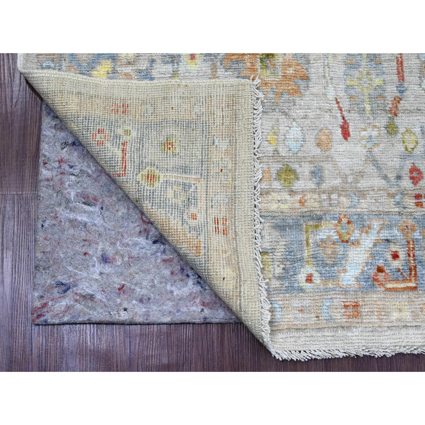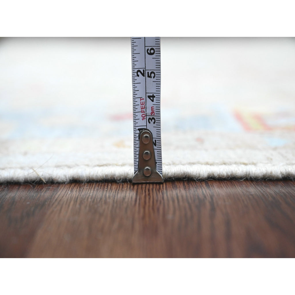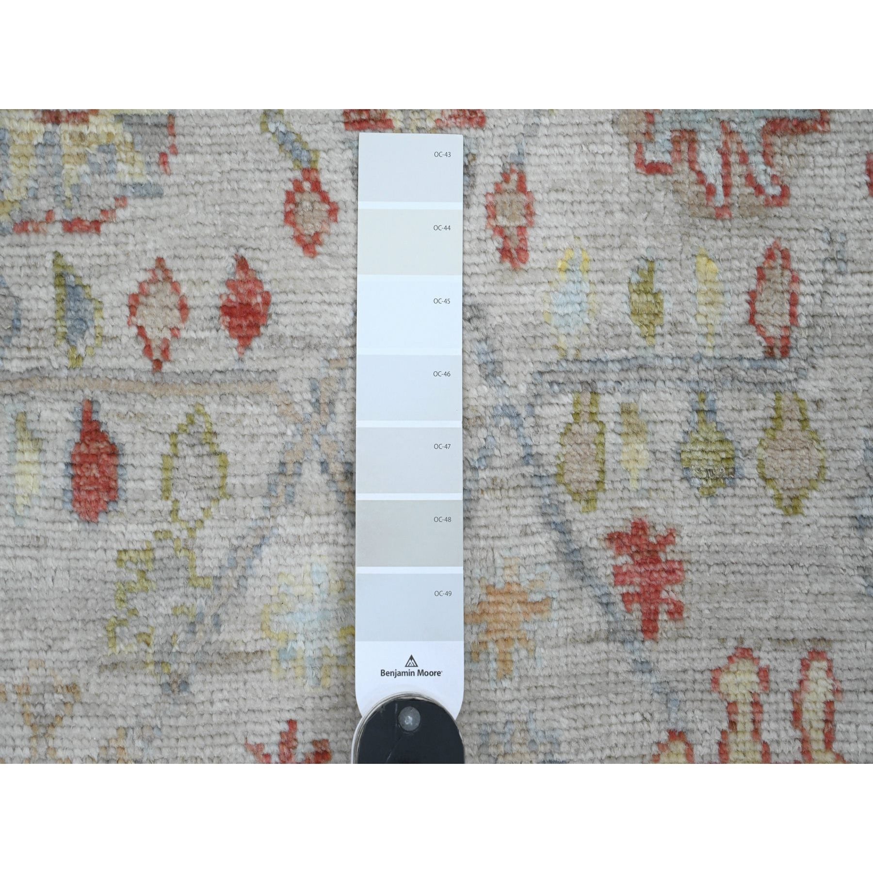 4'1"x10'1" Cascading White, Hand Knotted, Afghan Angora Oushak With All Over Leaf Design, Veggie Dyes, Pure Wool, Wide Runner, Oriental Rug FWR125262