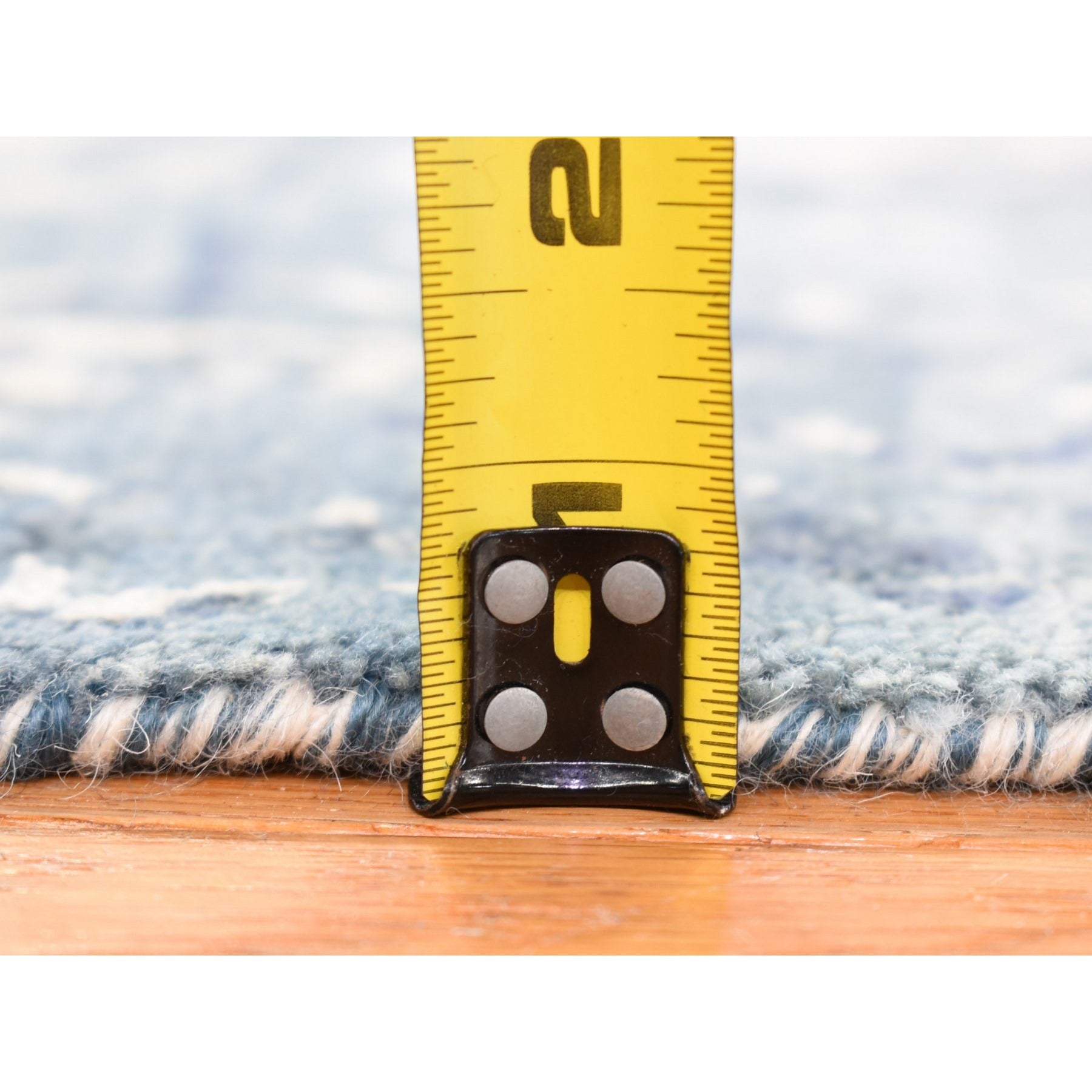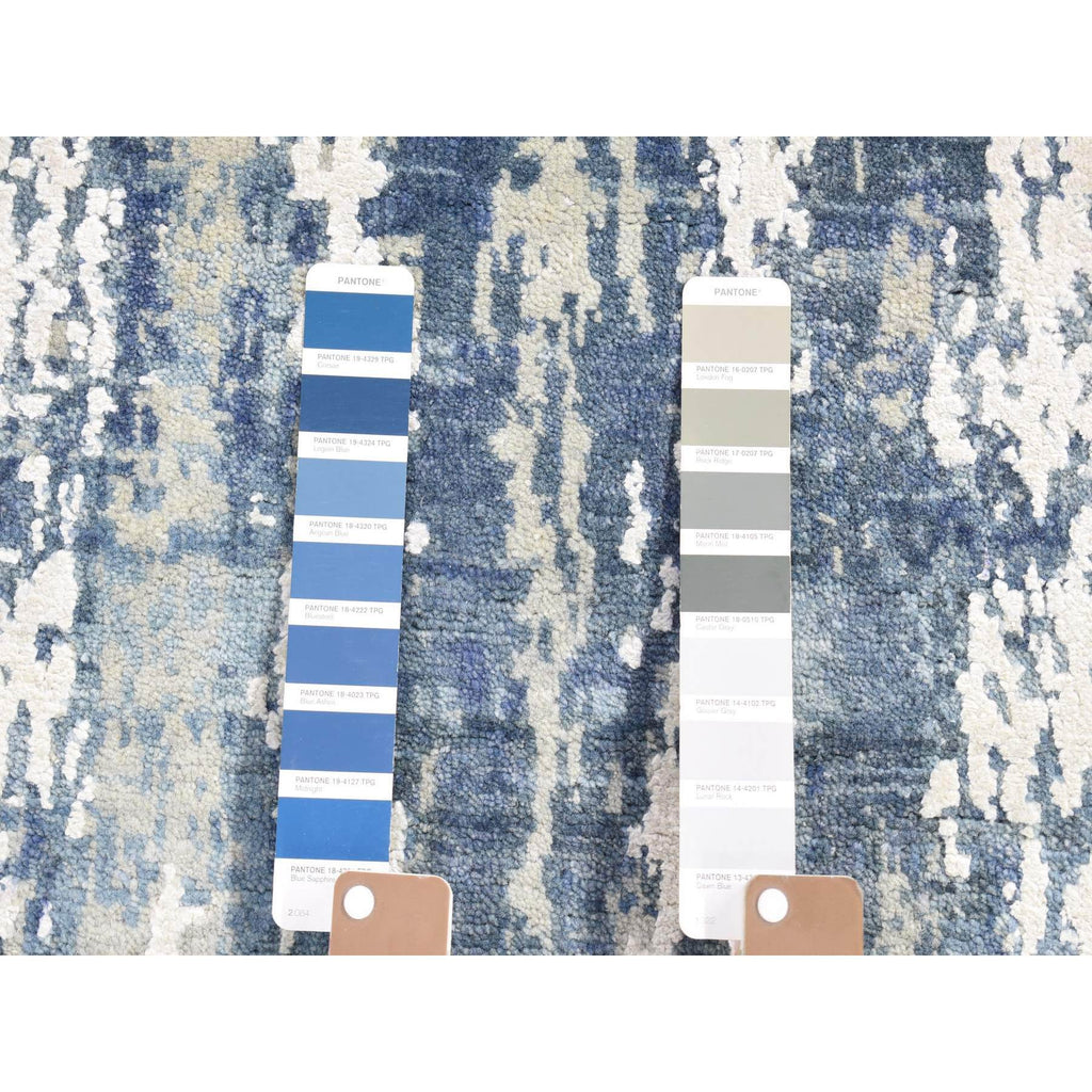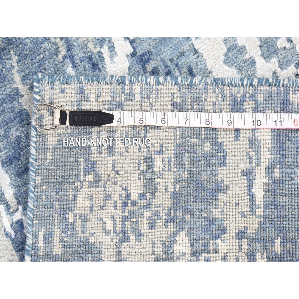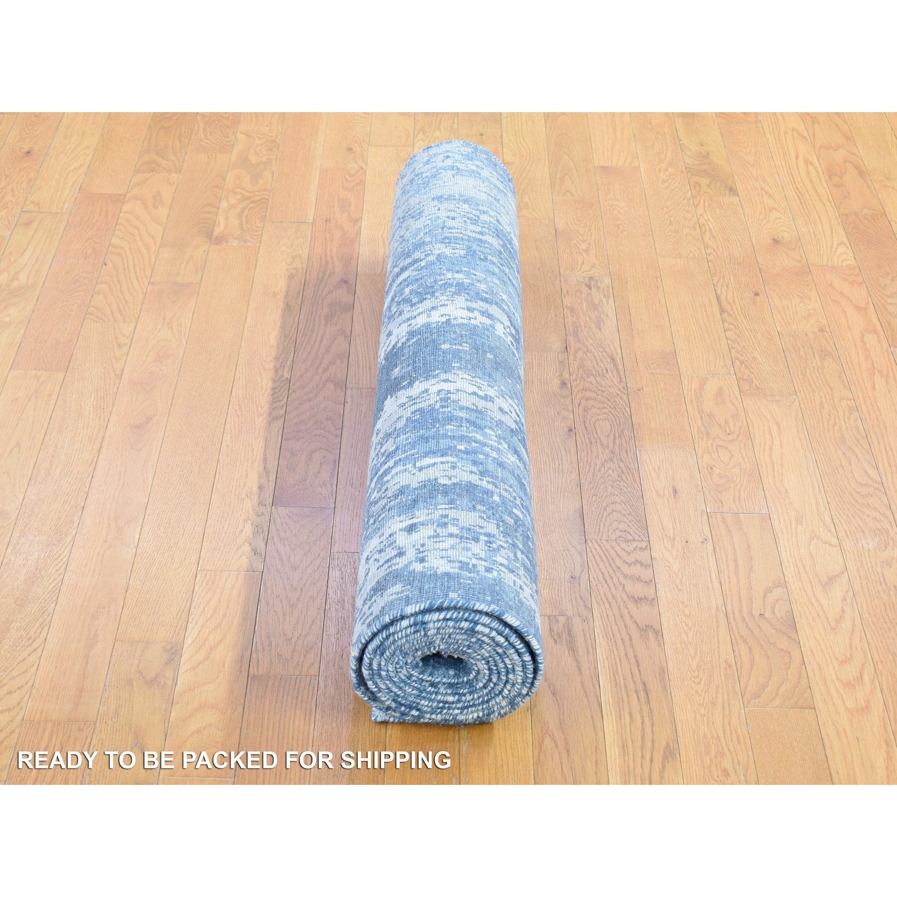 4'1"x10'2" Wool And Real Silk Hand Knotted Blue Abstract Design With Soft Colors Oriental Runner Rug FWR401778