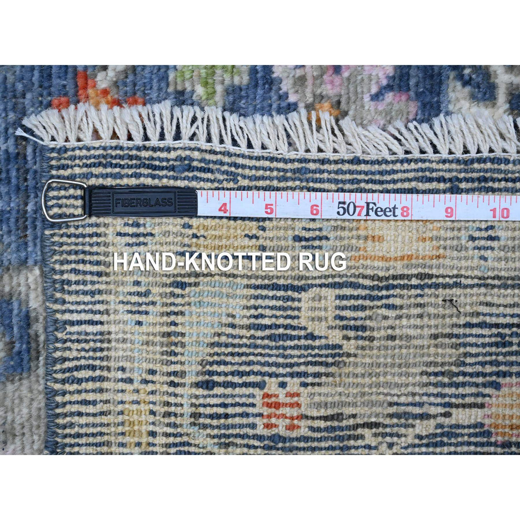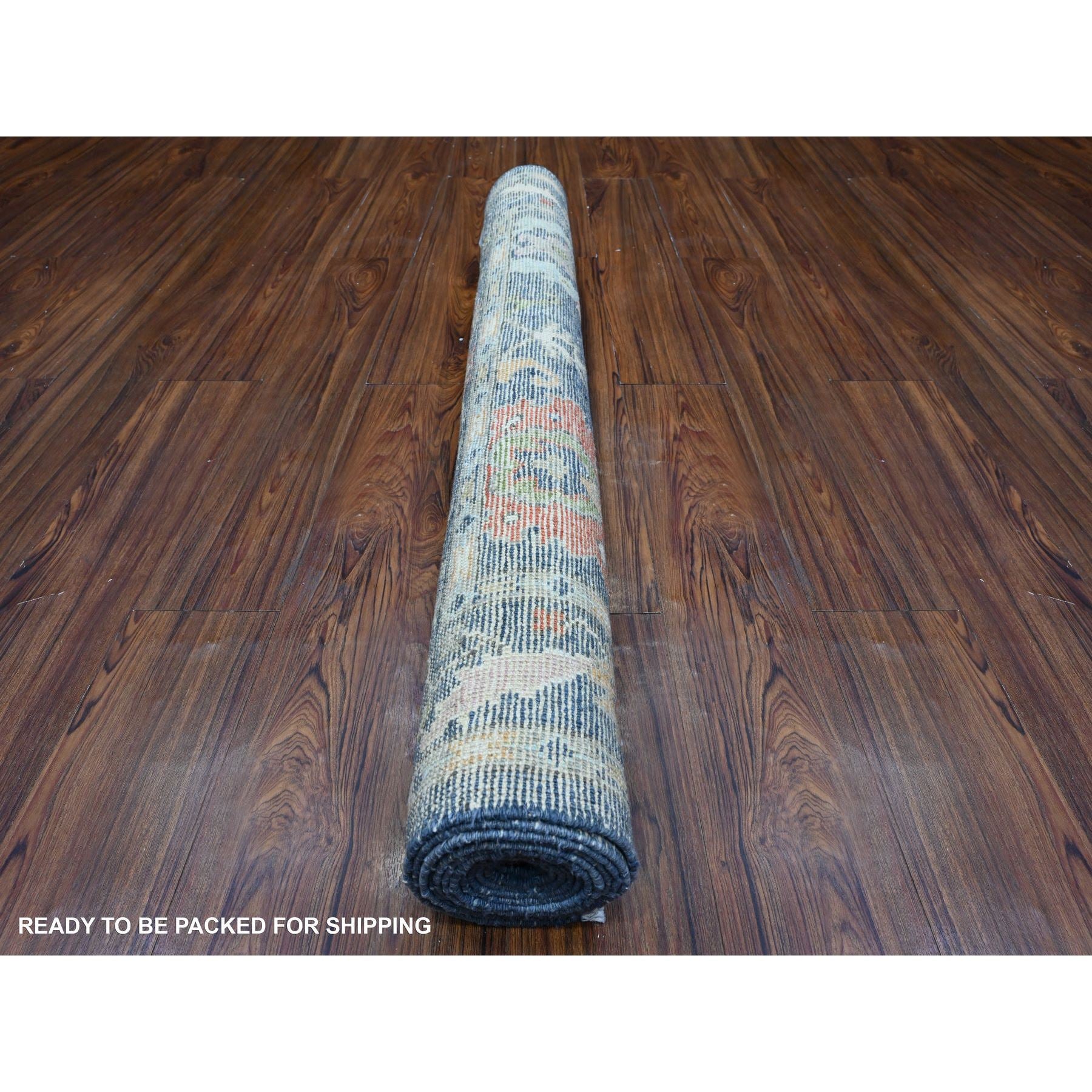 4'1"x10'7" Steel Blue, Vegetable Dyes, Soft Wool Weft, Hand Knotted, Afghan Angora Oushak, Village Flower And Leaf Motifs All Over Design, Wide Gallery Oriental Runner Rug FWR535746