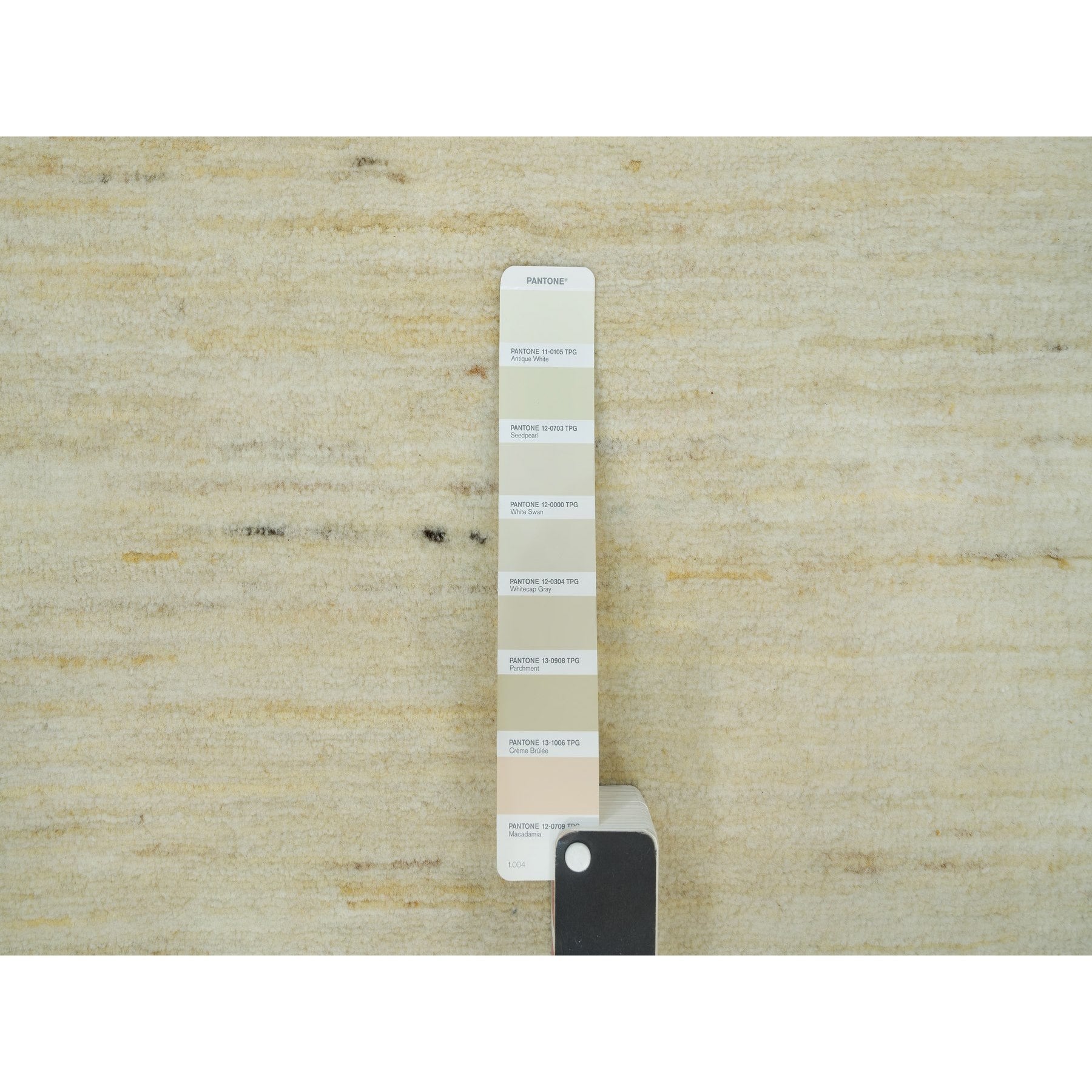 4'1"x10' Macadamia White, Thick And Plush, Soft To The Touch, Lori Buft Gabbeh Plain Design, Hand Knotted Persian Wool, Oriental Wide Runner Rug FWR542394