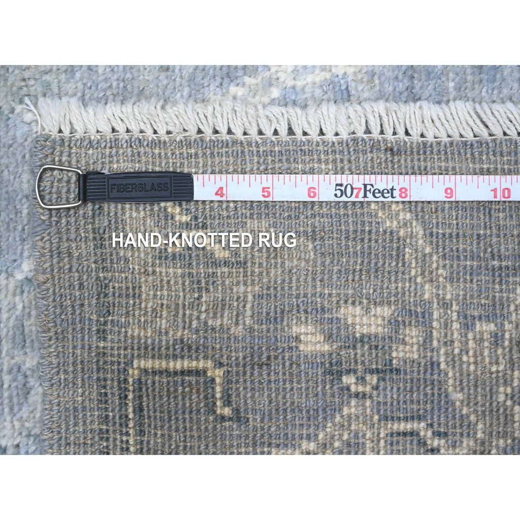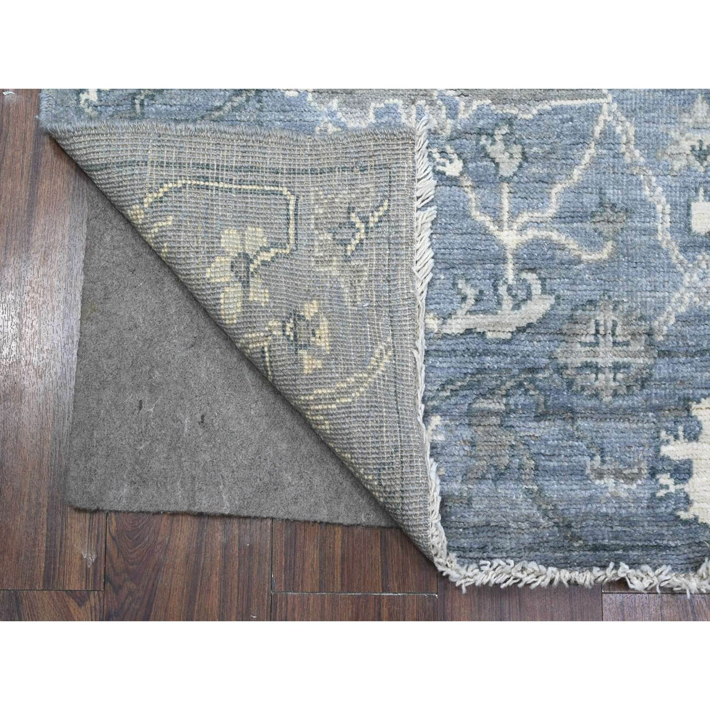 4'1"x11'1" Lava Gray, Wool Weft, Afghan Wide Runner, Hand Knotted, Vegetable Dyes, Angora Oushak, Rural Leaf And Flower All Over Design, Oriental Rug FWR538038