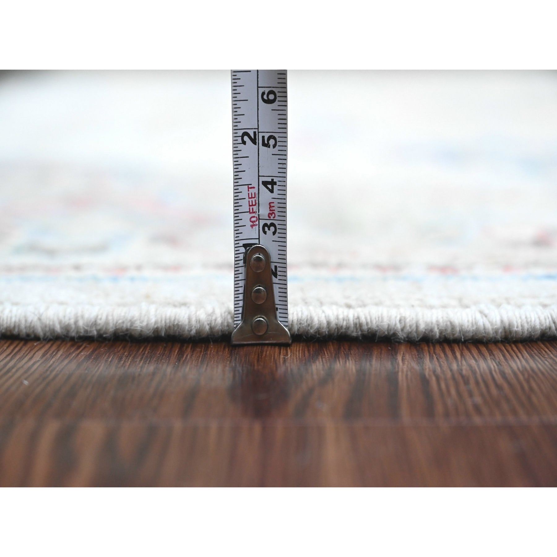 4'1"x11'7" Alabaster White, Hand Knotted, Afghan Angora Oushak With Floral Pattern, Natural Dyes, 100% Wool, Wide Runner, Oriental Rug FWR123378