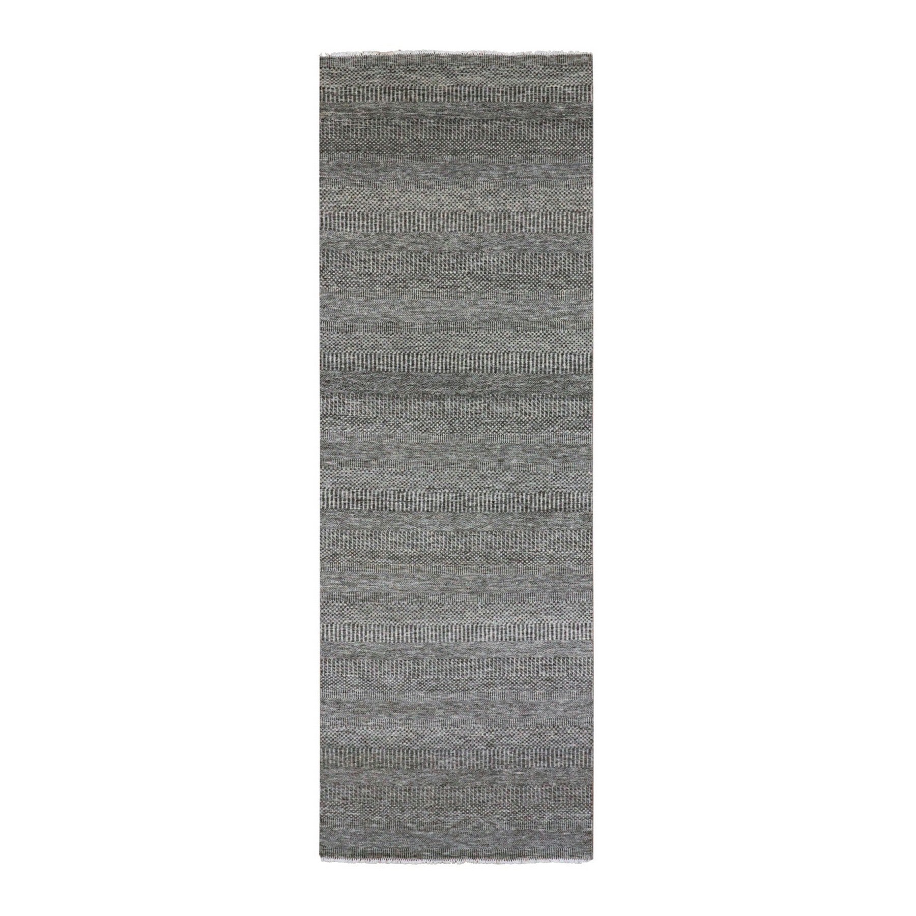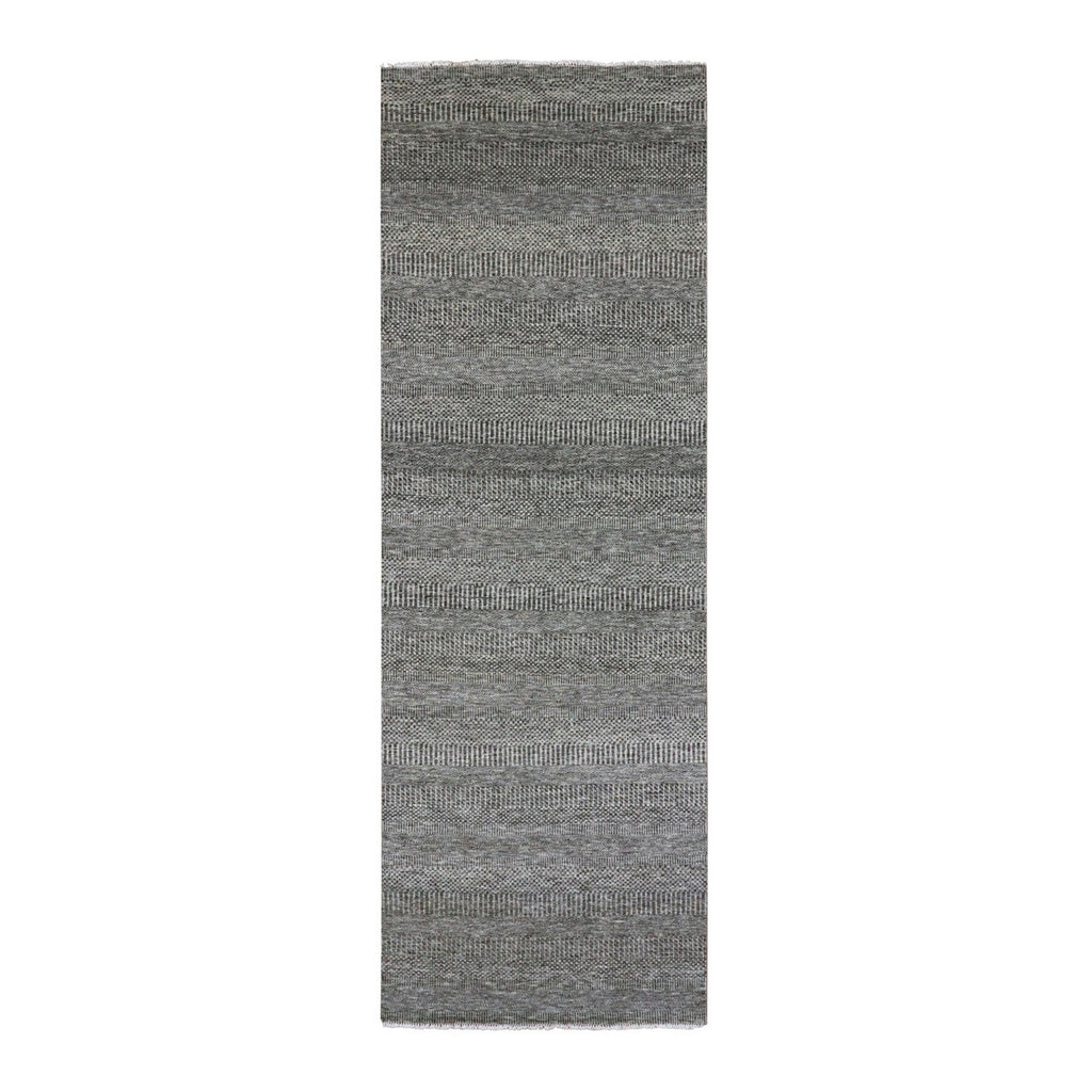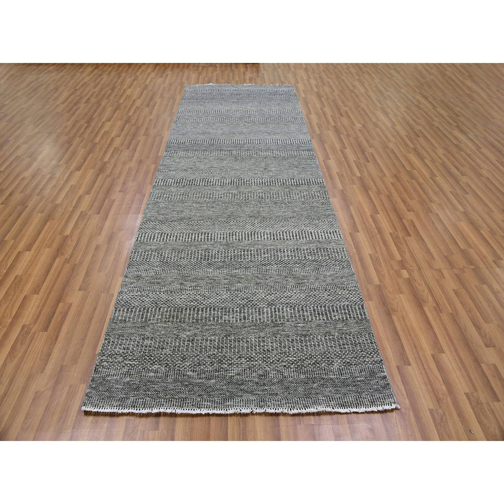 4'1"x12'1" Battleship Gray, Modern Grass Design, Tone On Tone, Undyed 100% Wool, Hand Knotted, Wide Runner Oriental Rug FWR477576