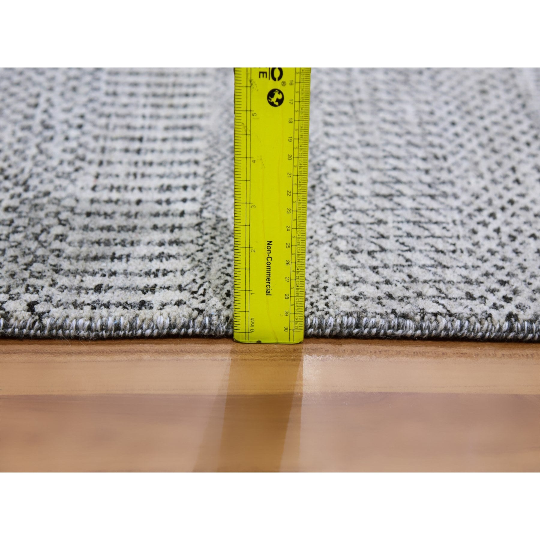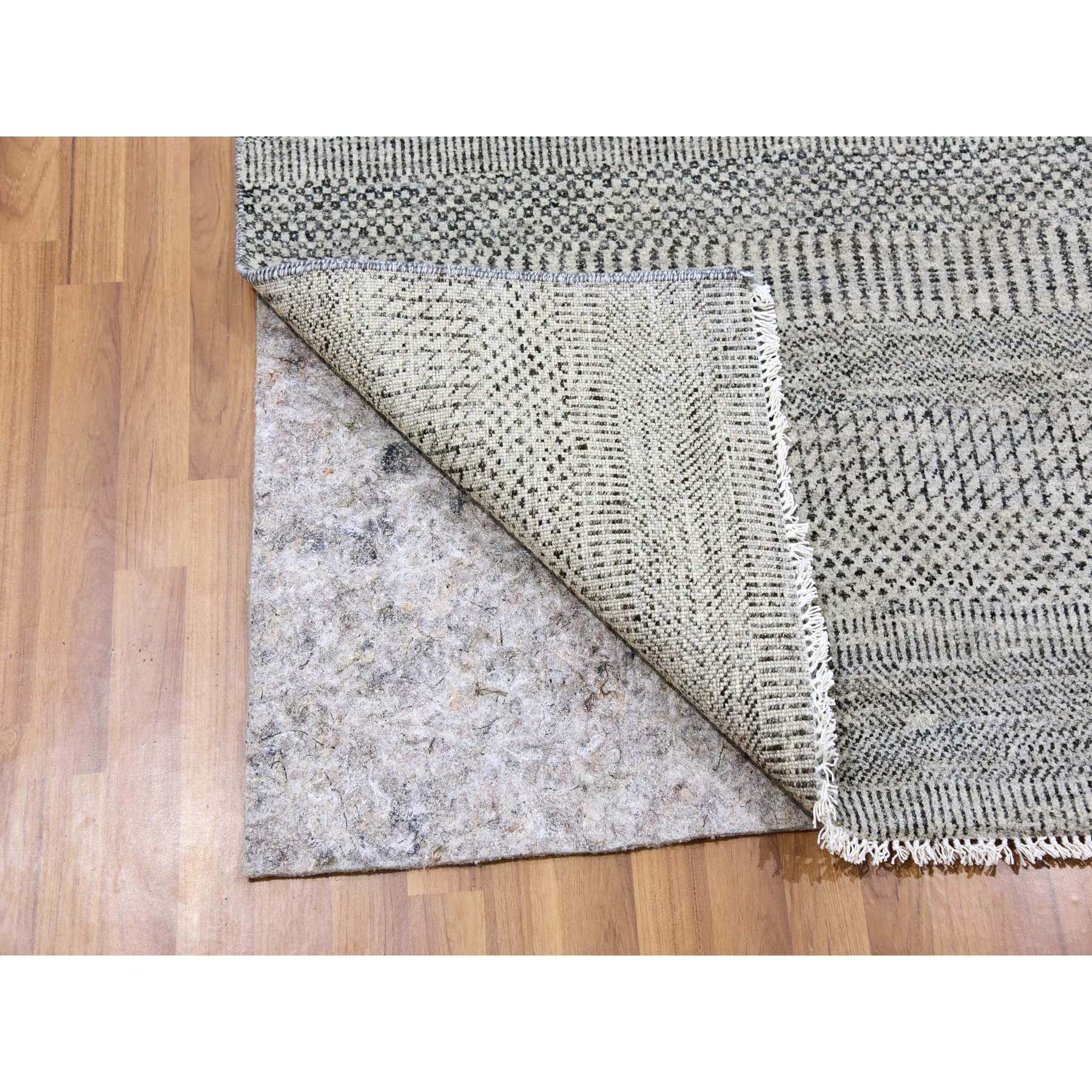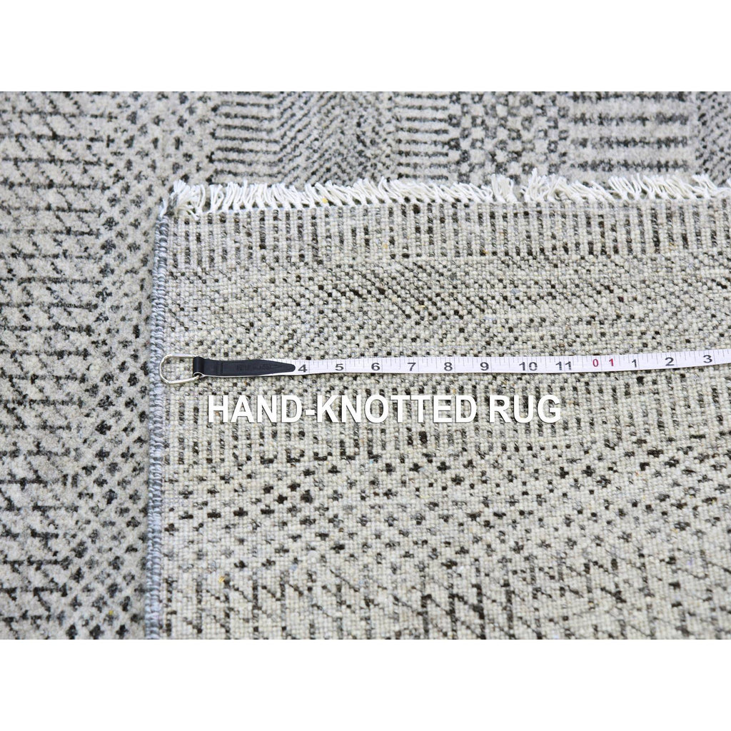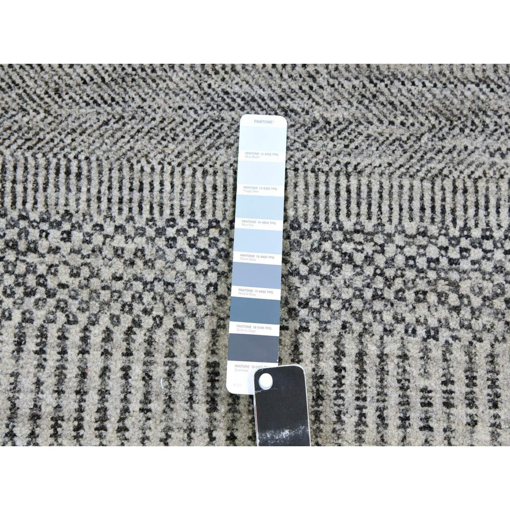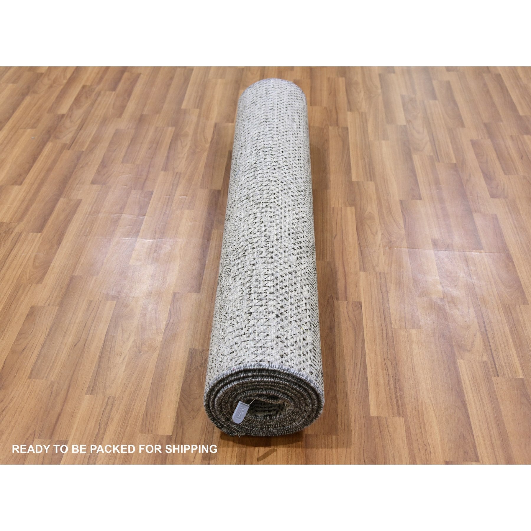 4'1"x12'1" Gentle Gray, Modern Tone On Tone Grass Design, Hand Knotted, Undyed Organic Wool, Runner Oriental Rug FWR477408
