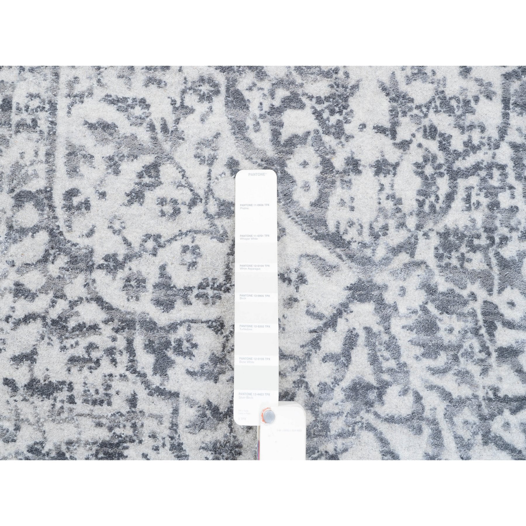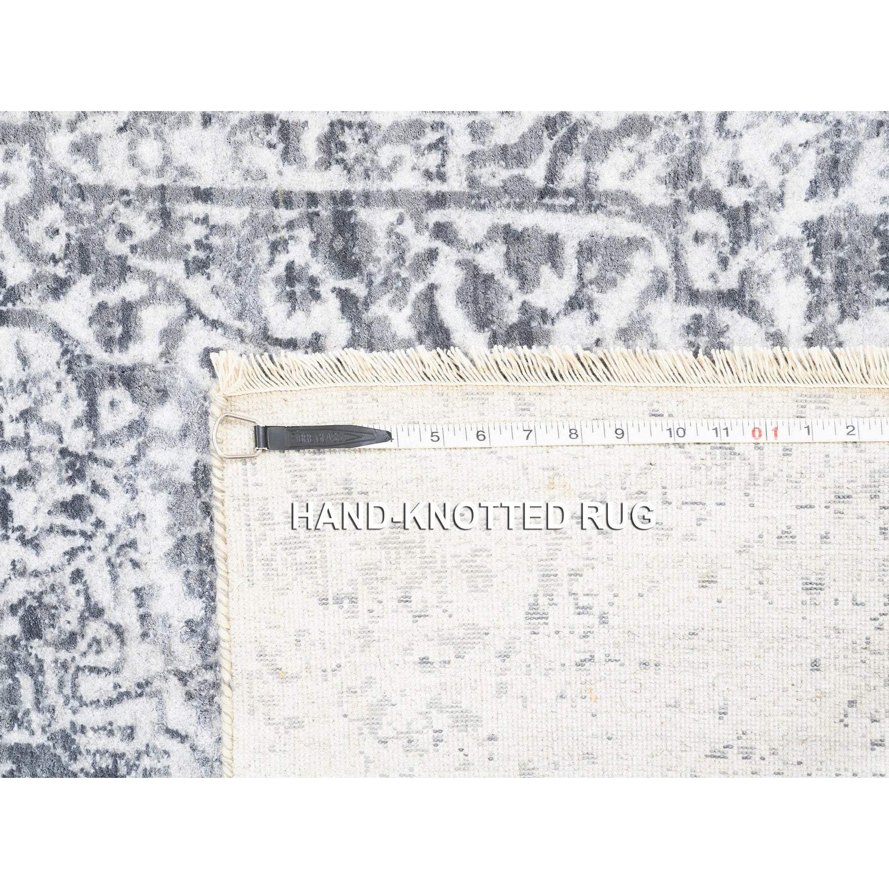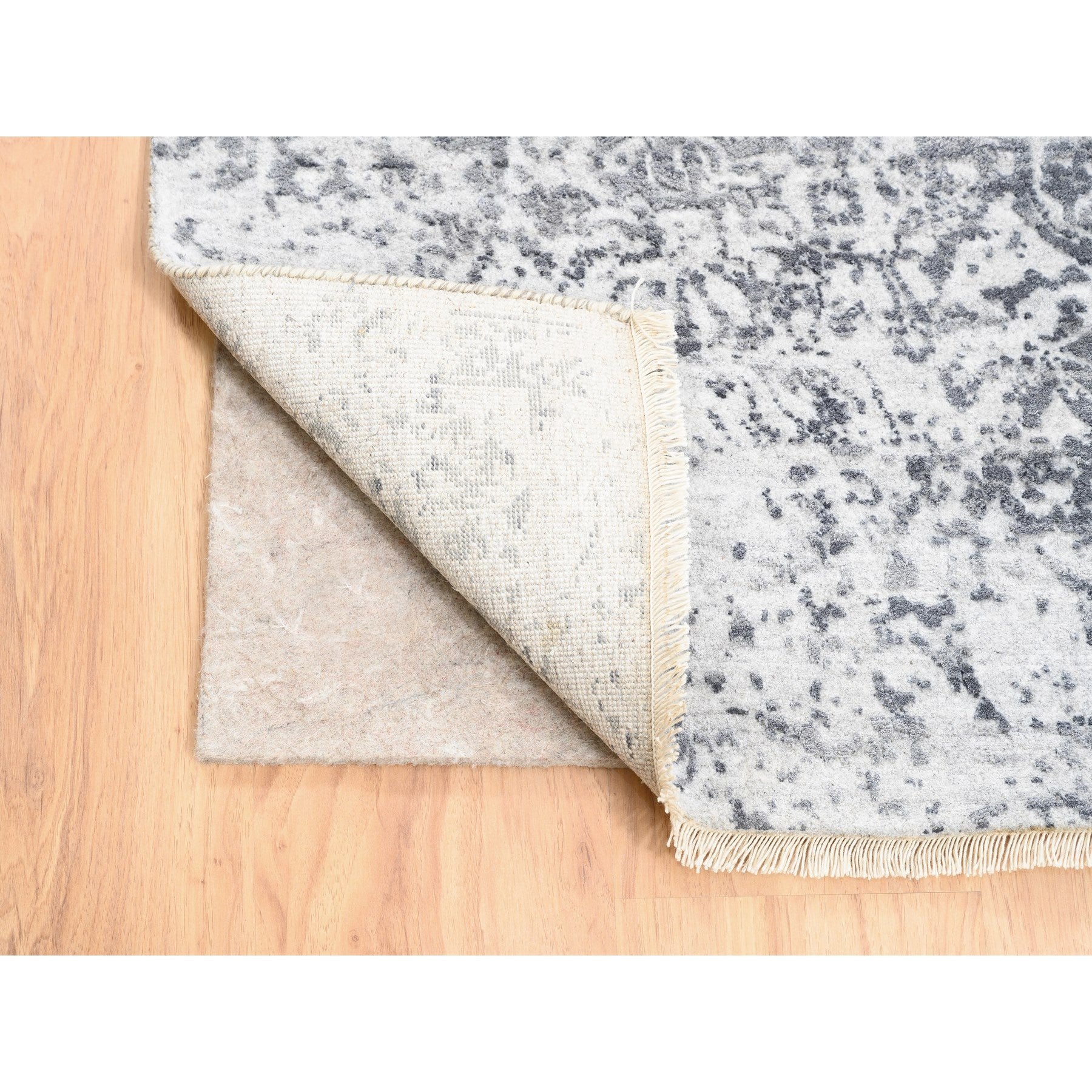 4'1"x12'1" Grey Wool And Pure Silk Broken Persian Design Hand Knotted Oriental Wide Gallery Size Runner Rug FWR374202