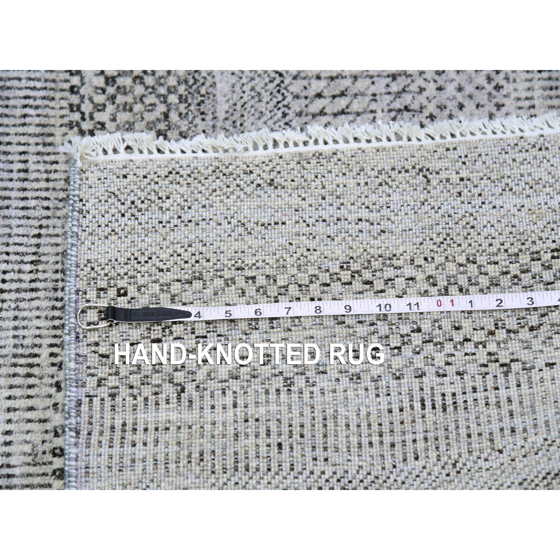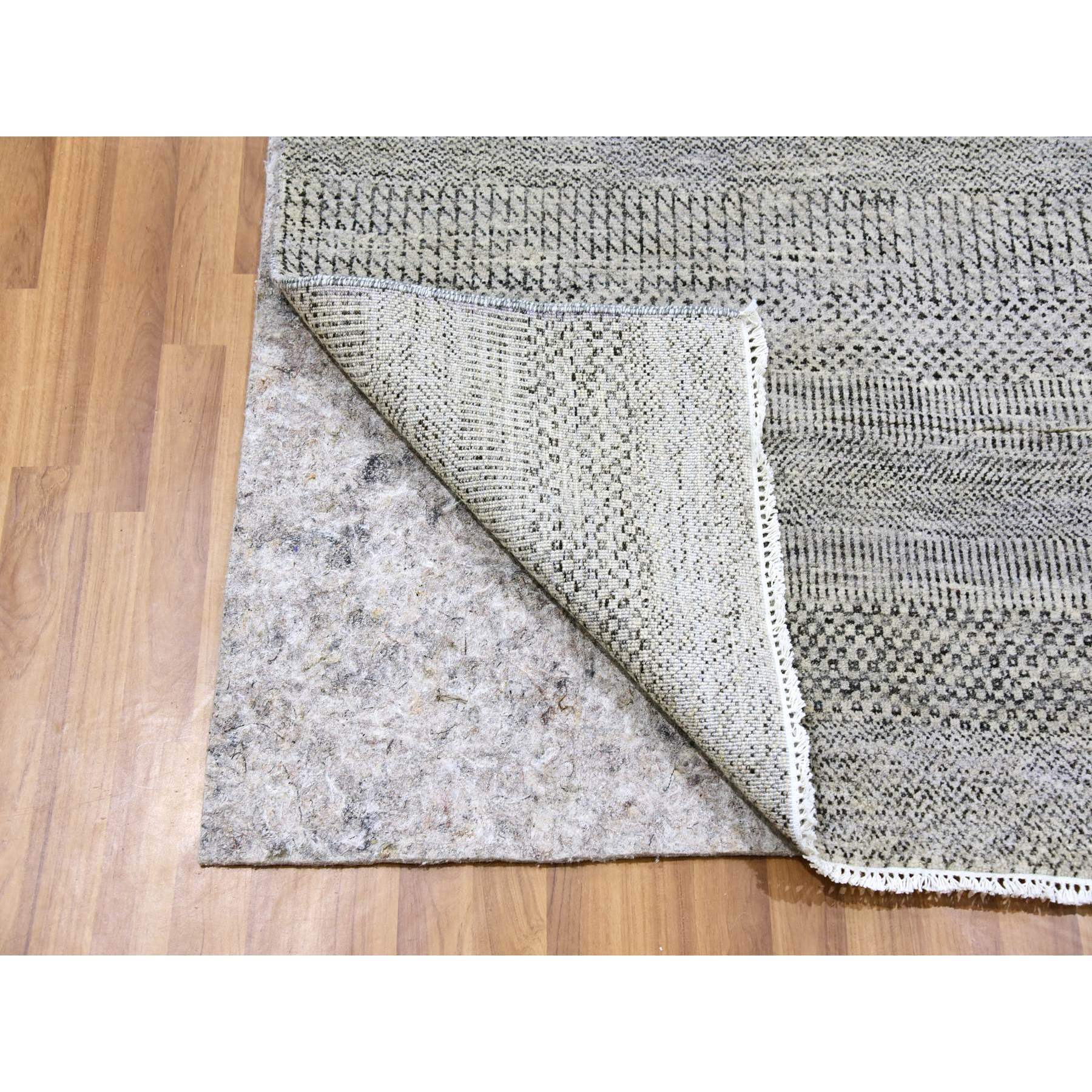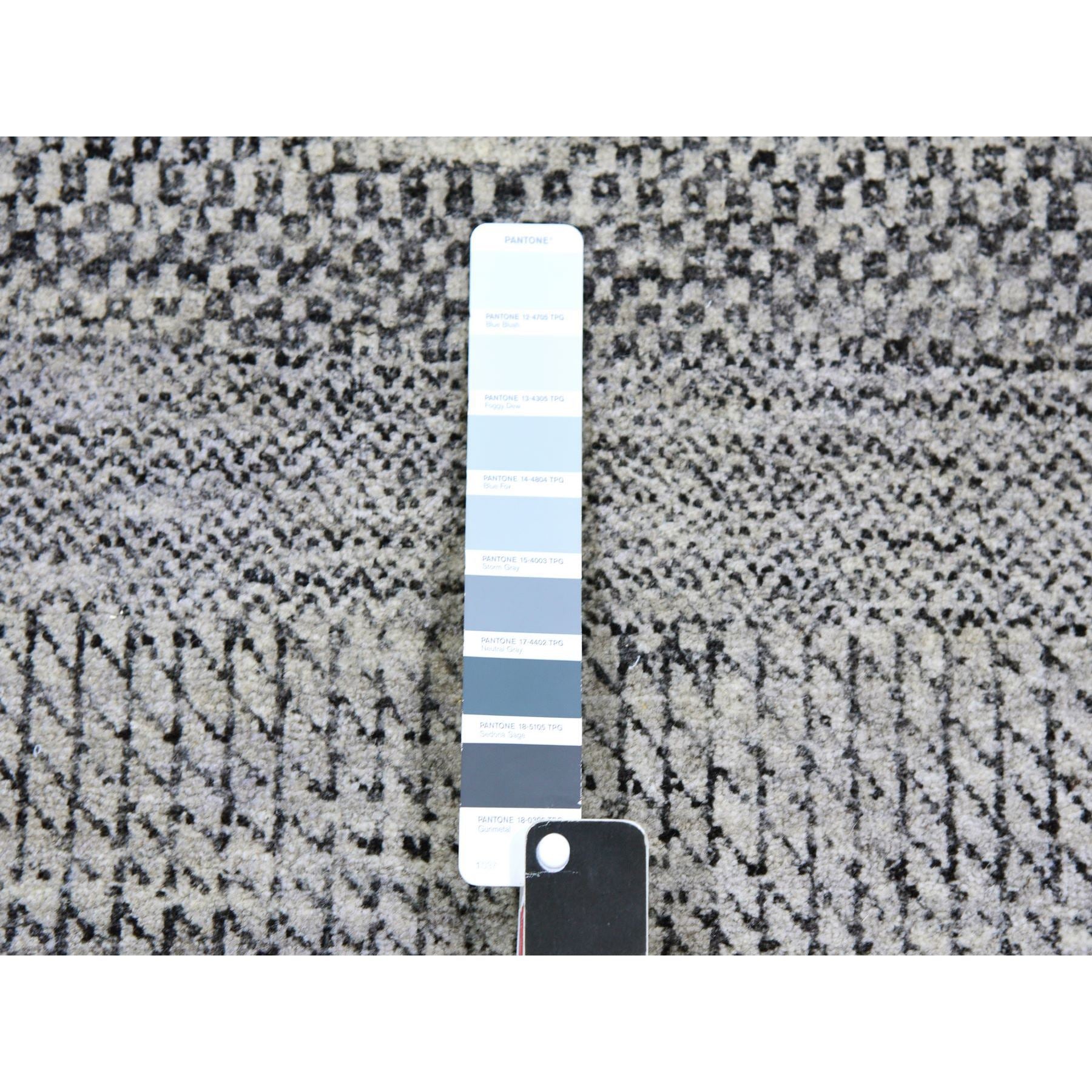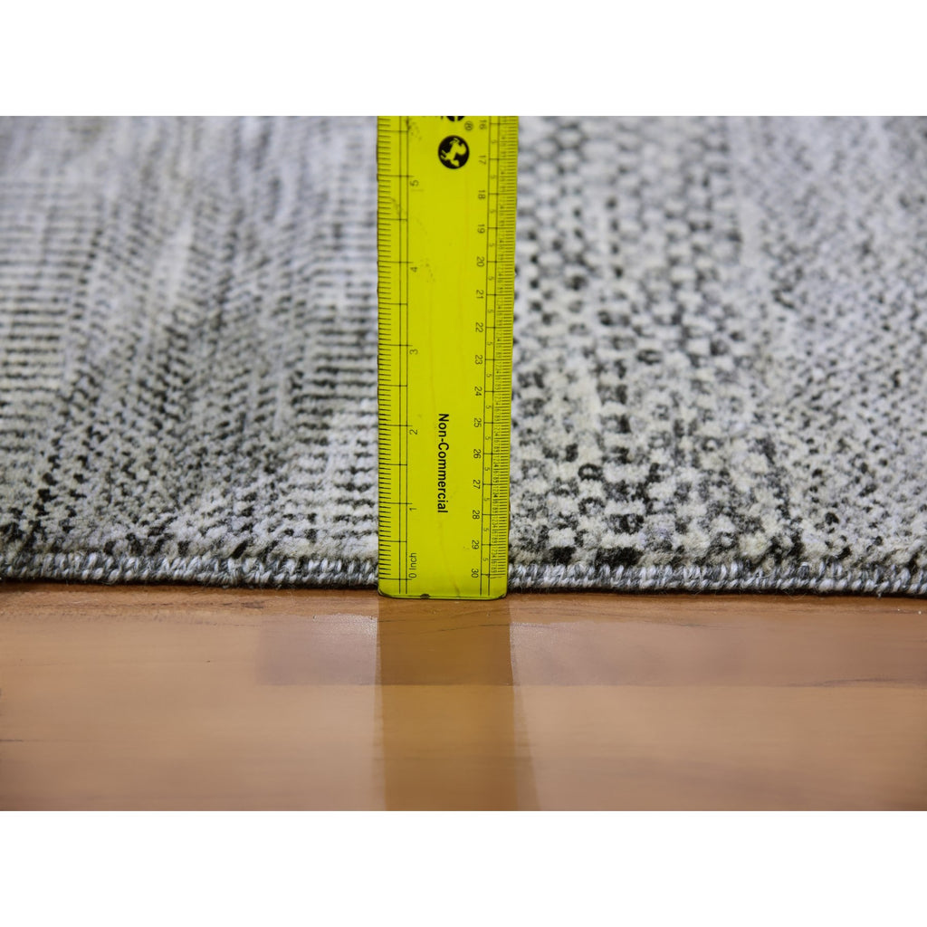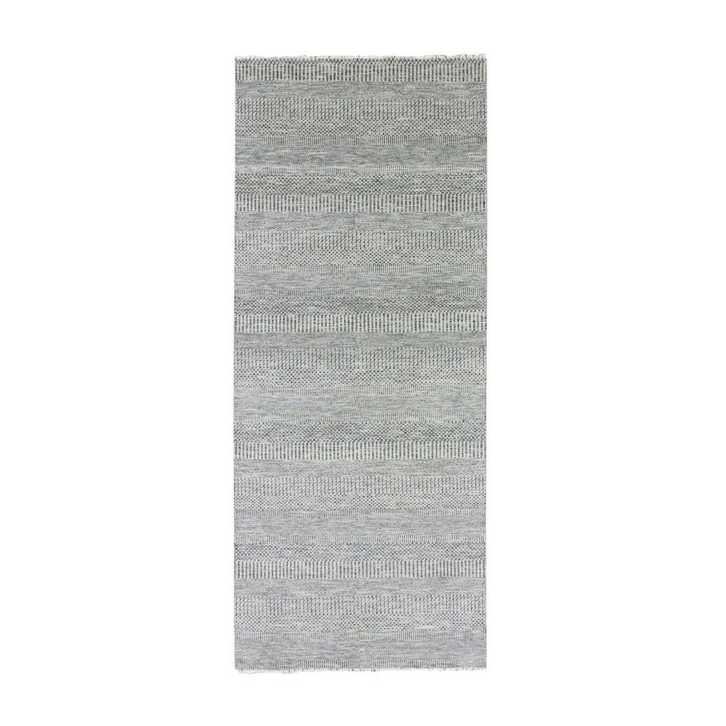 4'1"x12'1" Metallic Gray, Pure Undyed Wool, Tone On Tone, Modern Grass Design, Hand Knotted, Wide Runner Oriental Rug FWR477414