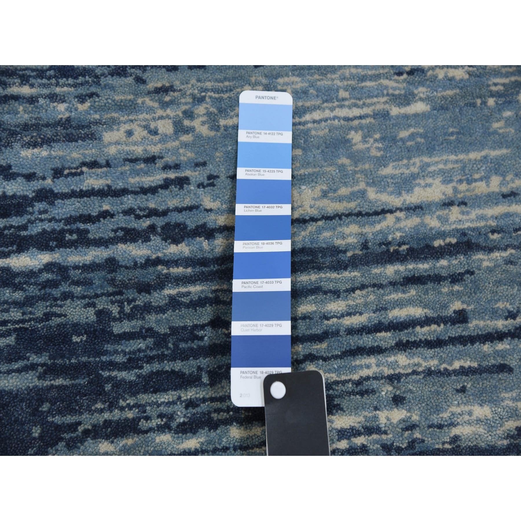 4'1"x12'2" Blue With Touches Of Ivory Hand Knotted Pure Wool Only Horizontal Ombre Design Oriental Wide Runner Rug FWR450120