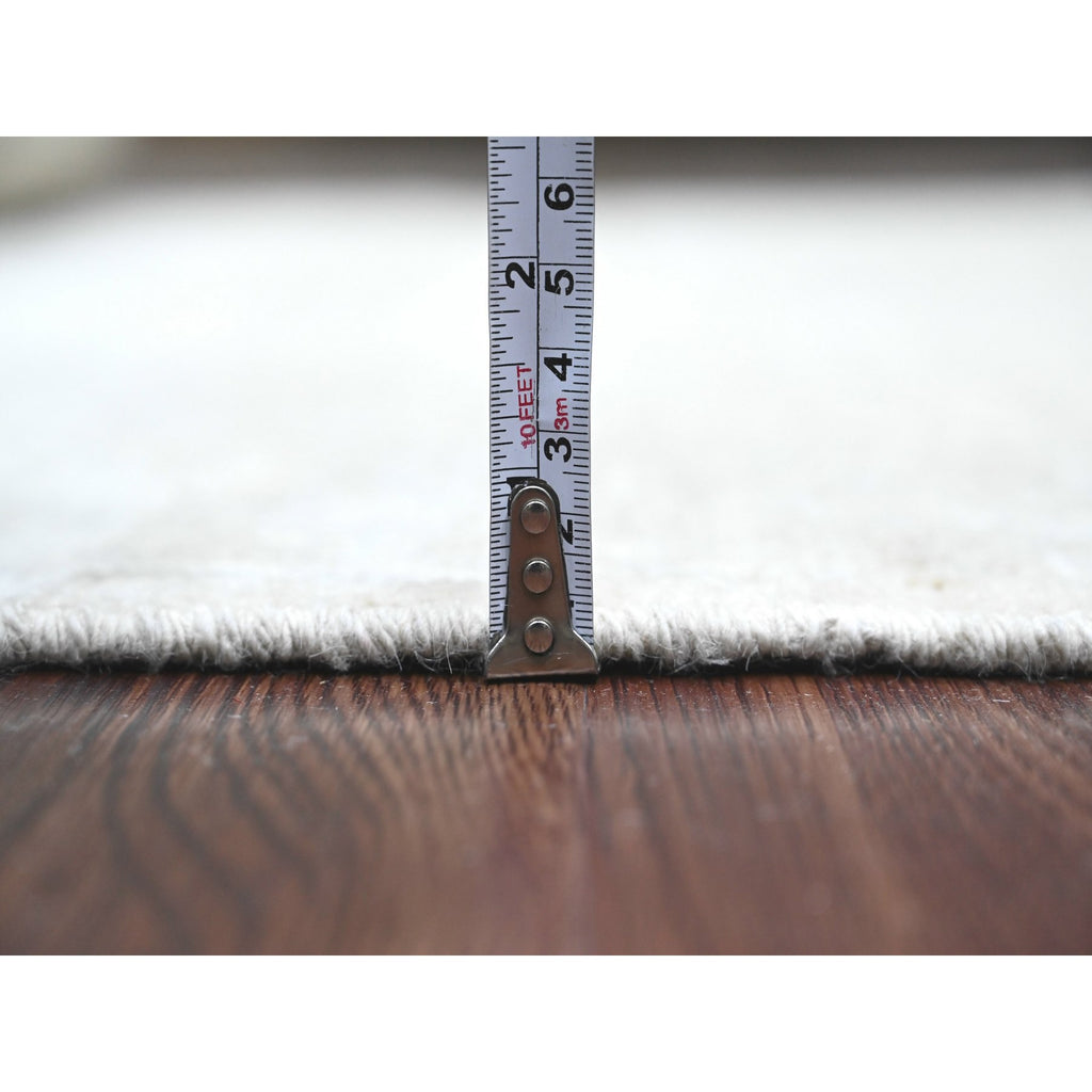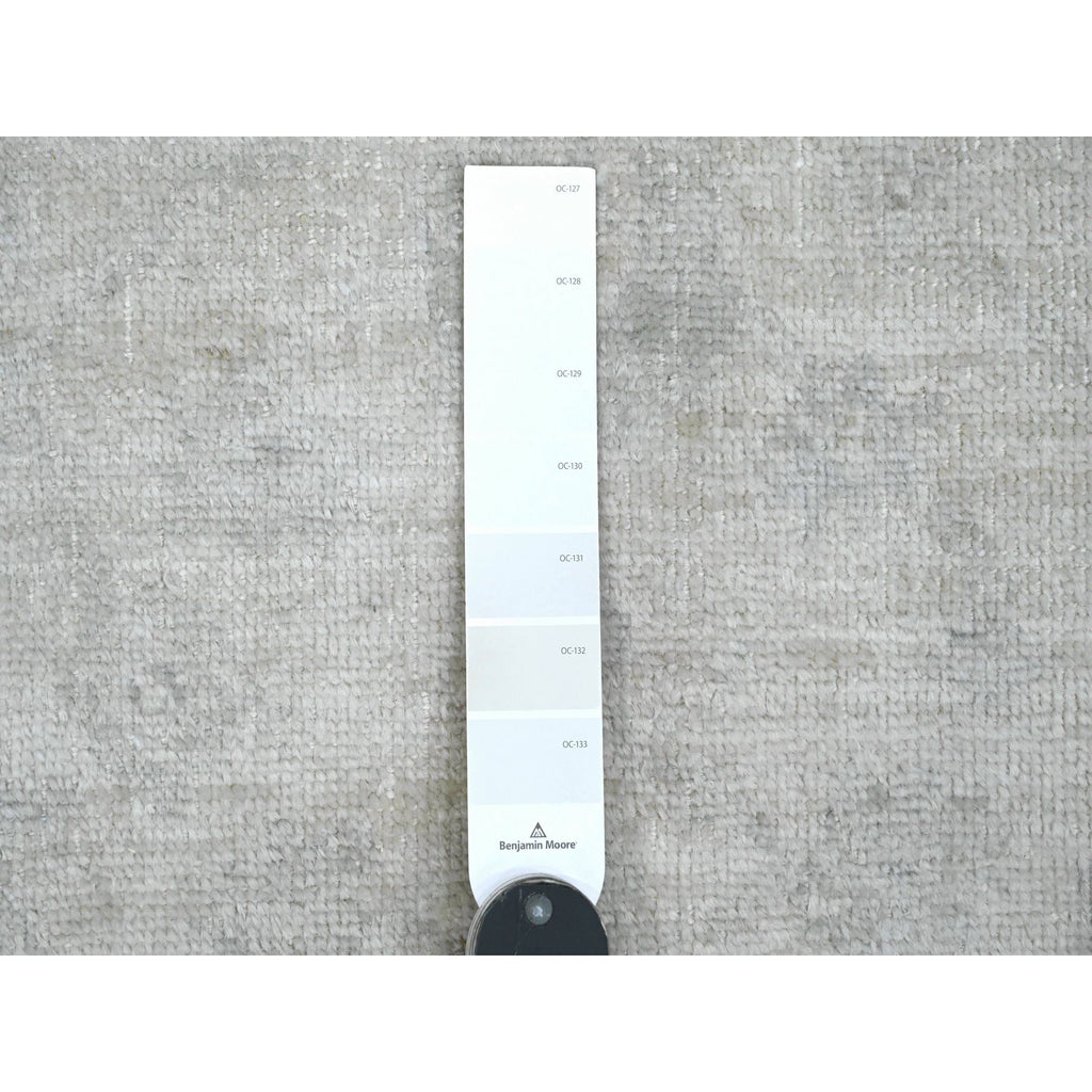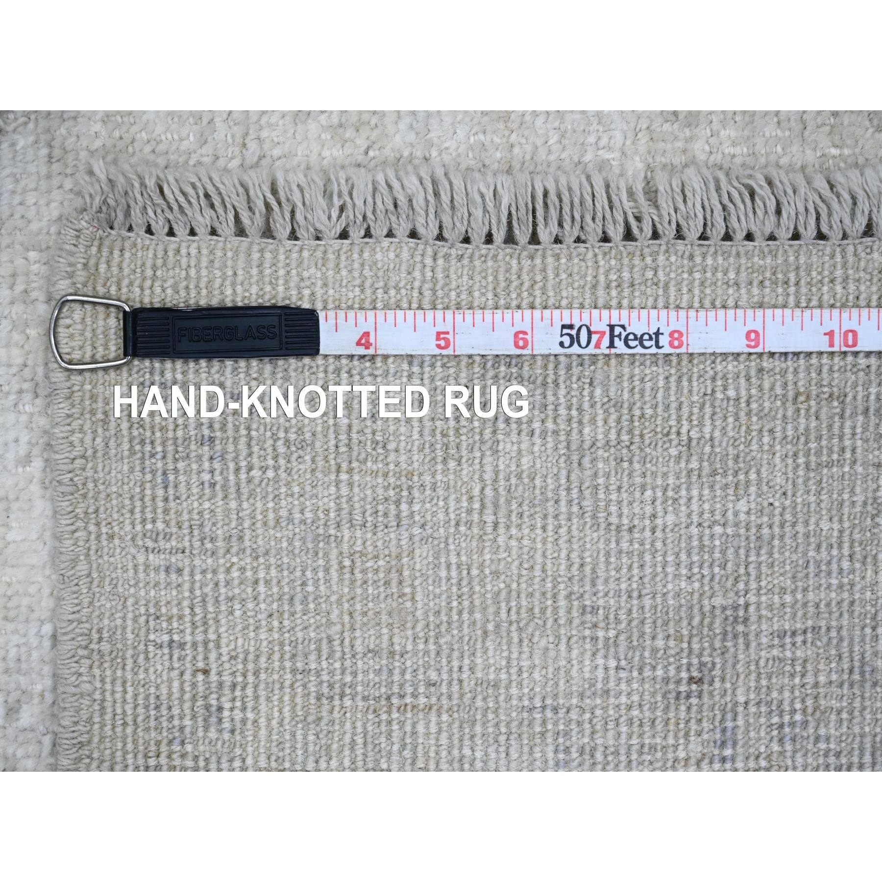 4'1"x19'8" Smoke White, Afghan Angora Oushak With Leaf Design, Hand Knotted, Natural Dyes, 100% Wool, Wide And Long Runner, Oriental Rug FWR125268