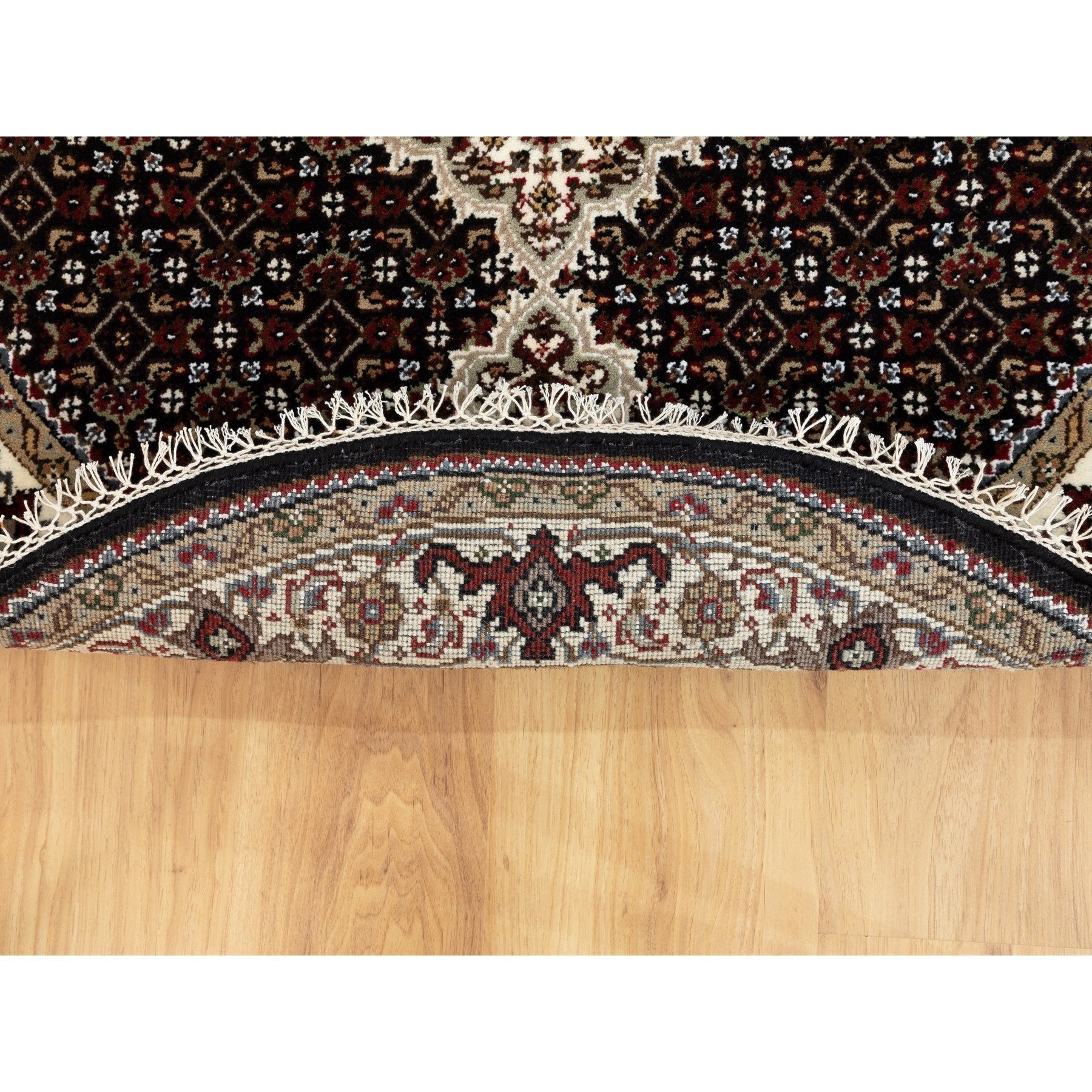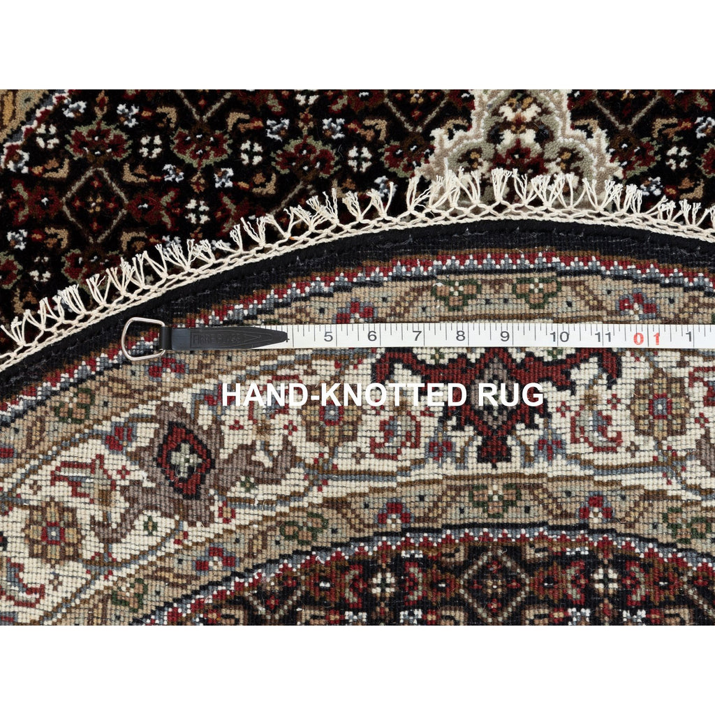 4'1"x4'1" Rich Black, 250 Kpsi Wool Tabriz Mahi With Fish Medallion Design, Hand Knotted, Round Oriental Rug FWR352110