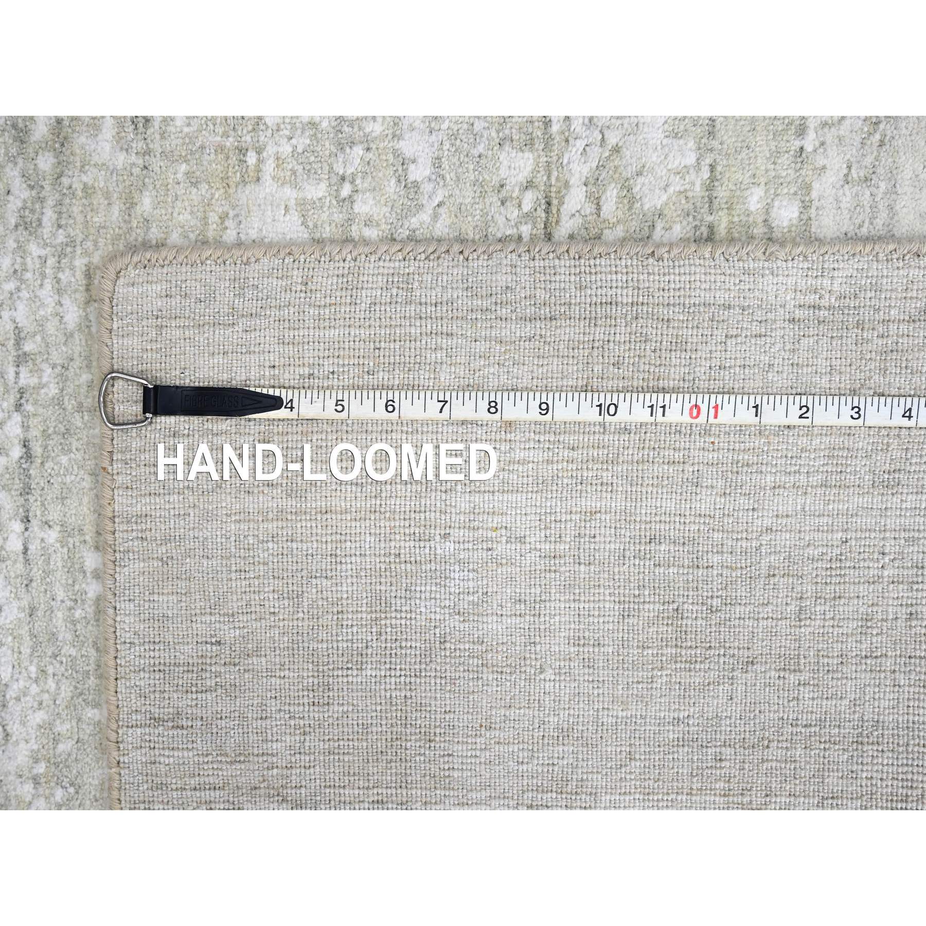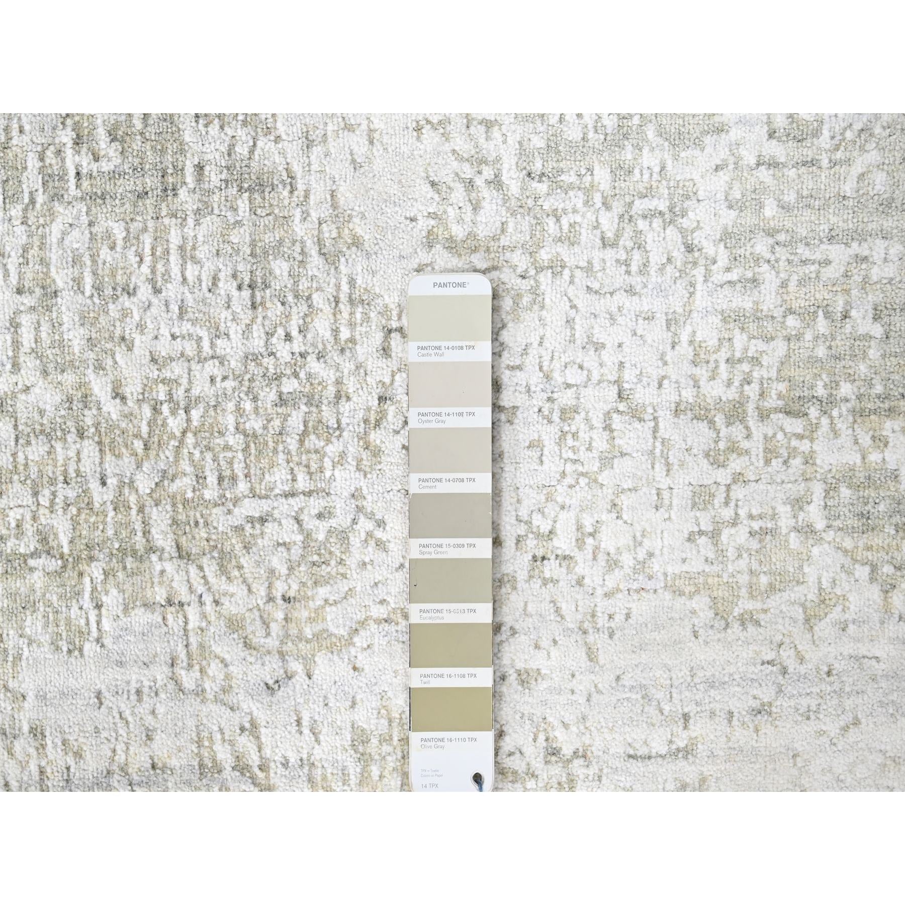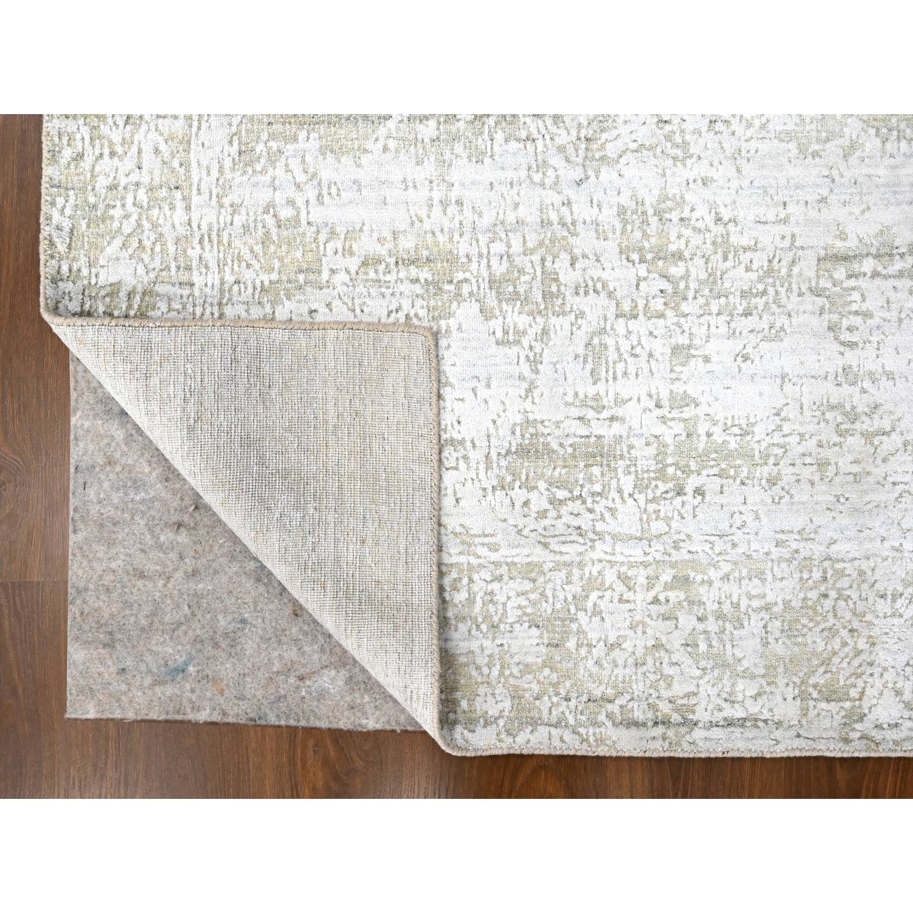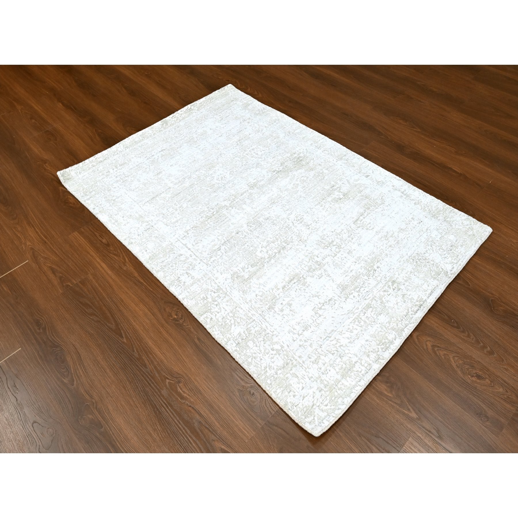 4'1"x5'10" Oyster Gray, Textured Pile, Modern Design, Hand Loomed, Wool And Plant Based Silk, Oriental Rug FWR61704