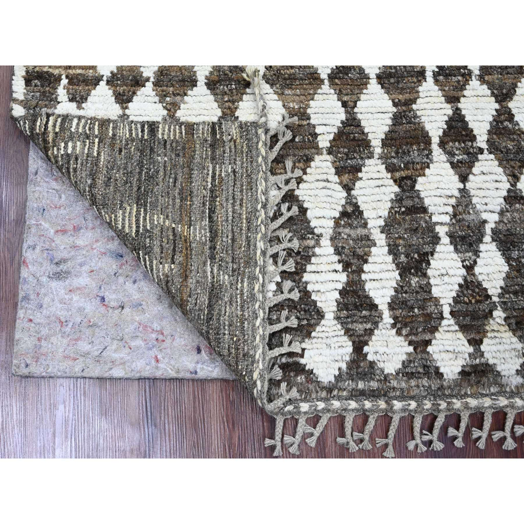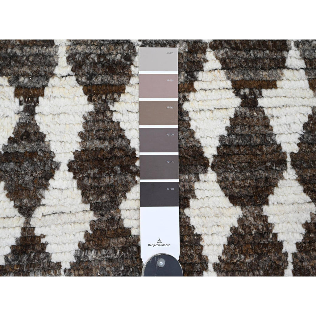 4'1"x5'6" Chocolate Brown, Moroccan Weave With Geometric Pattern, Soft Wool, Hand Knotted, Tone On Tone, Textured Pile, Oriental Rug FWR124470