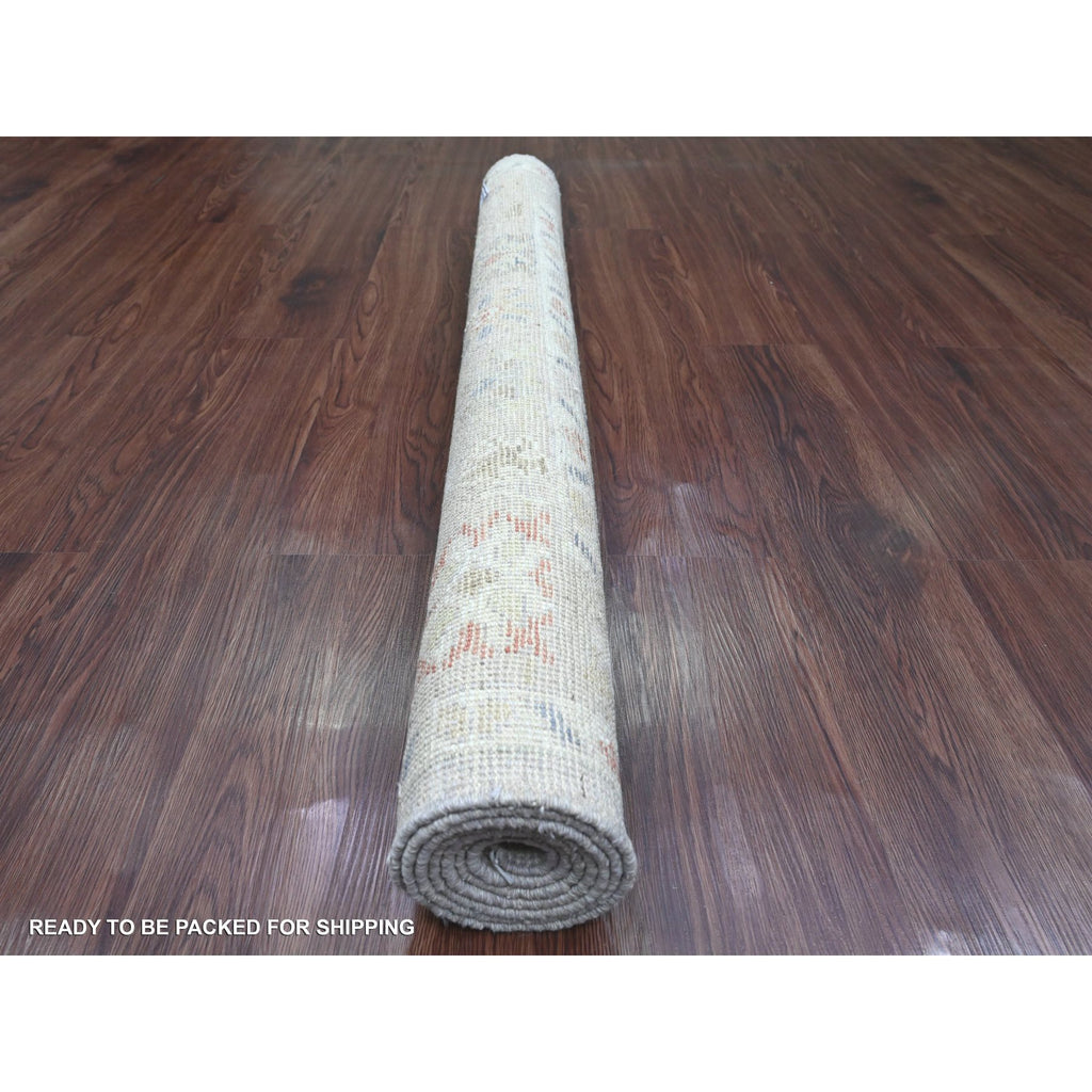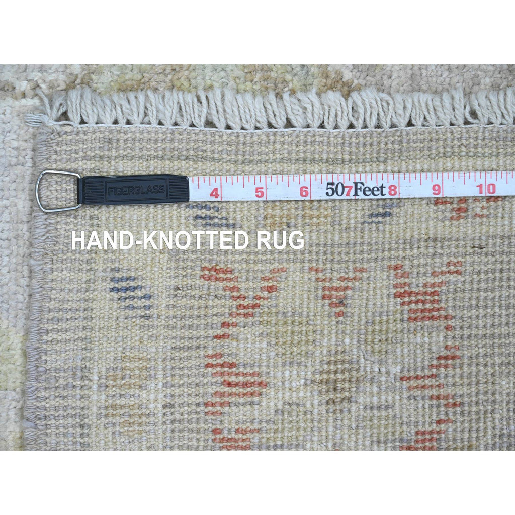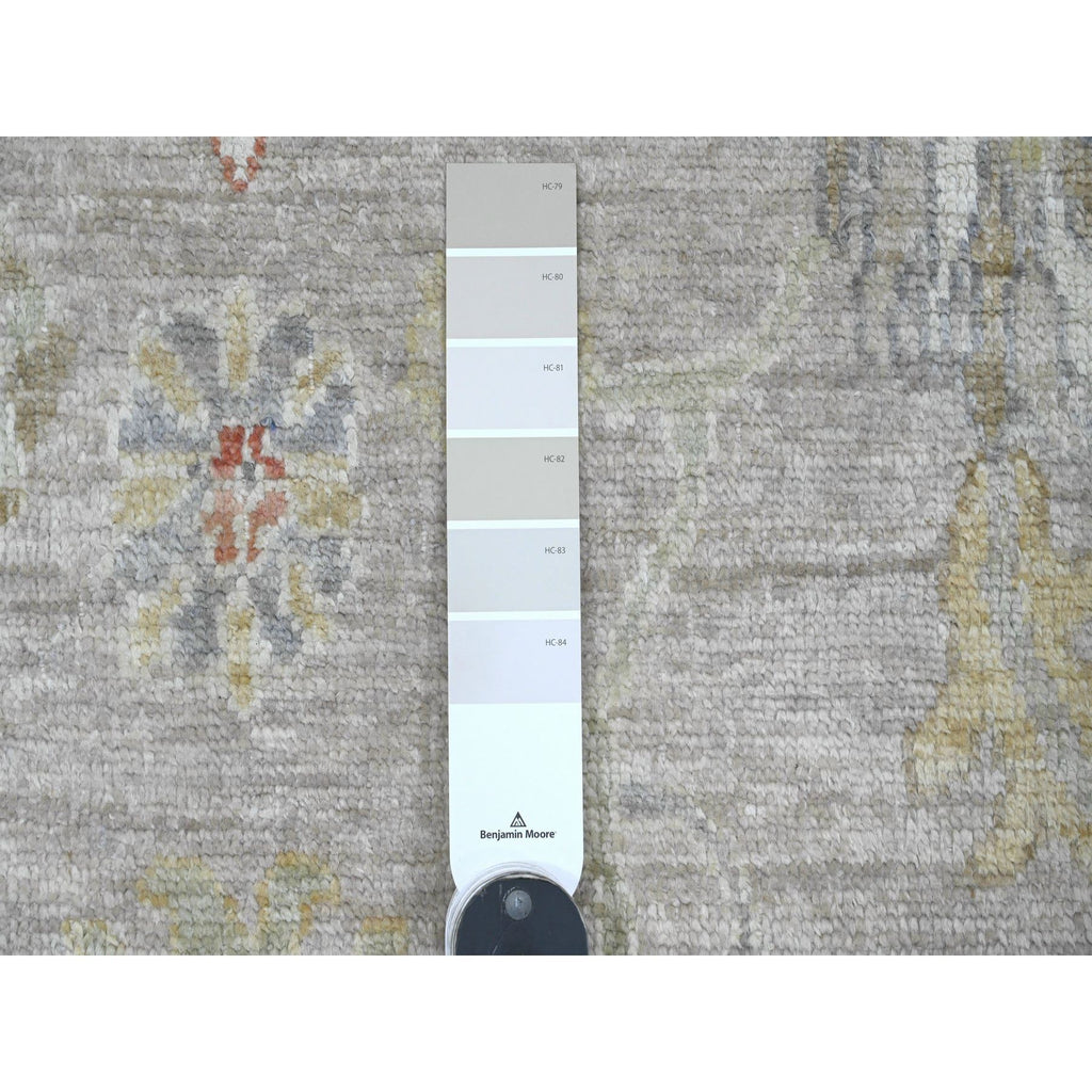4'1"x5'9" Stone Gray, Hand Knotted, Afghan Angora Oushak With Leaf Design, Vegetable Dyes, 100% Wool, Oriental Rug FWR123576