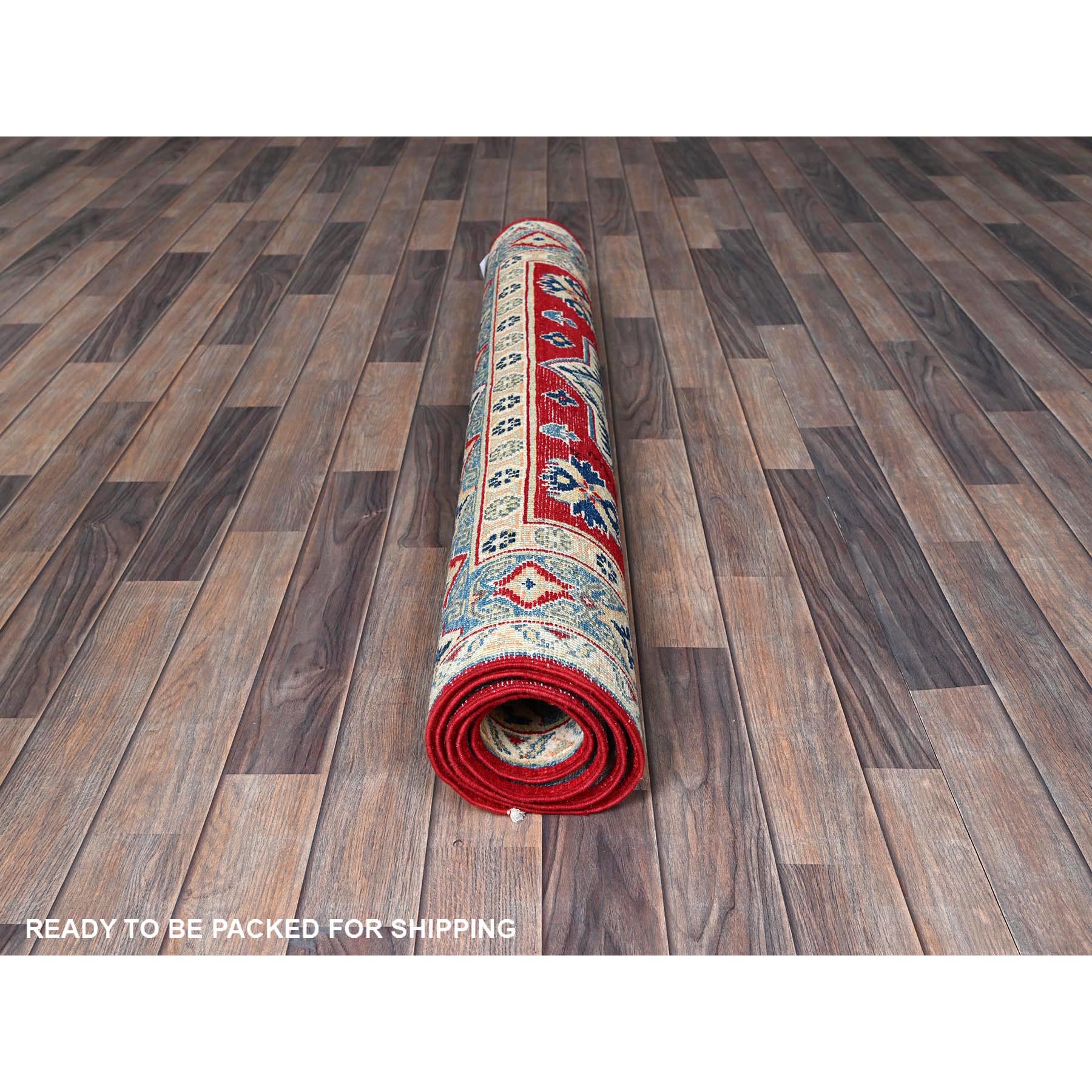 4'1"x6'1" Berry Red, Kazak With Geometric Medallions Design, Vegetable Dyes, Hand Knotted, Denser Weave, Soft And Vibrant Wool, Oriental Rug FWR2166