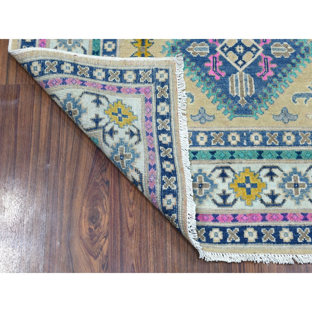 4'1"x6'1" Colorful Beige Fusion Kazak Pure Wool Hand Knotted Oriental Rug FWR324918