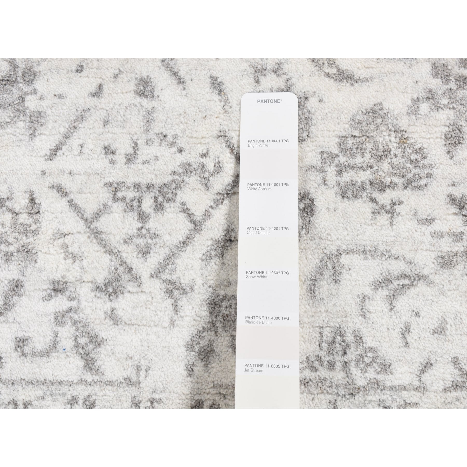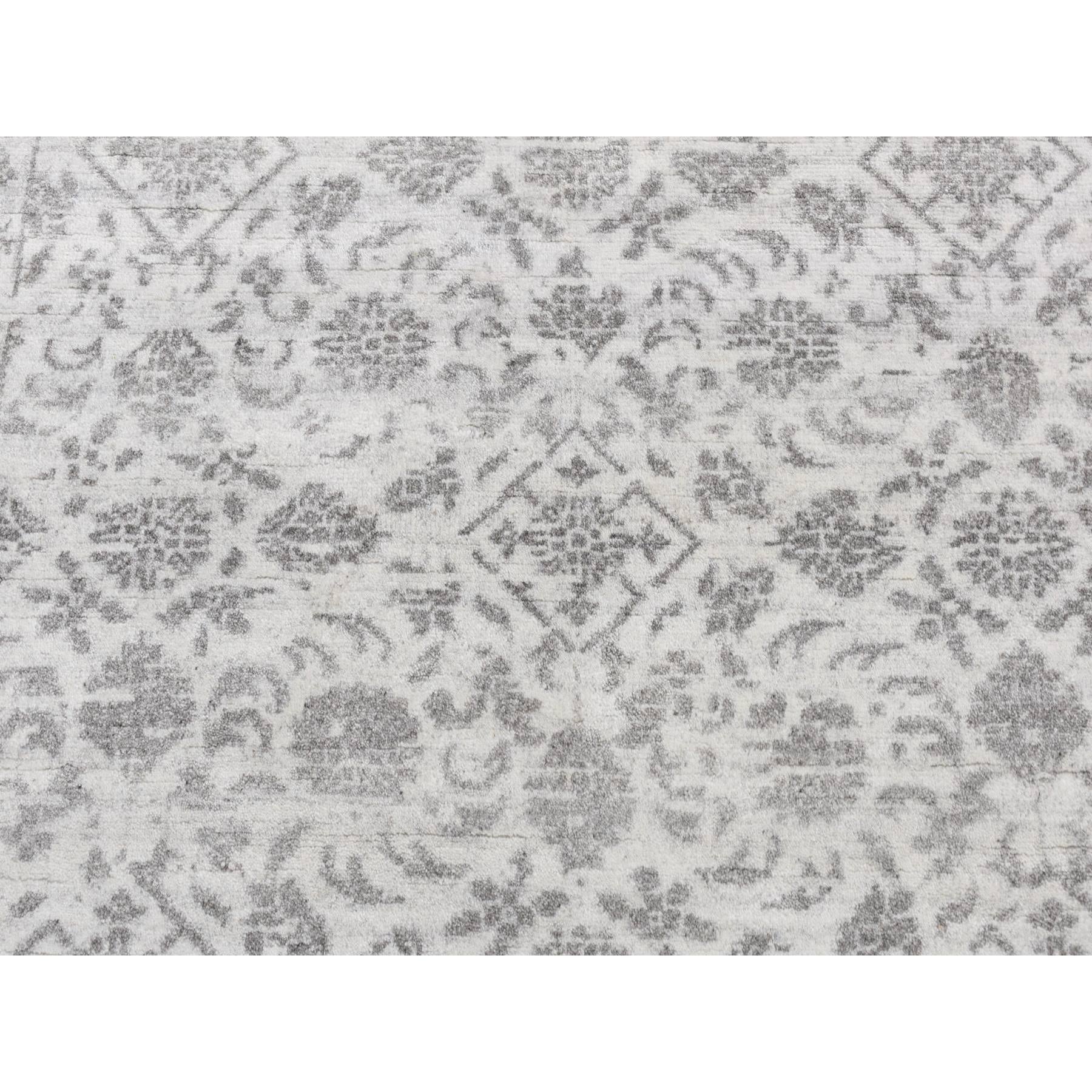 4'1"x6'2" Ivory, Broken And Erased Tabriz Fish Mahi Design, Wool And Silk, Hand Knotted, Tone On Tone, Oriental Rug FWR523338