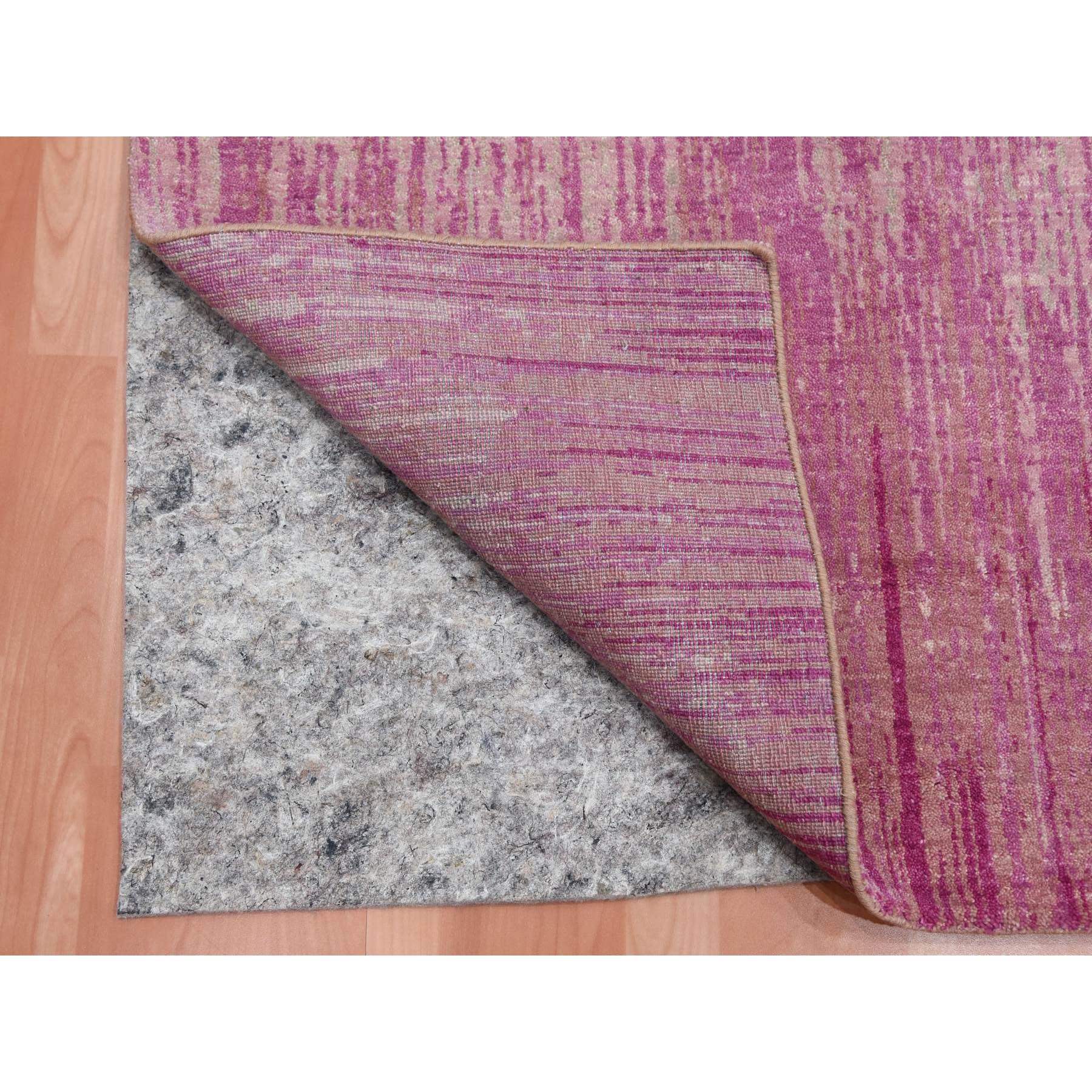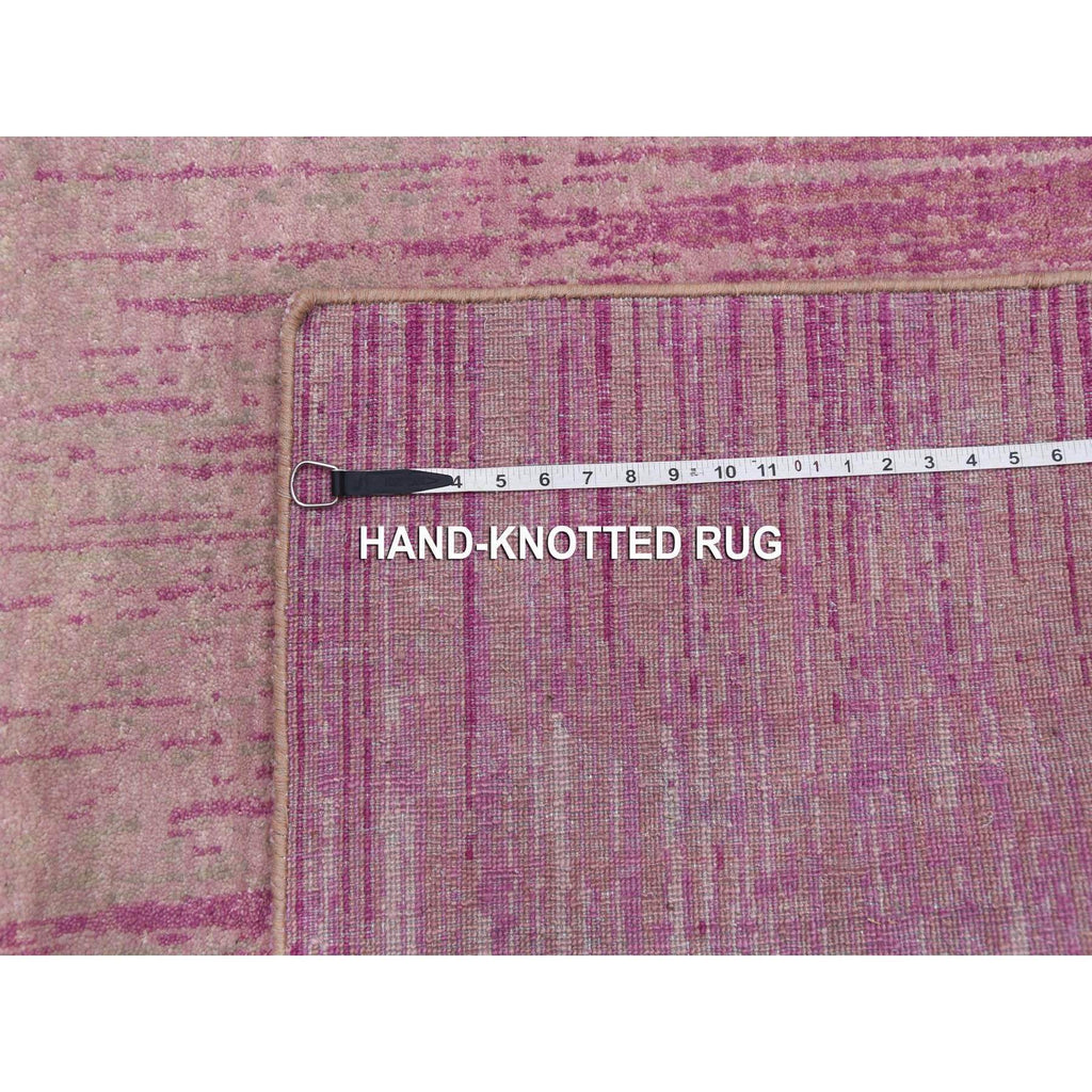 4'1"x6'2" Natural Wool Pink Vertical Ombre Design Hand Knotted Oriental Rug FWR450126