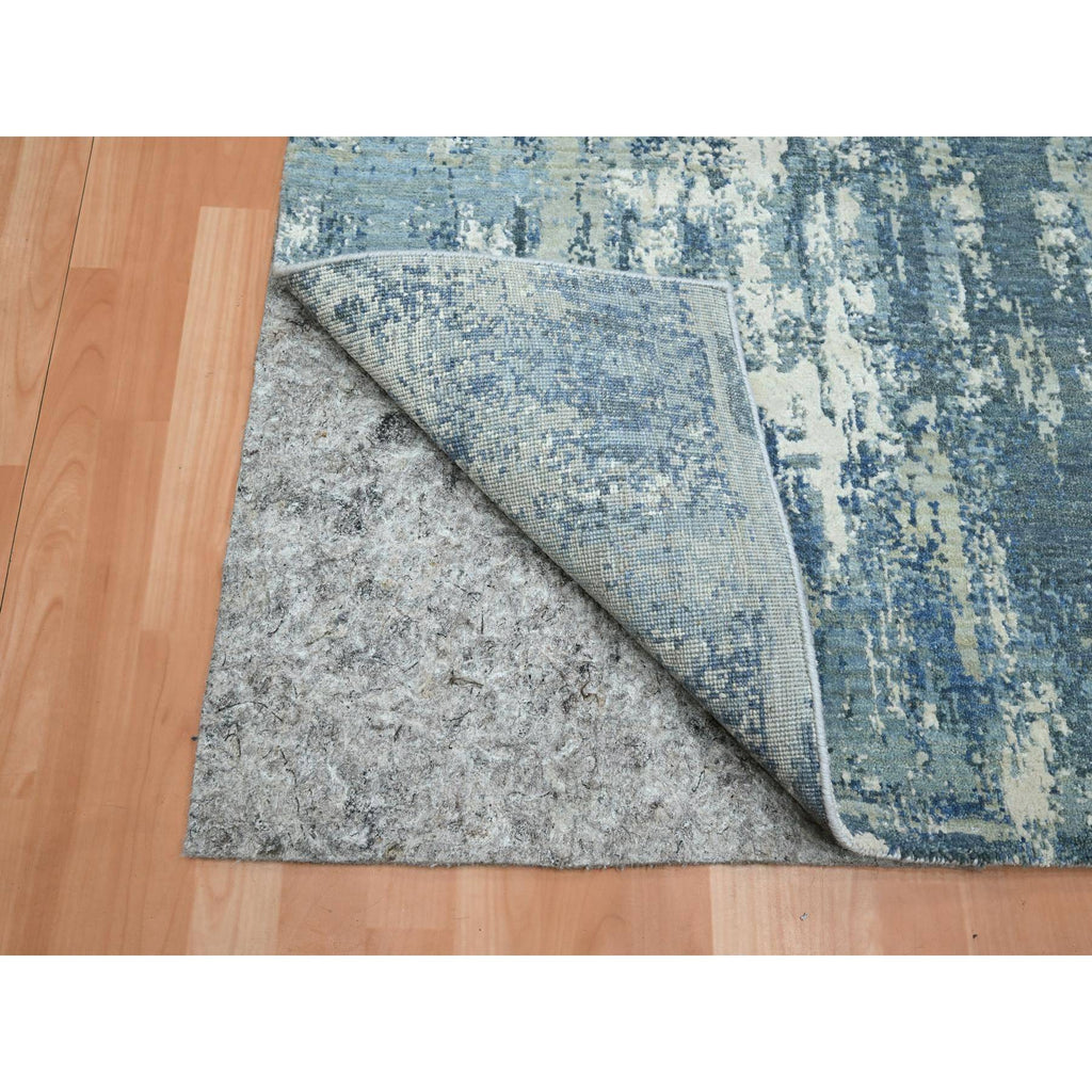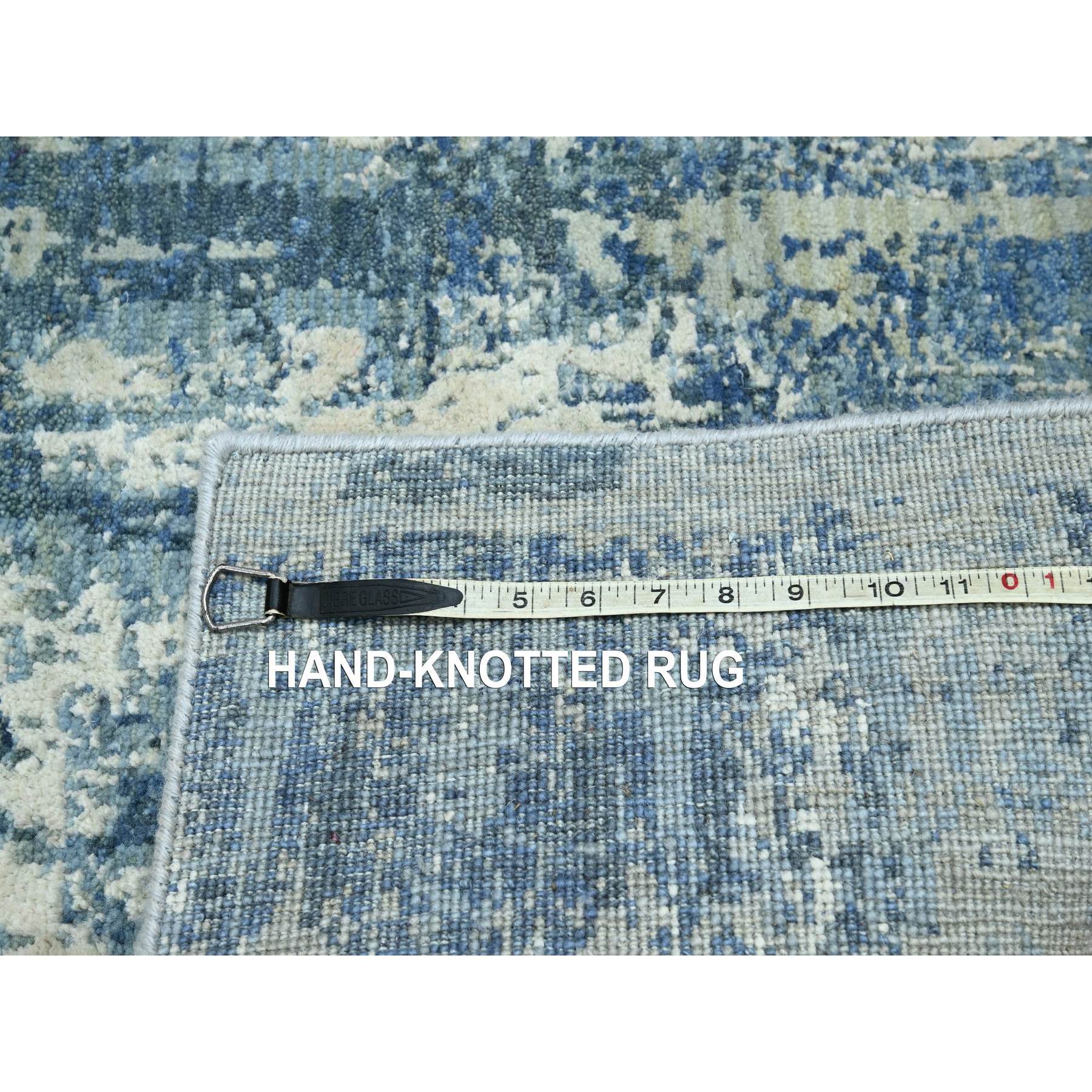 4'1"x6'2" Sapphire Blue, Hand Knotted, Abstract Design, Denser Weave, Hi-low Pile, Wool And Real Silk, Oriental Rug FWR453210