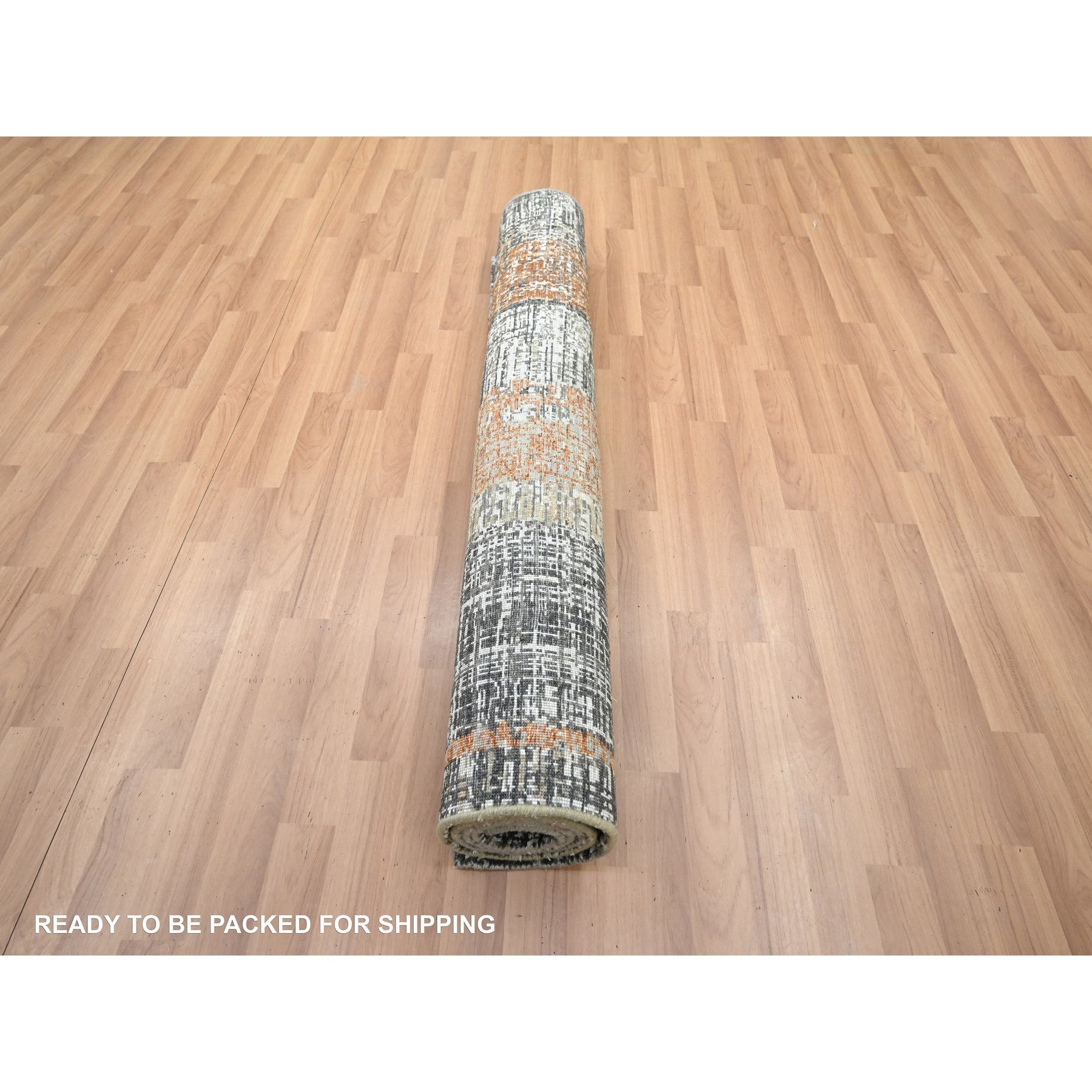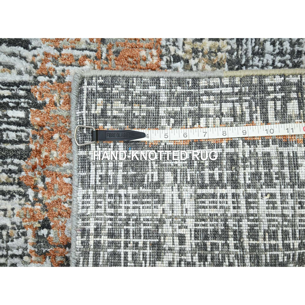 4'1"x6'3" Charcoal Gray With Rust, Densely Woven, Hand Knotted, Abstract With Galaxy Design, Persian Knot, Pure Wool, Oriental Rug FWR499074