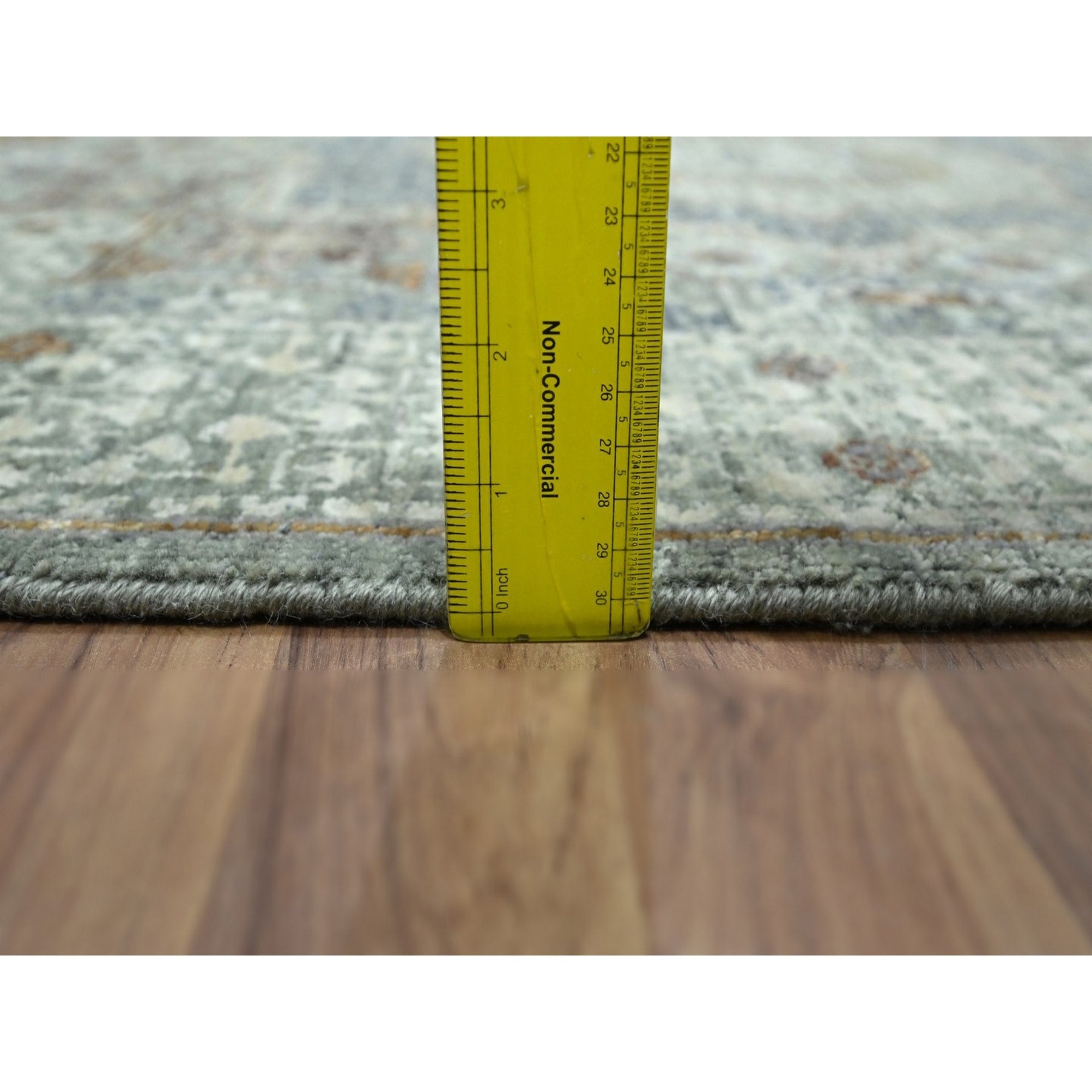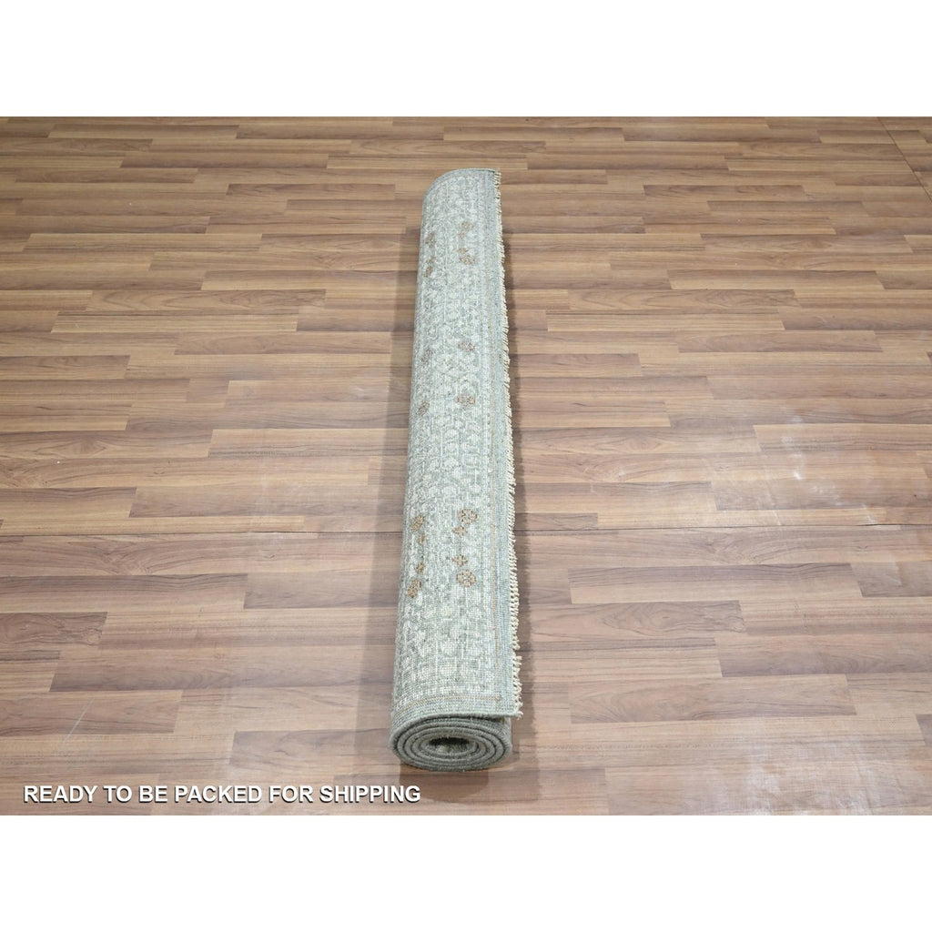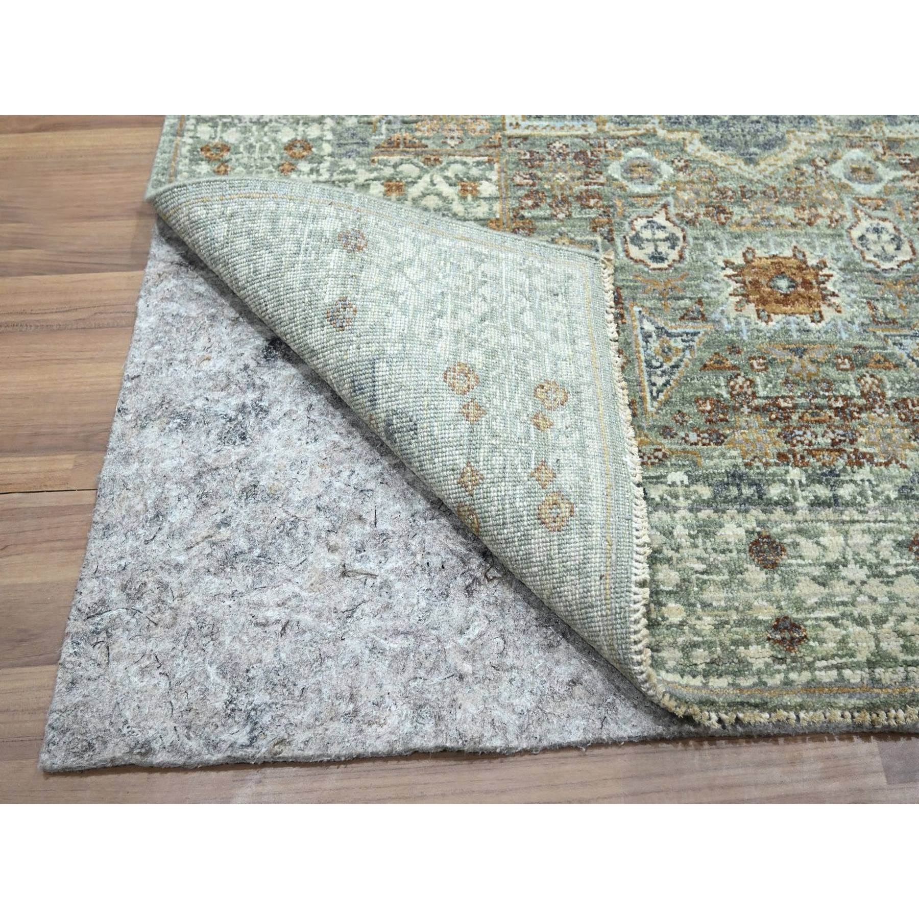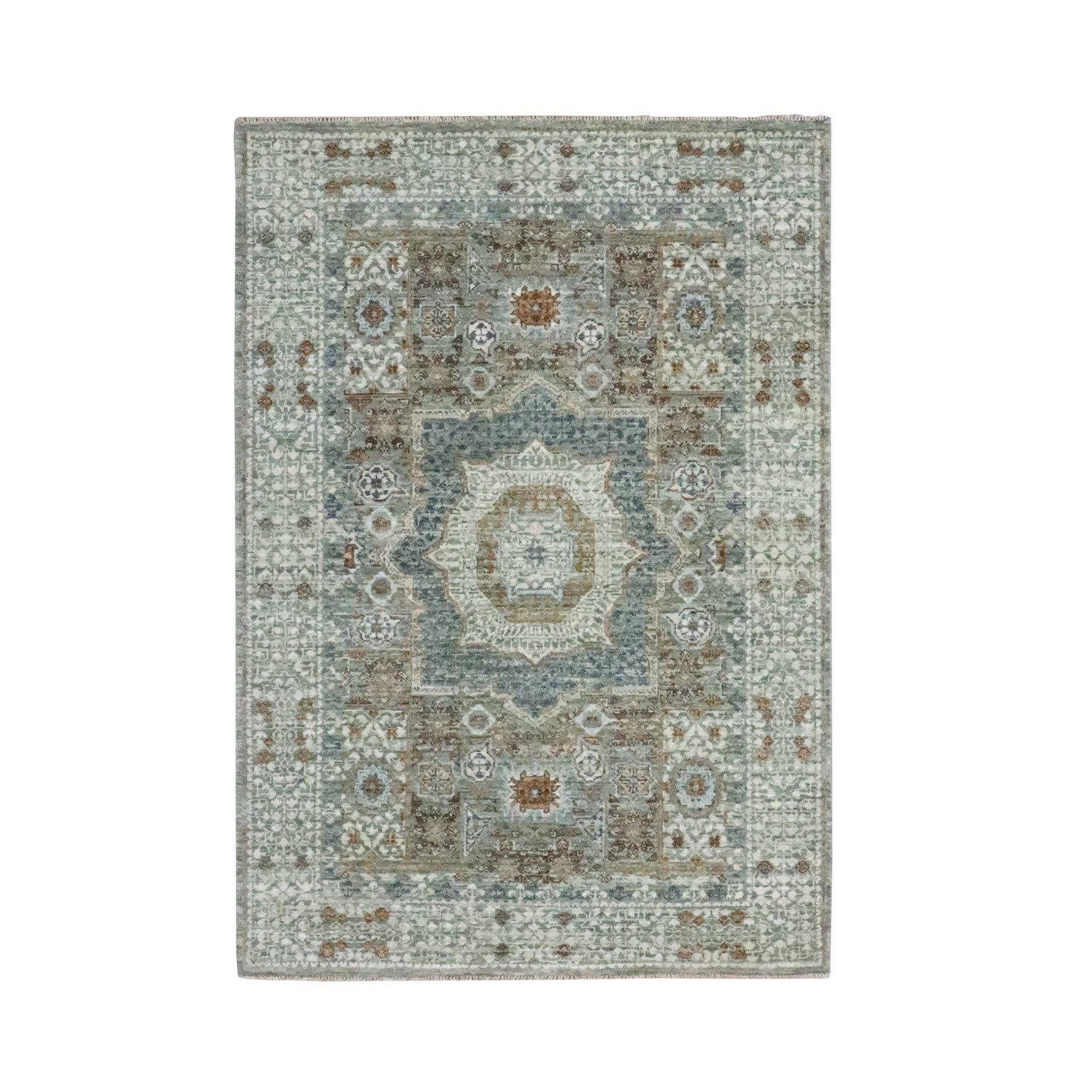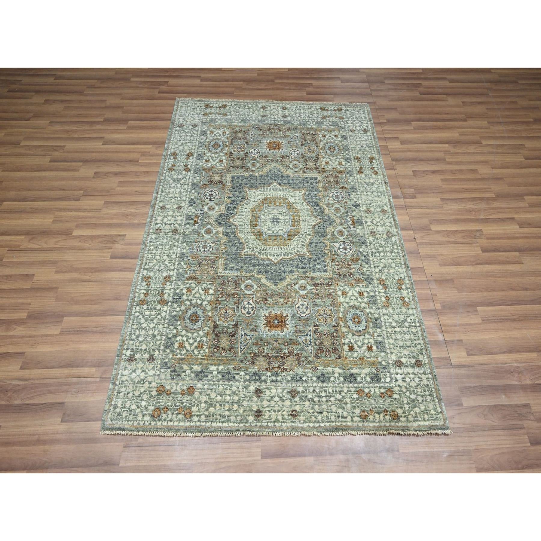 4'1"x6' Sage Green, Pre Historic 14th Century Influence, Mamluk Design, Natural Dyes, Hand Knotted, Pure Wool, Oriental Rug FWR460830