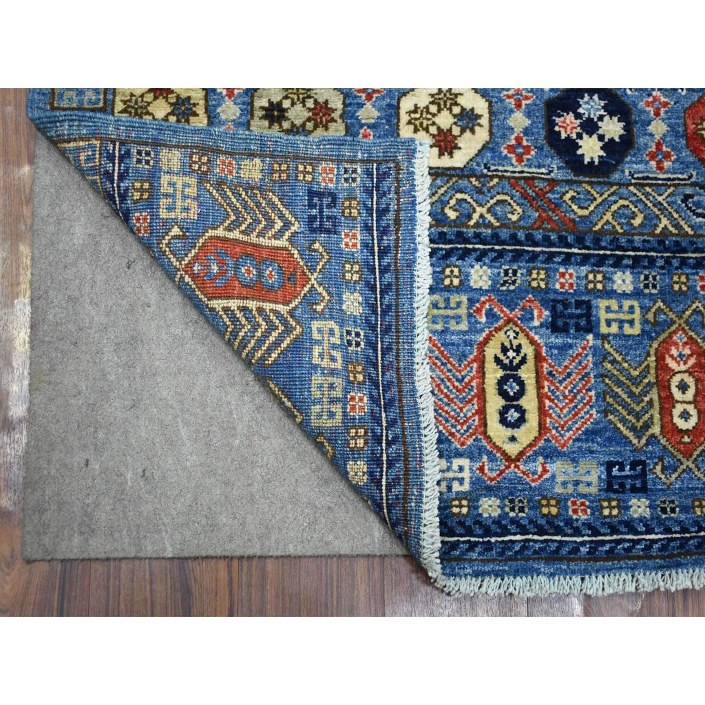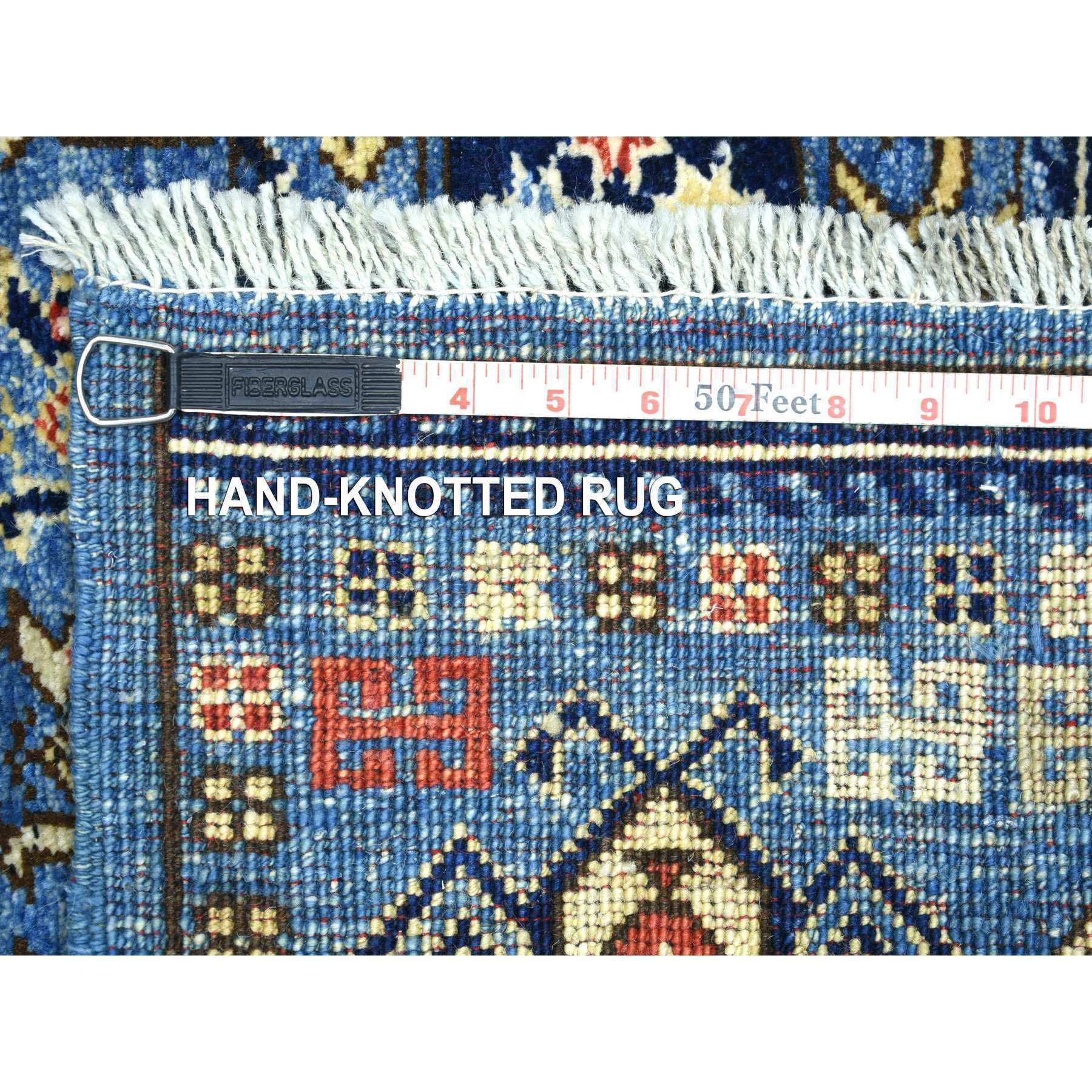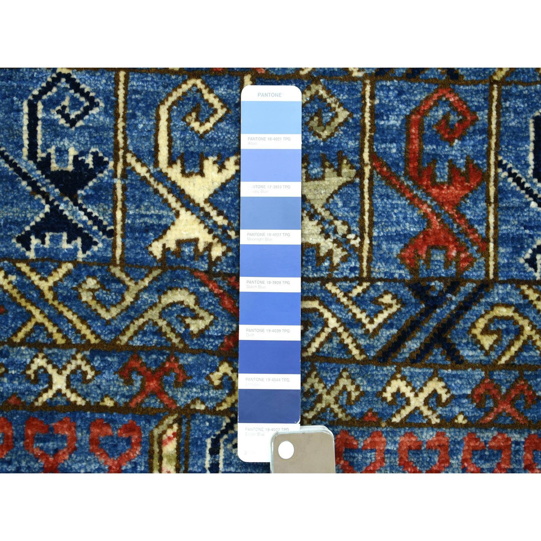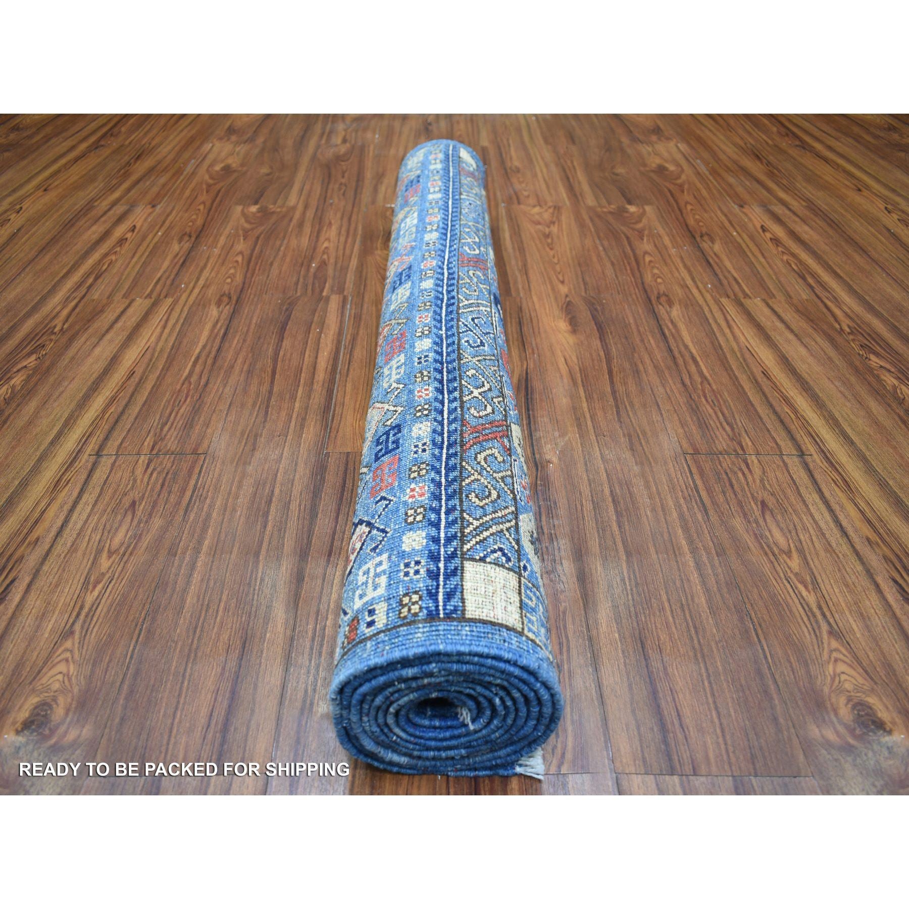 4'1"x9'10" Denim Blue, Hand Knotted Afghan Ersari With Prayer Design, Natural Dyes Dense Weave Soft Wool, Wide Runner Oriental Rug FWR431964