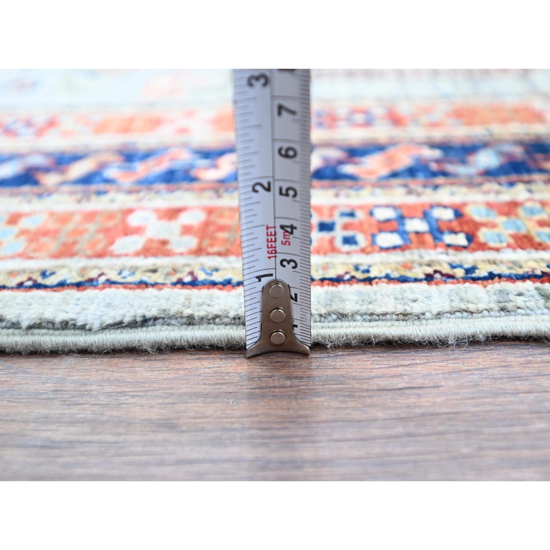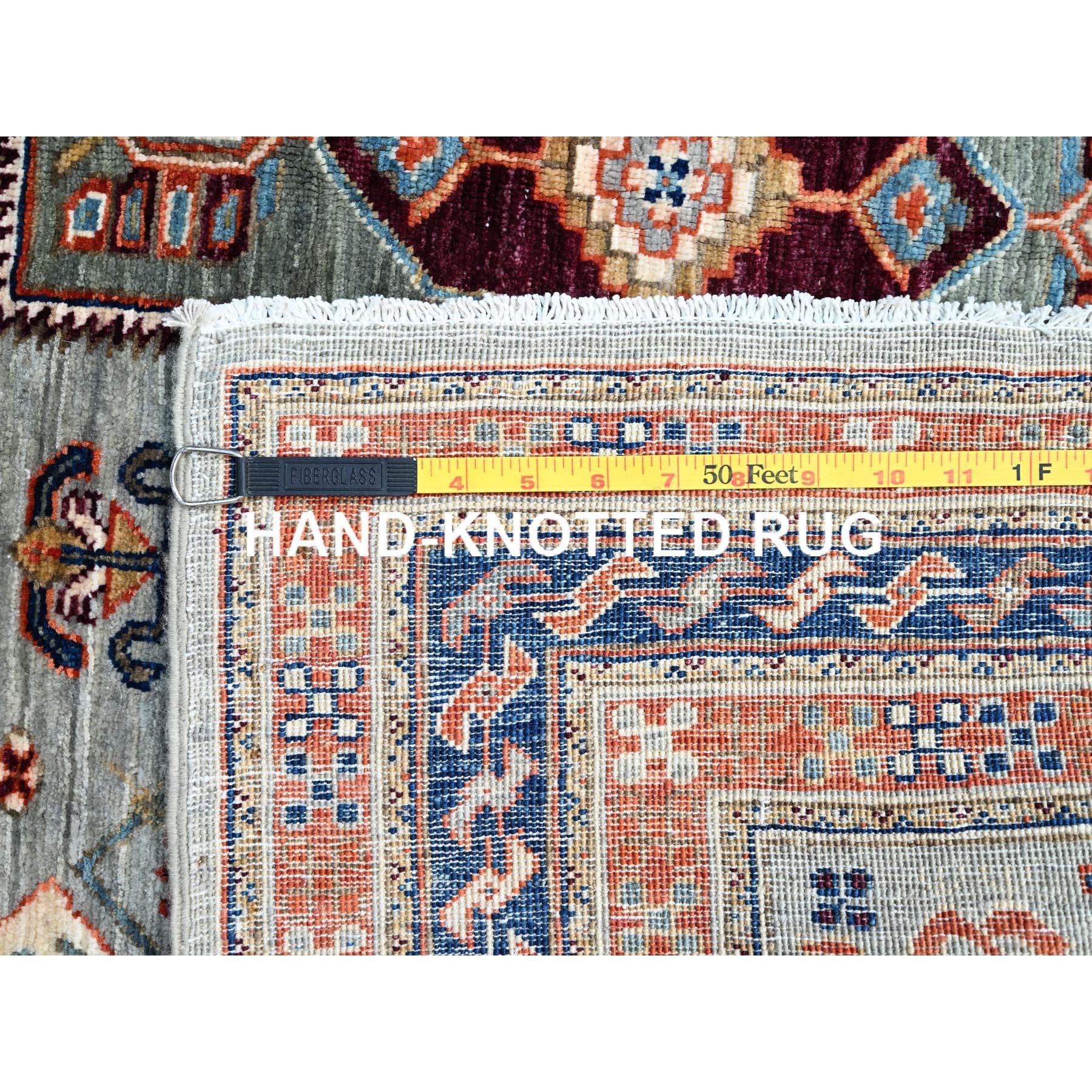 4'1"x9'10" Misty Gray, Natural Dyes, Hand Knotted Densely Woven, Pure Wool, Armenian Inspired Caucasian Design, 200 Kpsi, Runner Oriental Rug FWR876