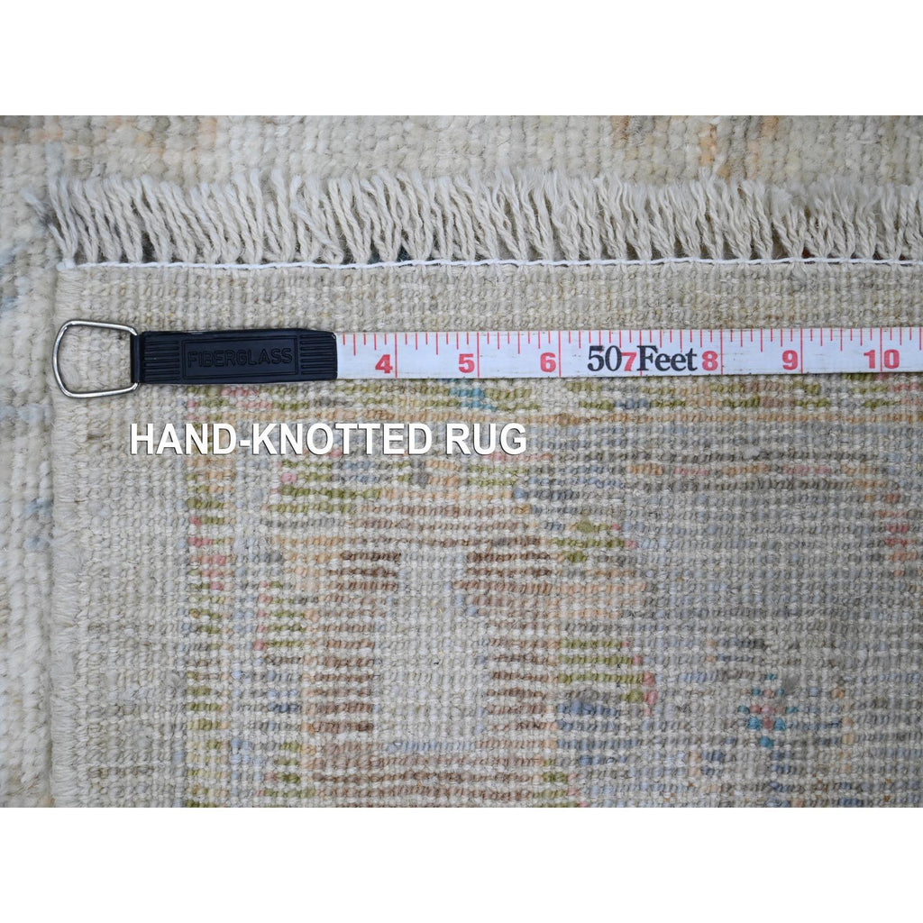 4'1"x9'6" Chiffon White, Hand Knotted, Afghan Angora Oushak With Colorful Leaf Design, Vegetable Dyes, 100% Wool, Wide Runner, Oriental Rug FWR120456