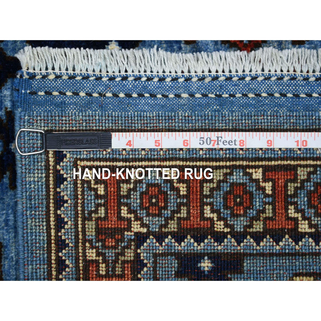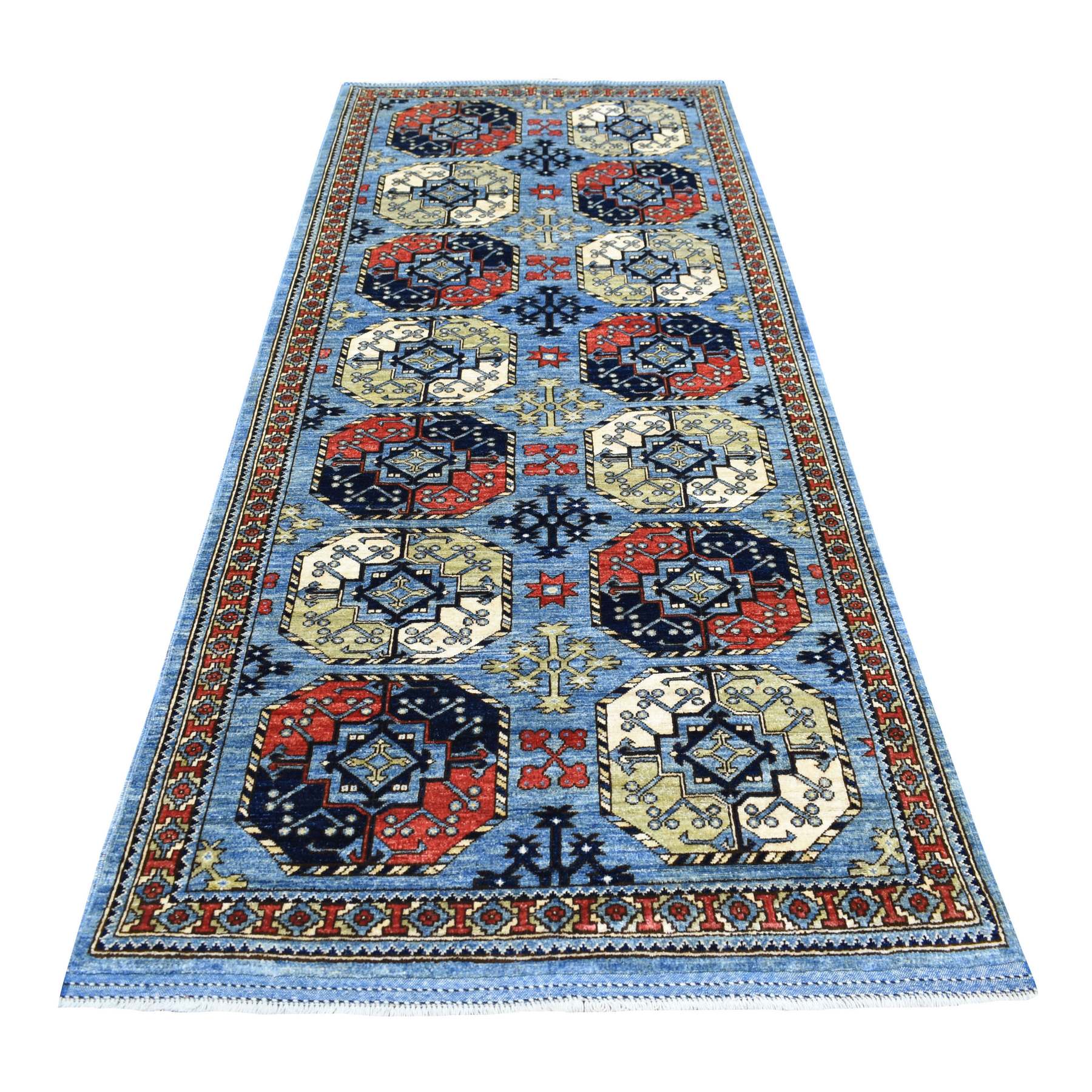 4'1"x9'9" Extra Soft Wool Hand Knotted Blue Afghan Ersari With Hutchlu Parda Design Oriental Wide Runner Rug FWR422352