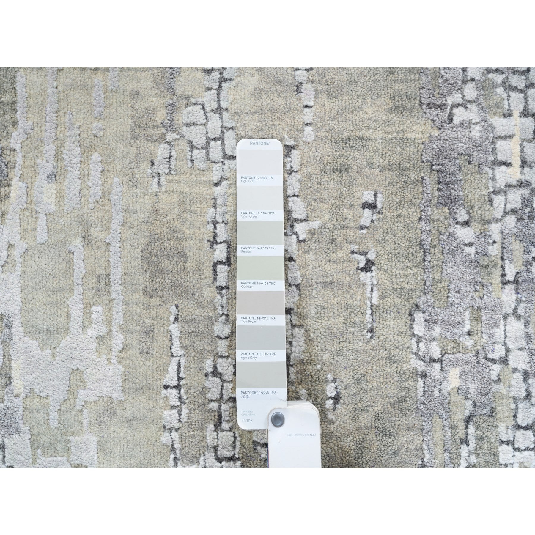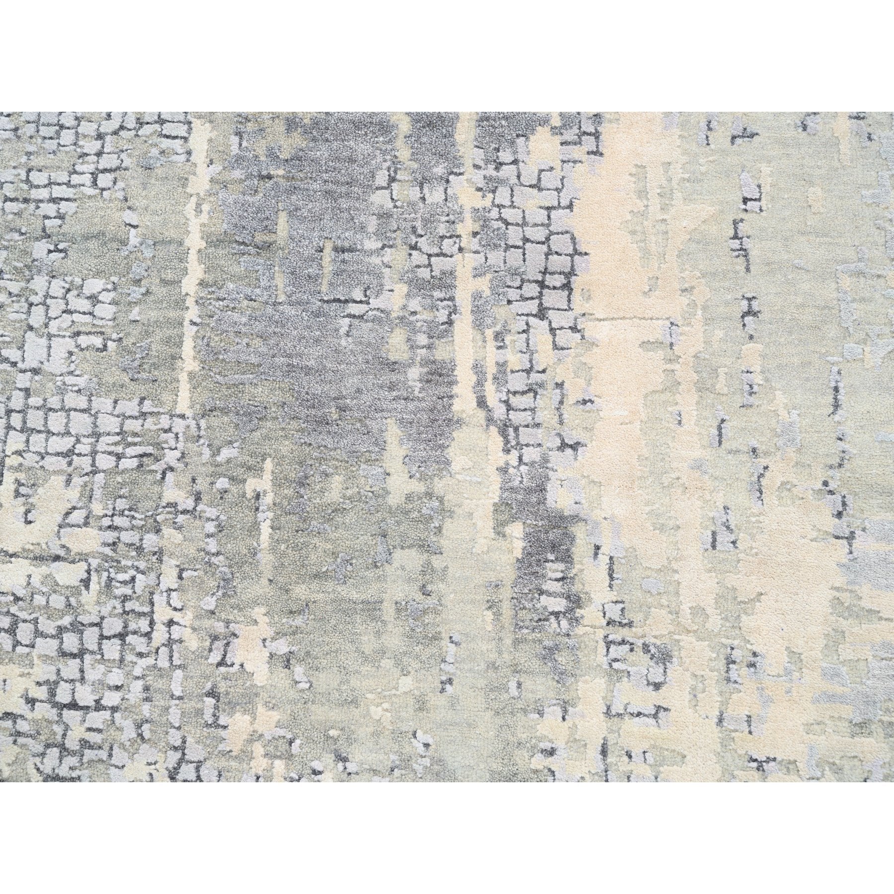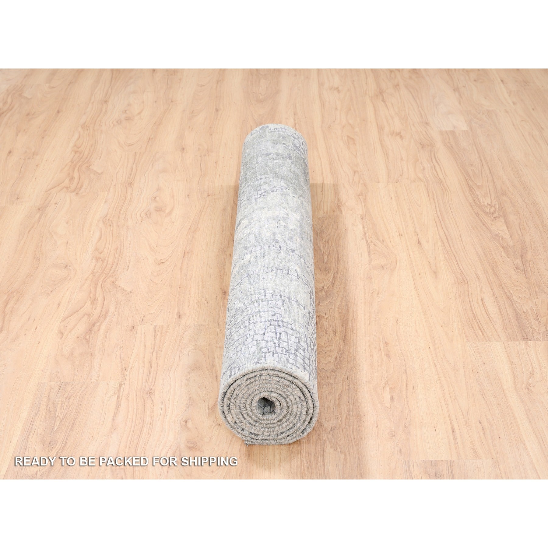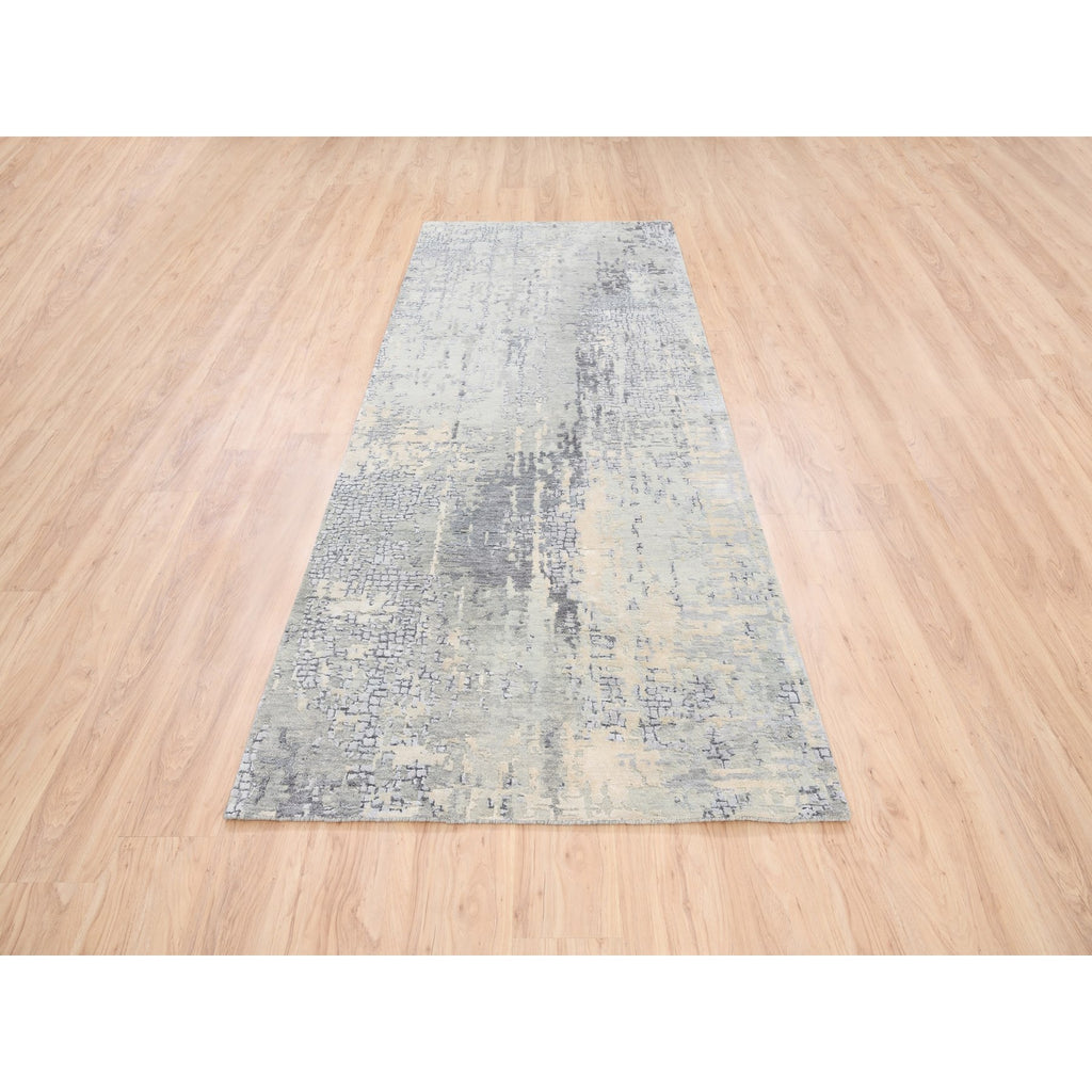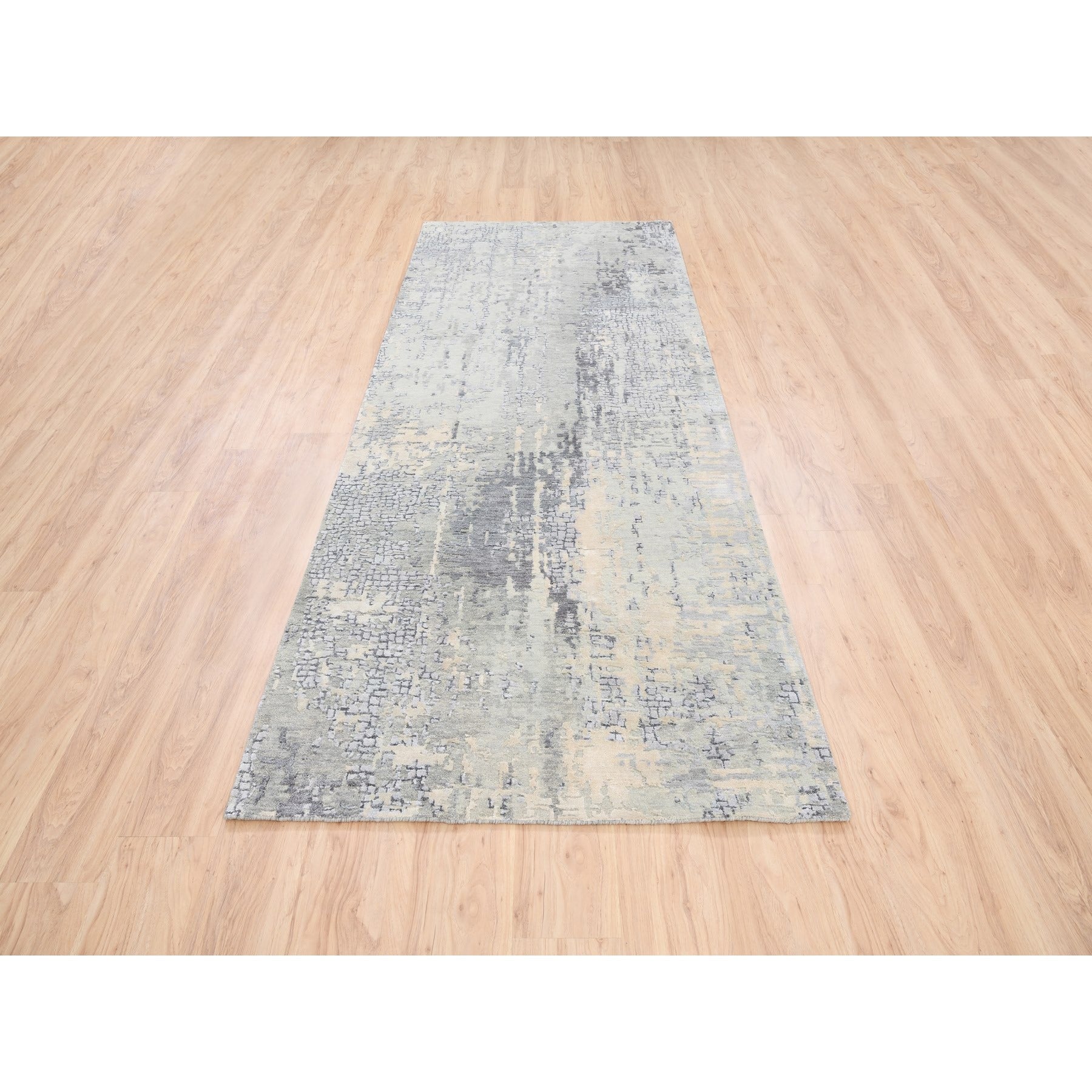 4'1"x9'9" Wool And Silk Abstract With Mosaic Design Gray Hand Knotted Persian Knot Oriental Runner Rug FWR378372