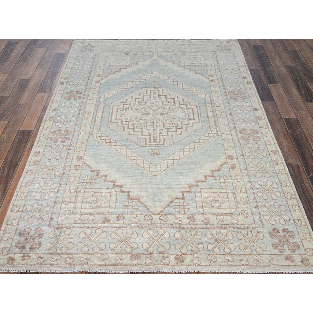 4'10"x6'10" Beau Blue, Hand Knotted, Turkish Knot, Zero Pile, Sheared Low, Anatolian Village Design, Pure Wool, Oriental Rug FWR12648