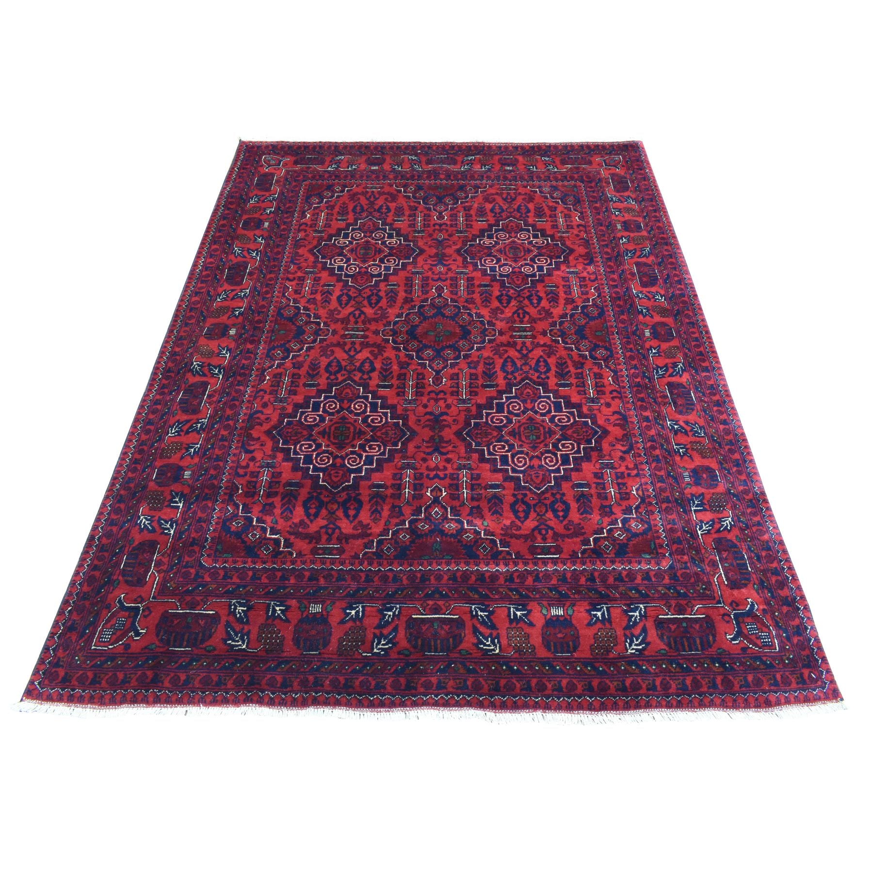 4'10"x6'7" Deep And Saturated Red Hand Knotted With Tribal Design, Soft And Shiny Wool Afghan Khamyab Oriental Rug FWR436662