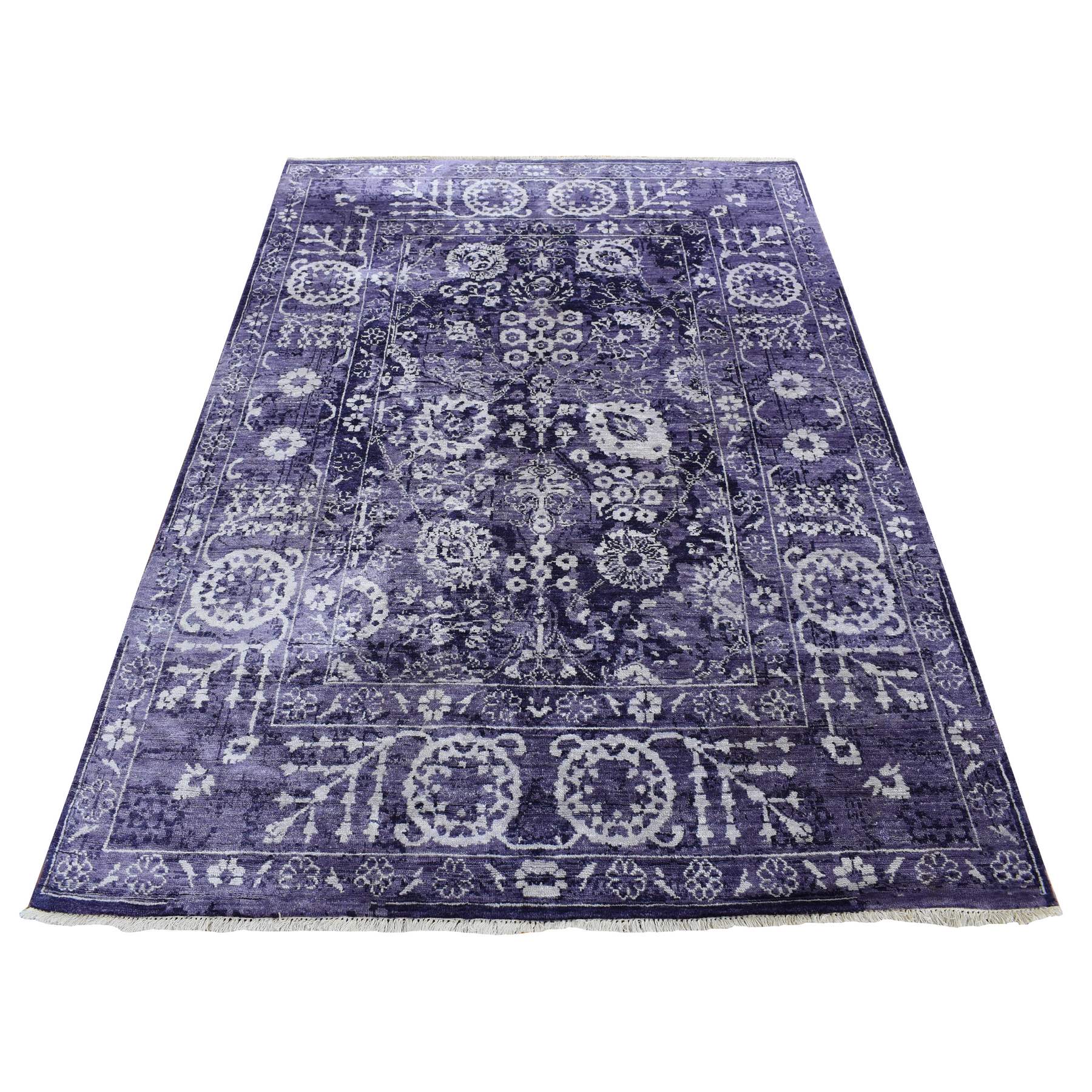 4'10"x6'8" Medium Purple, Transitional Tabriz, Wool And Silk, Hand Knotted, Oriental Rug FWR485448