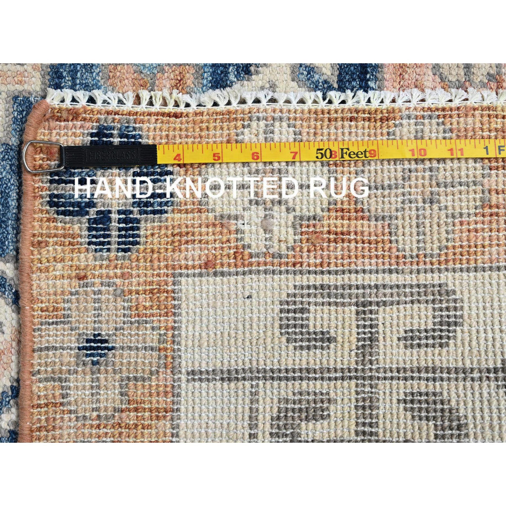 4'10"x6'9" Peach Color With Imperial Blue, Turkish Knot, Zero Pile, Sheared Low, Anatolian Village Design, Hand Knotted, Pure Wool, Oriental Rug FWR12654