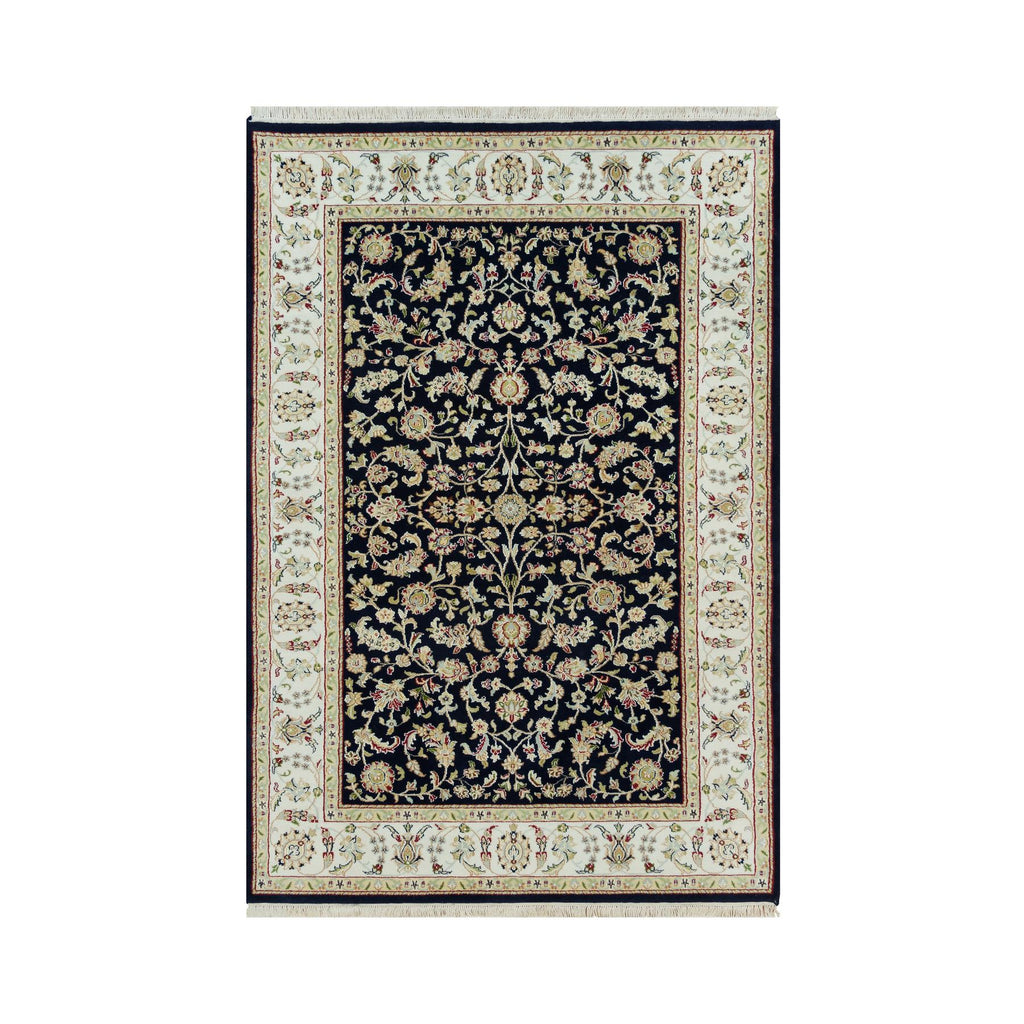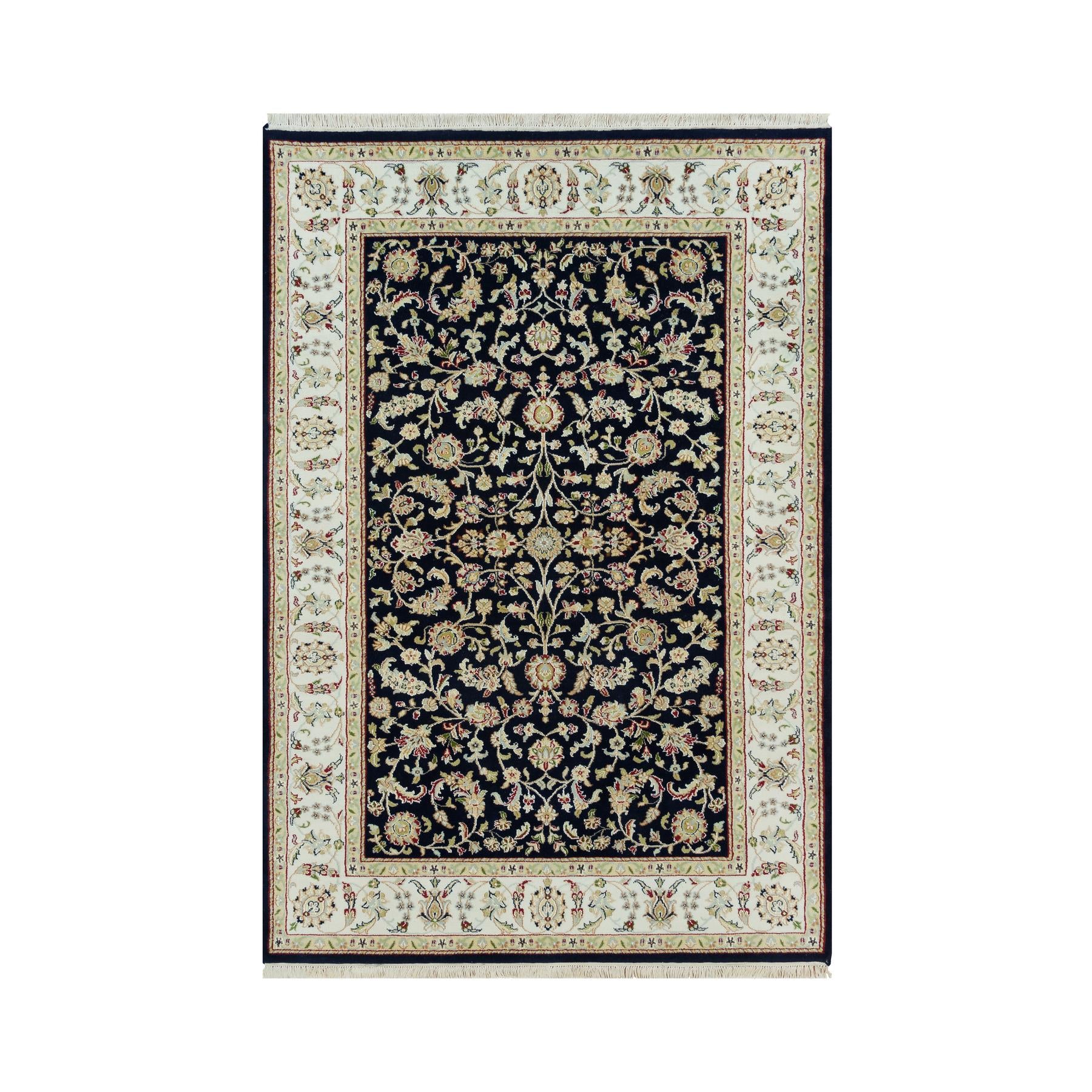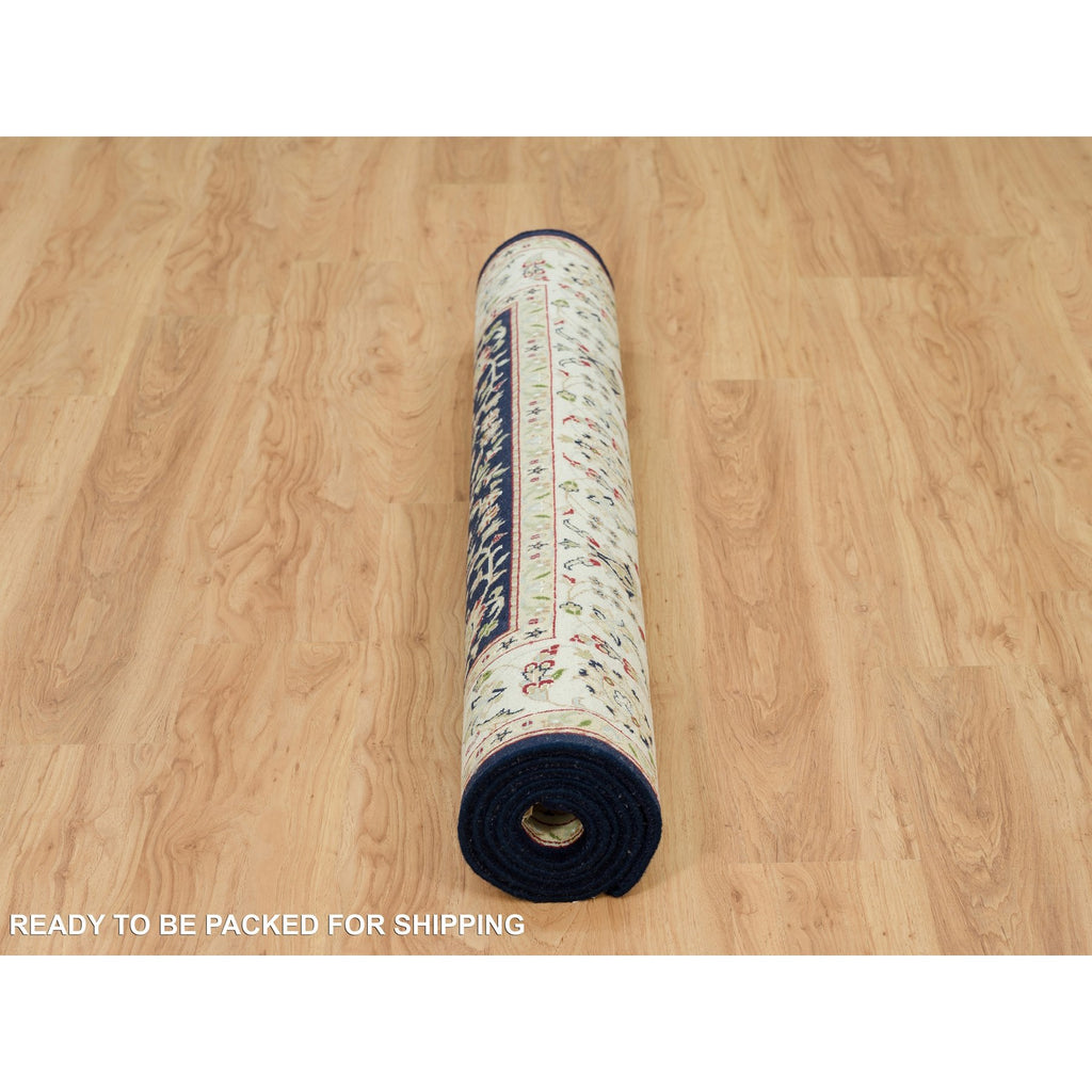 4'10"x7'2" Ombre Blue, Hand Knotted, Nain With All Over Flower Design, 250 Kpsi, Wool And Silk, Oriental Rug FWR541848