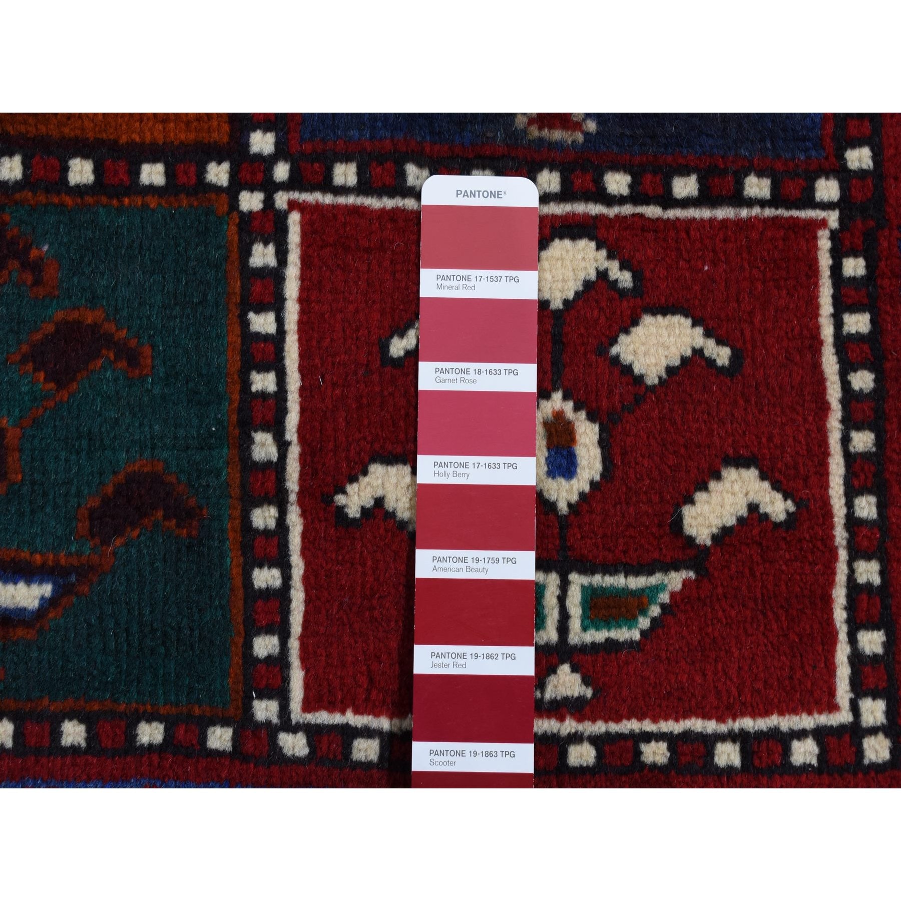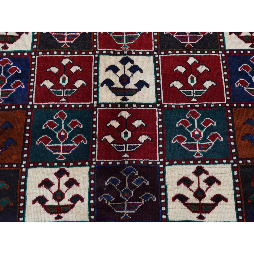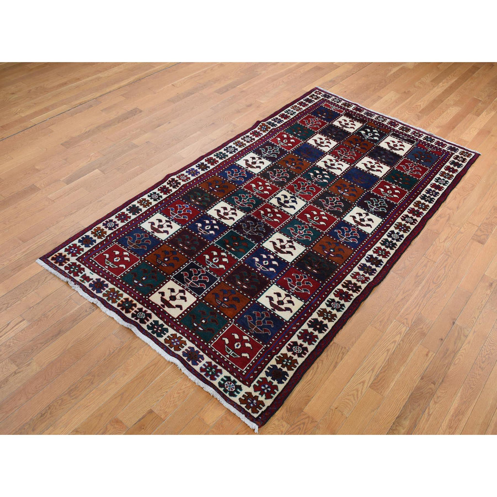 4'10"x9'2" Carmine Red, Semi Antique Persian Bakhtiari, Garden Block Design, Pure Wool, Hand Knotted, Oriental Rug FWR525312