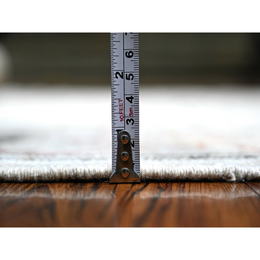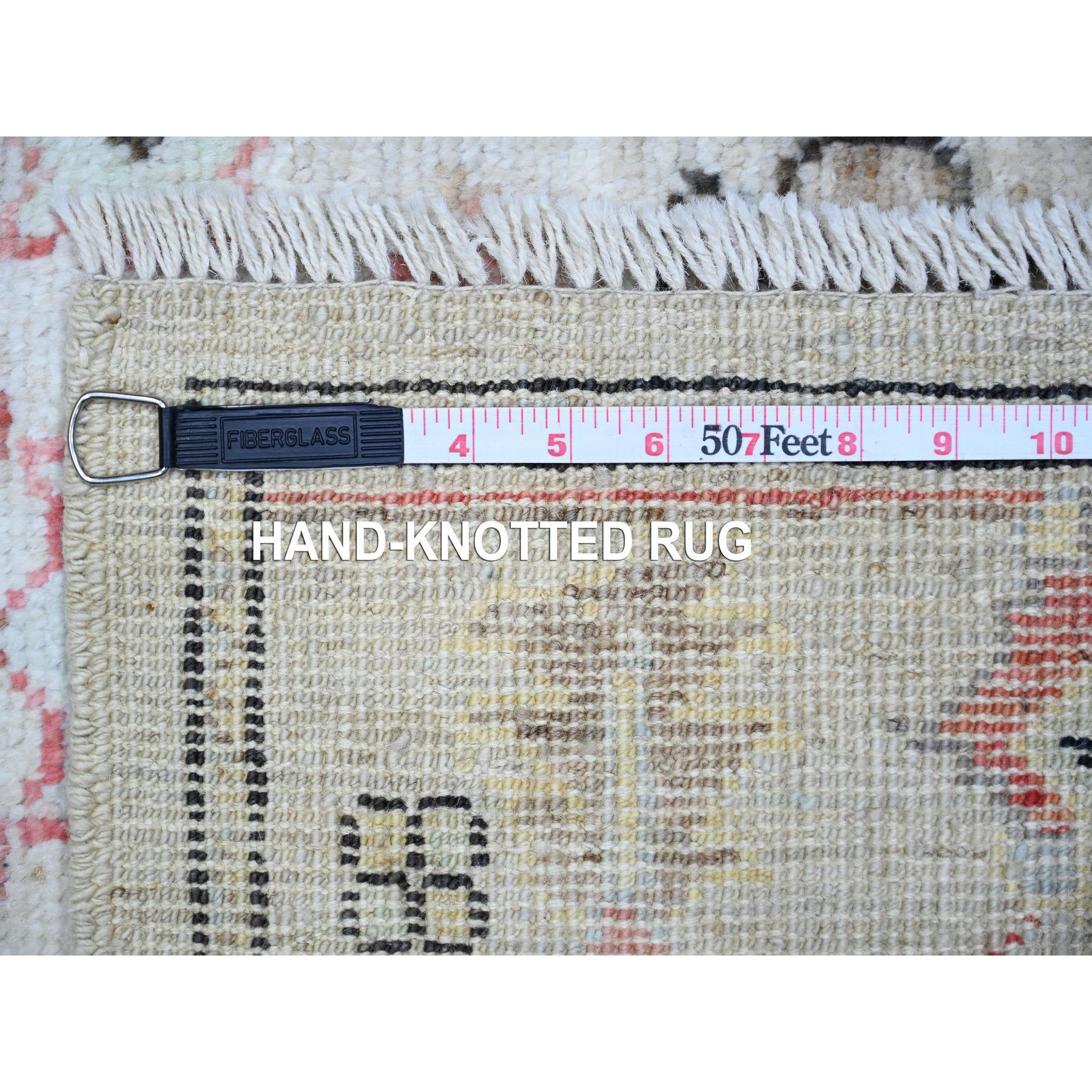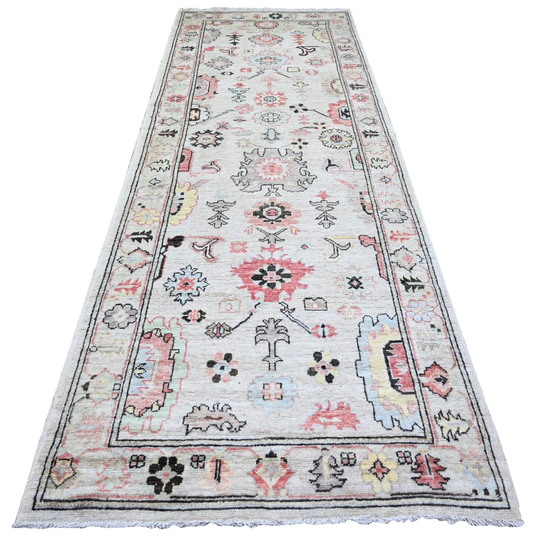 4'2"x11'8" Spring Gray, Soft Wool, Hand Knotted, Afghan Angora Oushak With Colorful Pattern, Natural Dyes, Runner Oriental Rug FWR443892