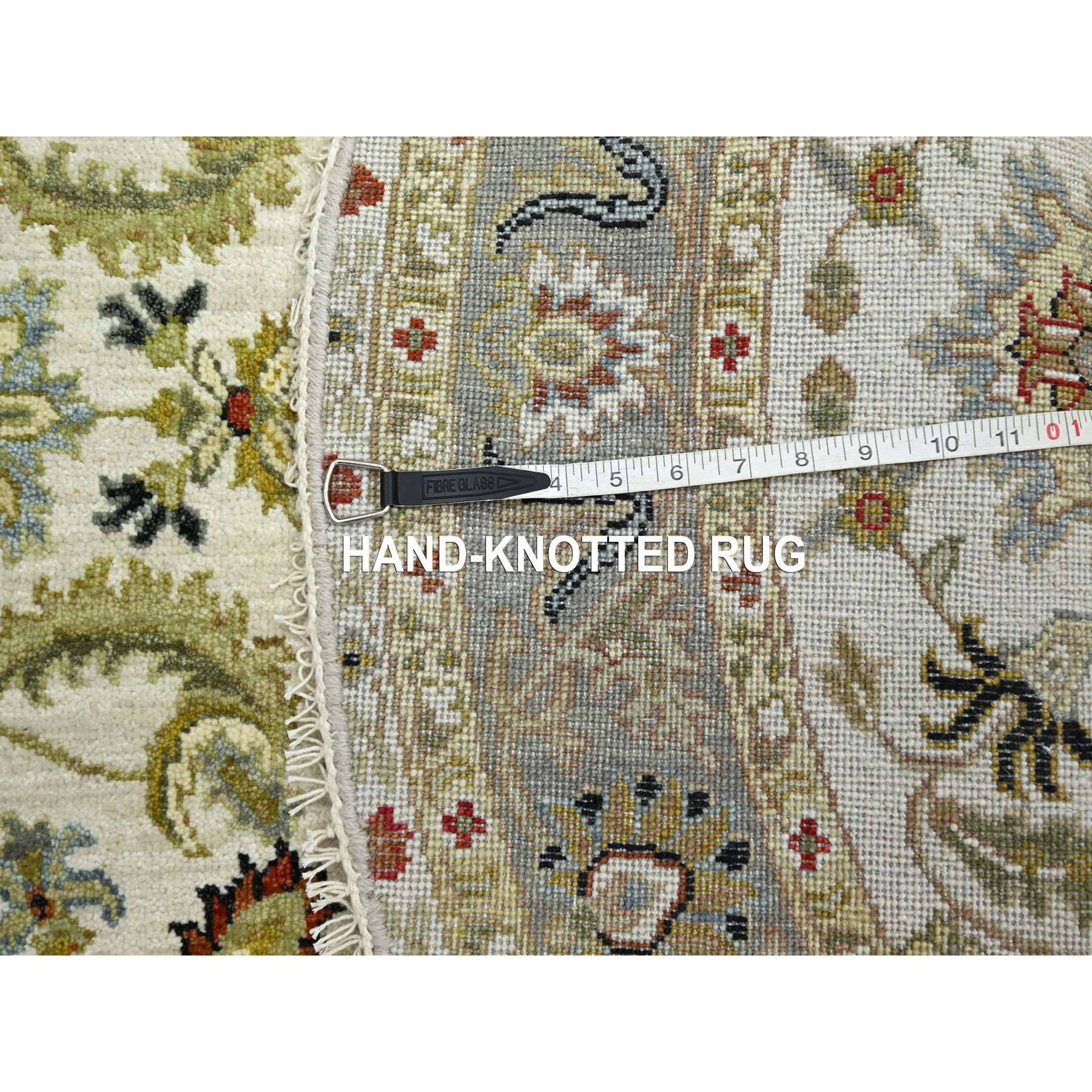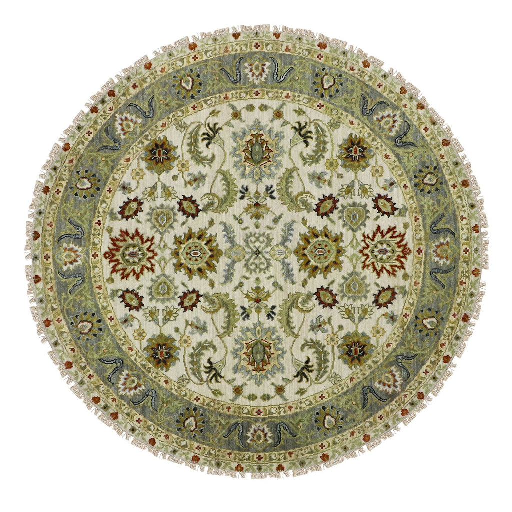 4'2"x4'2" Chiffon White, Agra With Ziegler Design, Pure Wool, Hand Knotted, Natural Dyes, Round, Oriental Rug FWR499266