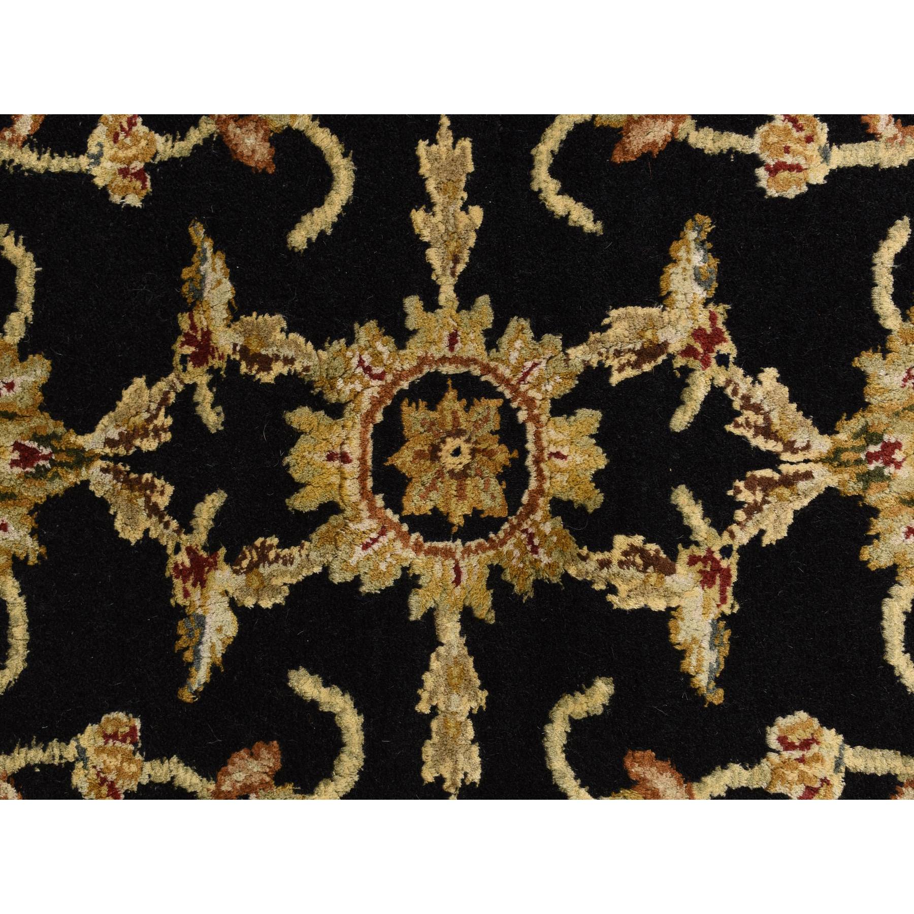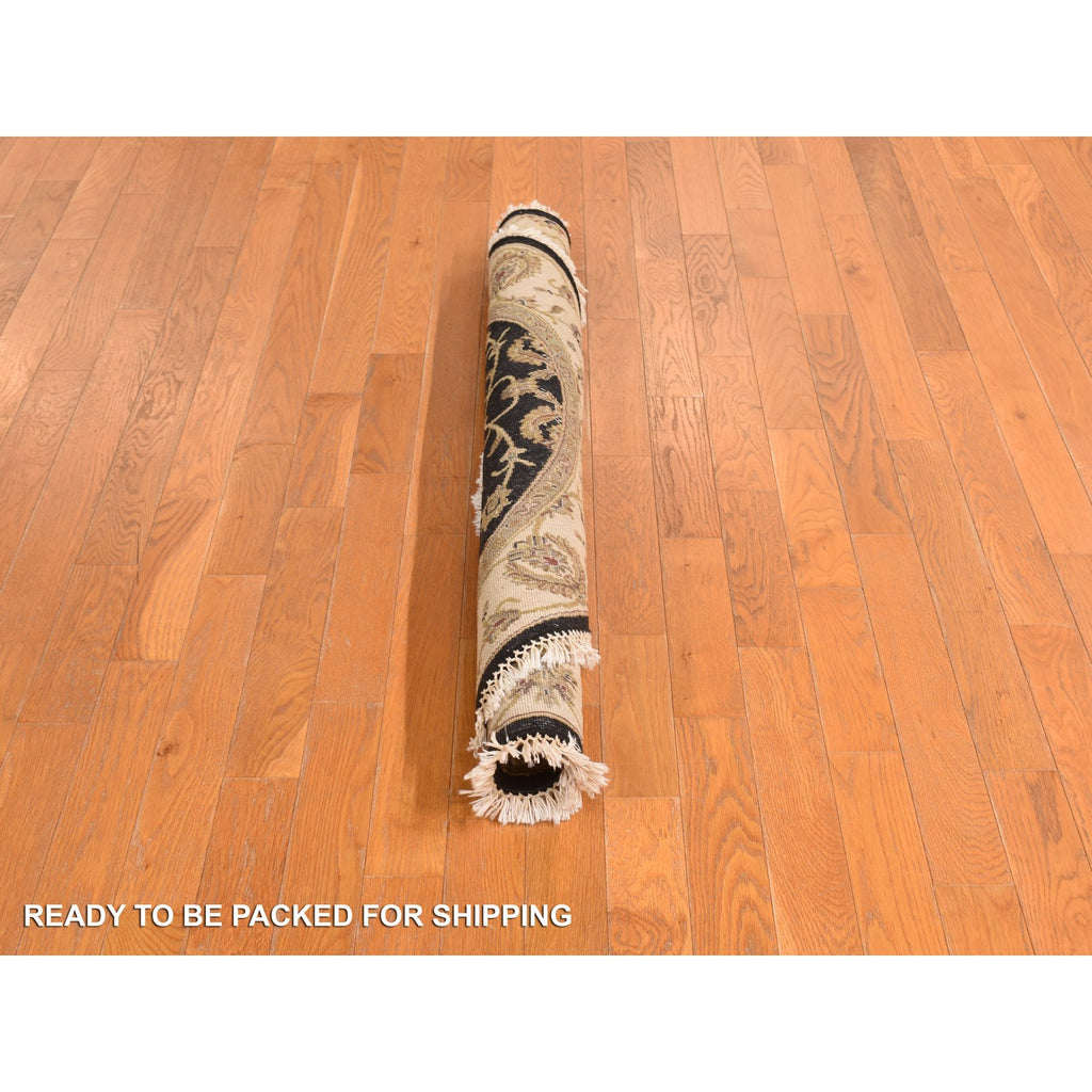 4'2"x4'2" Ink Black, Rajasthan, Floral Pattern, Hand Knotted, Half Wool And Half Silk, Round, Oriental Rug FWR469686