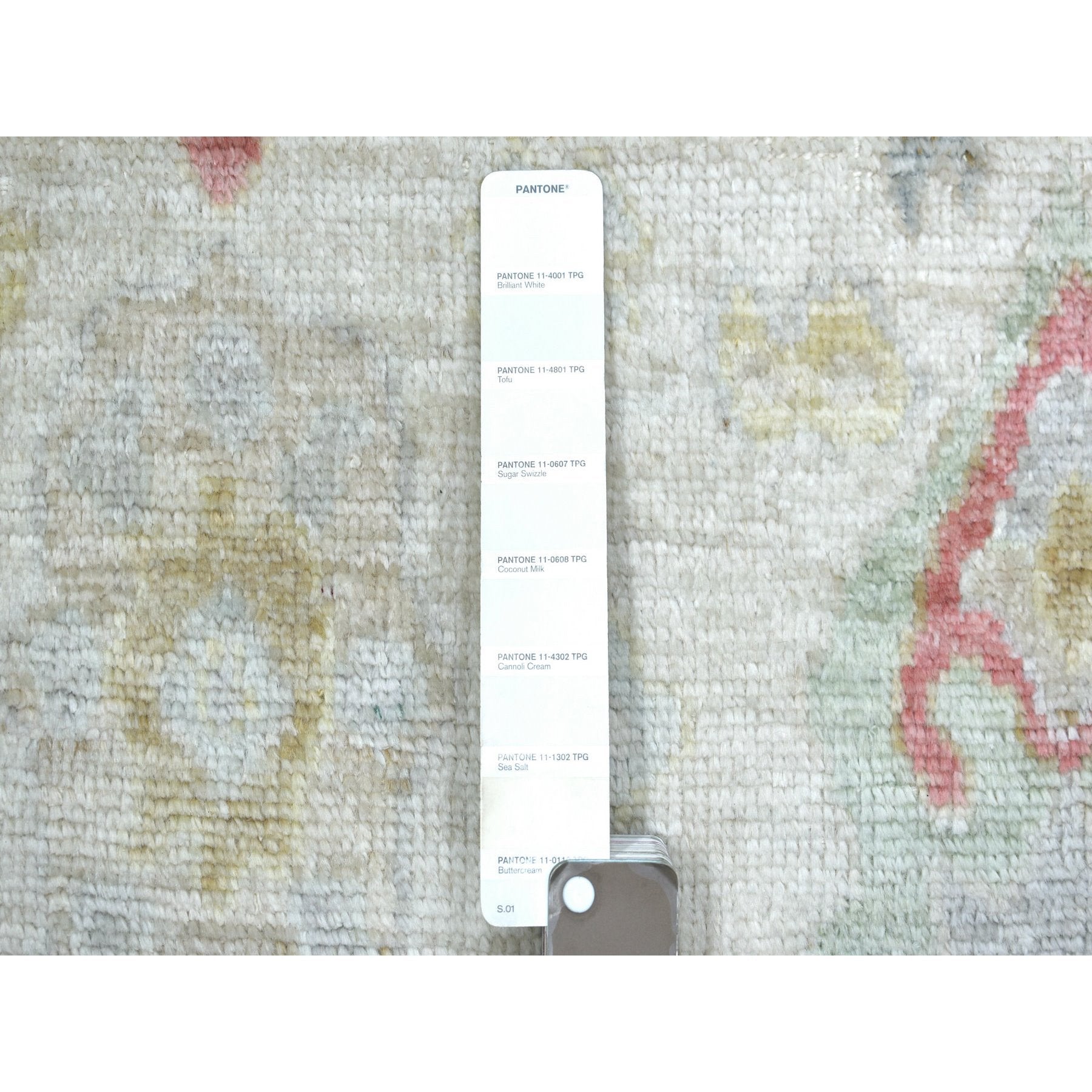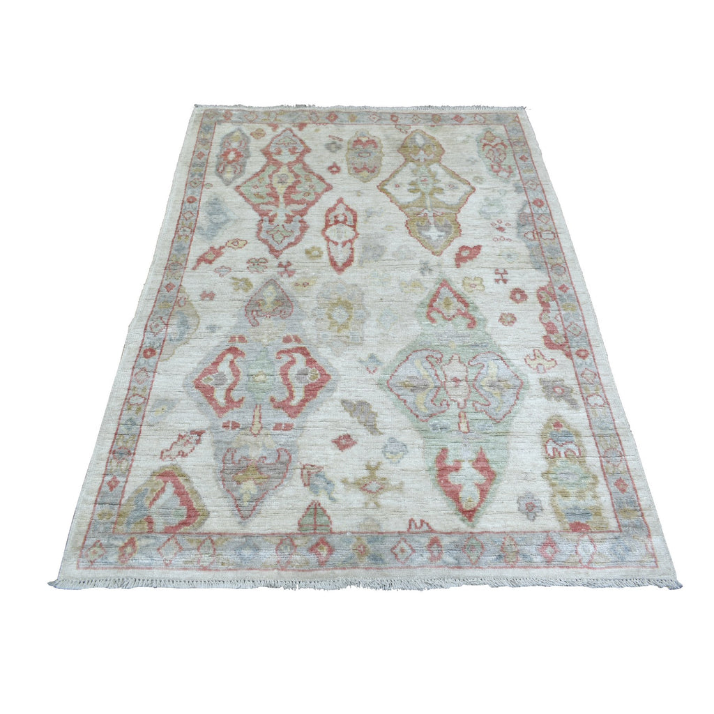 4'2"x5'7" Ivory Hand Knotted Angora Oushak All Over Motifs Natural Dyes, Afghan Wool Oriental Rug FWR431262