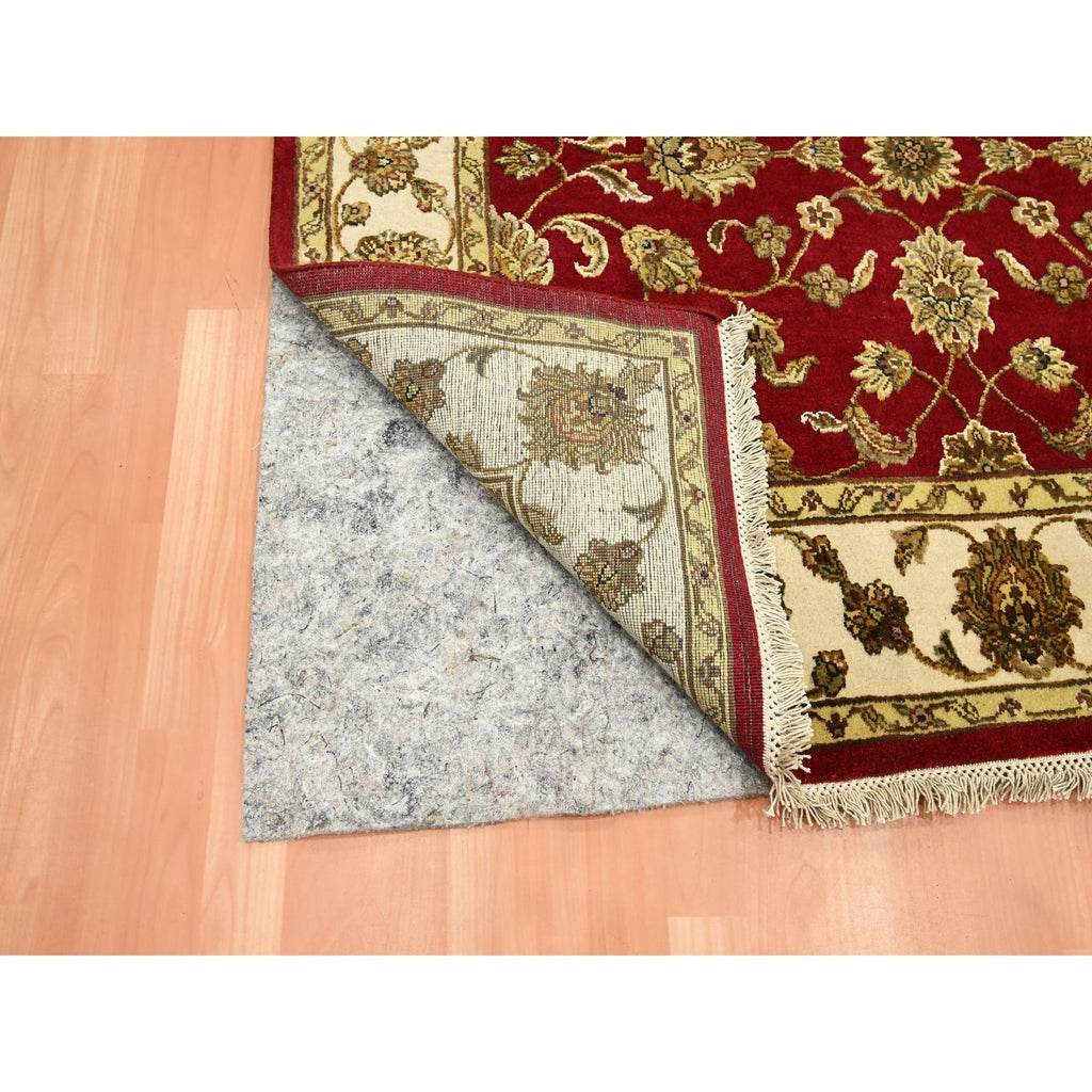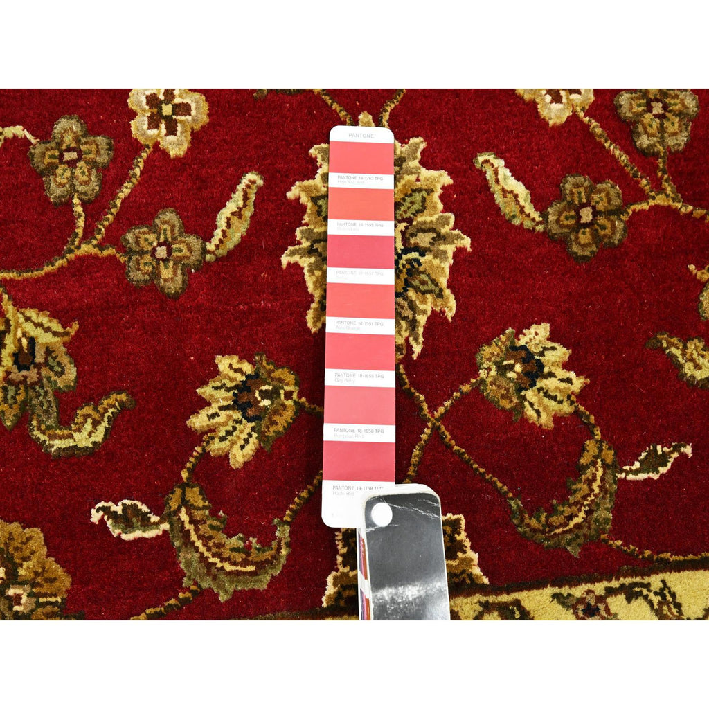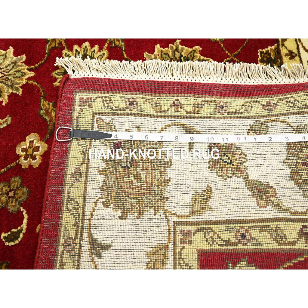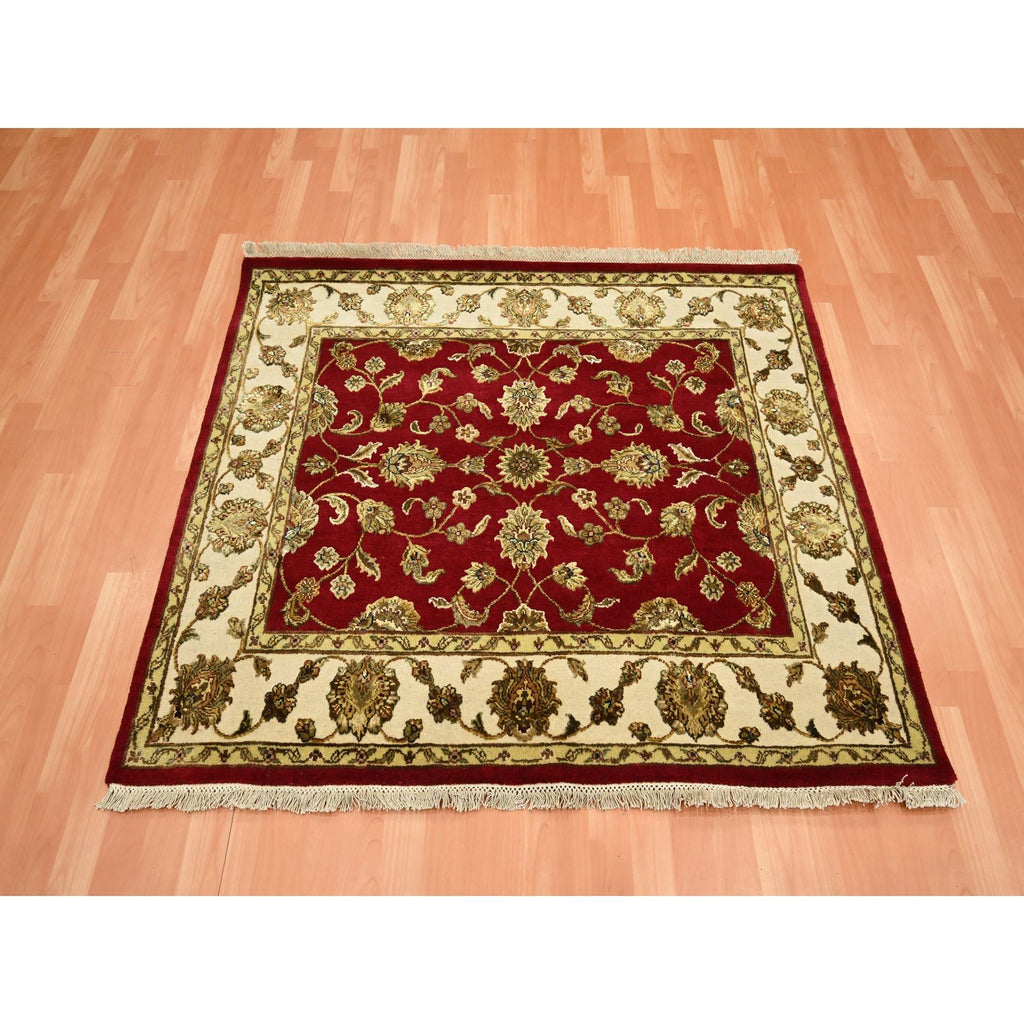 4'2"x5' Carmine Red, Rajasthan With All Over Leaf Design, Hand Knotted, Wool And Silk, Soft Pile, Thick And Plush, Squarish, Oriental Rug FWR453630