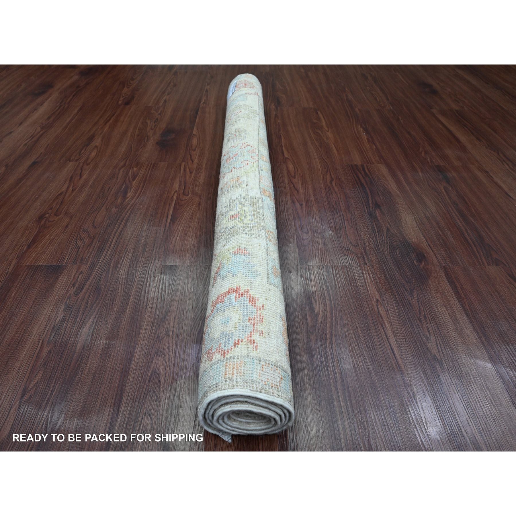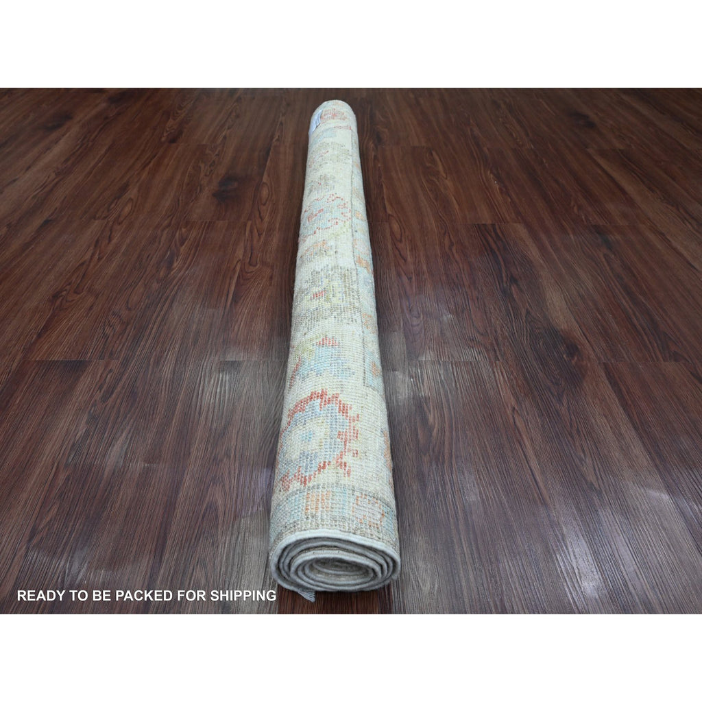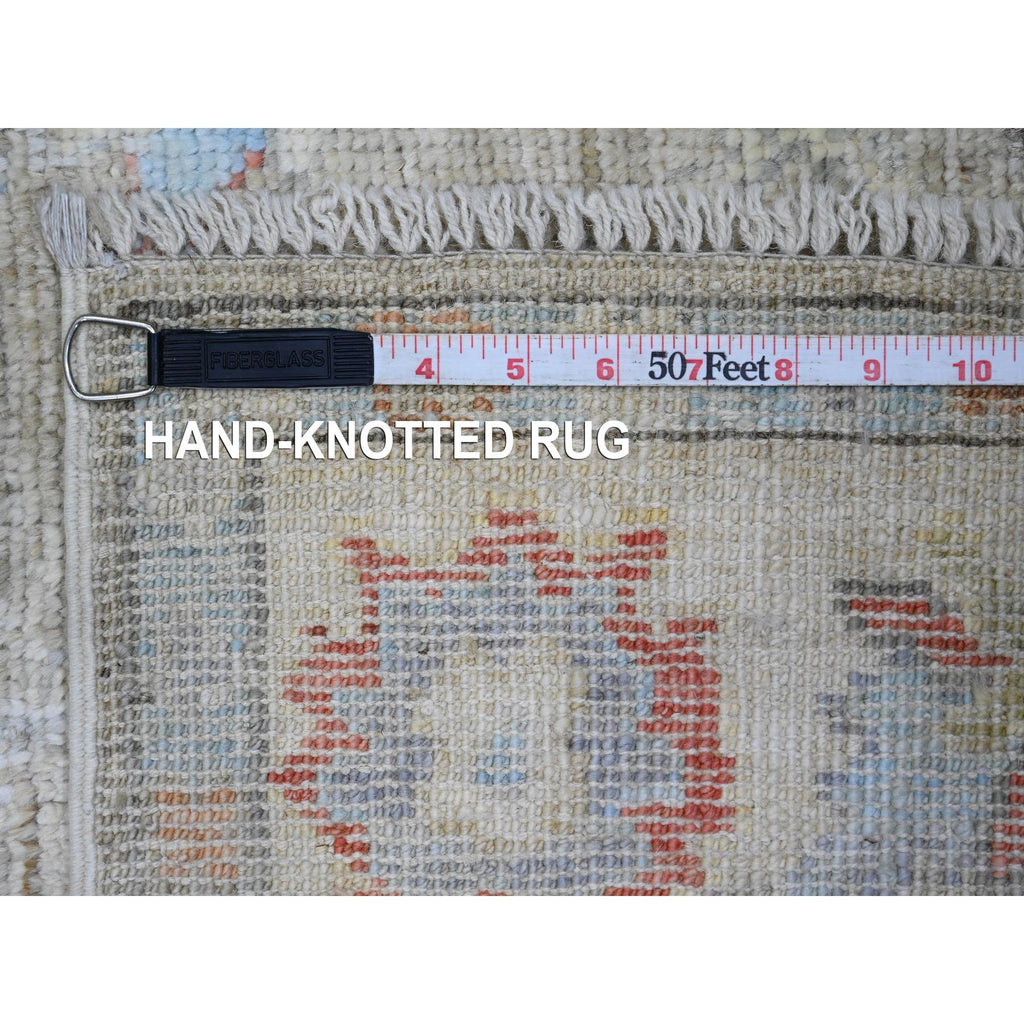 4'2"x6'1" Artichoke Green, Hand Knotted, Afghan Angora Oushak With Colorful Leaf Design, Vegetable Dyes, 100% Wool, Oriental Rug FWR121272